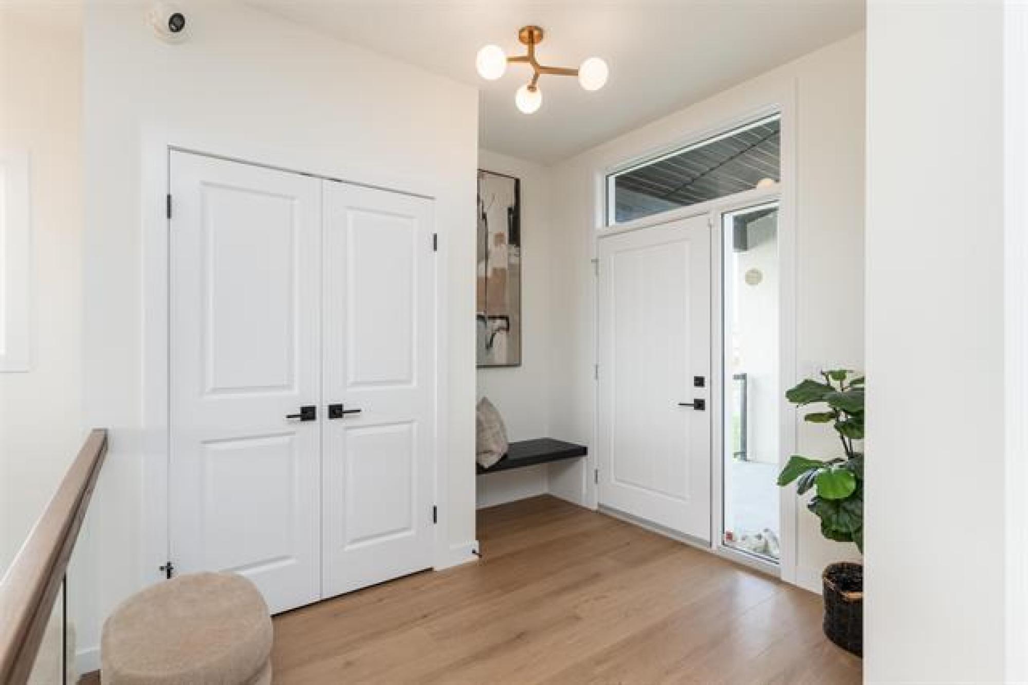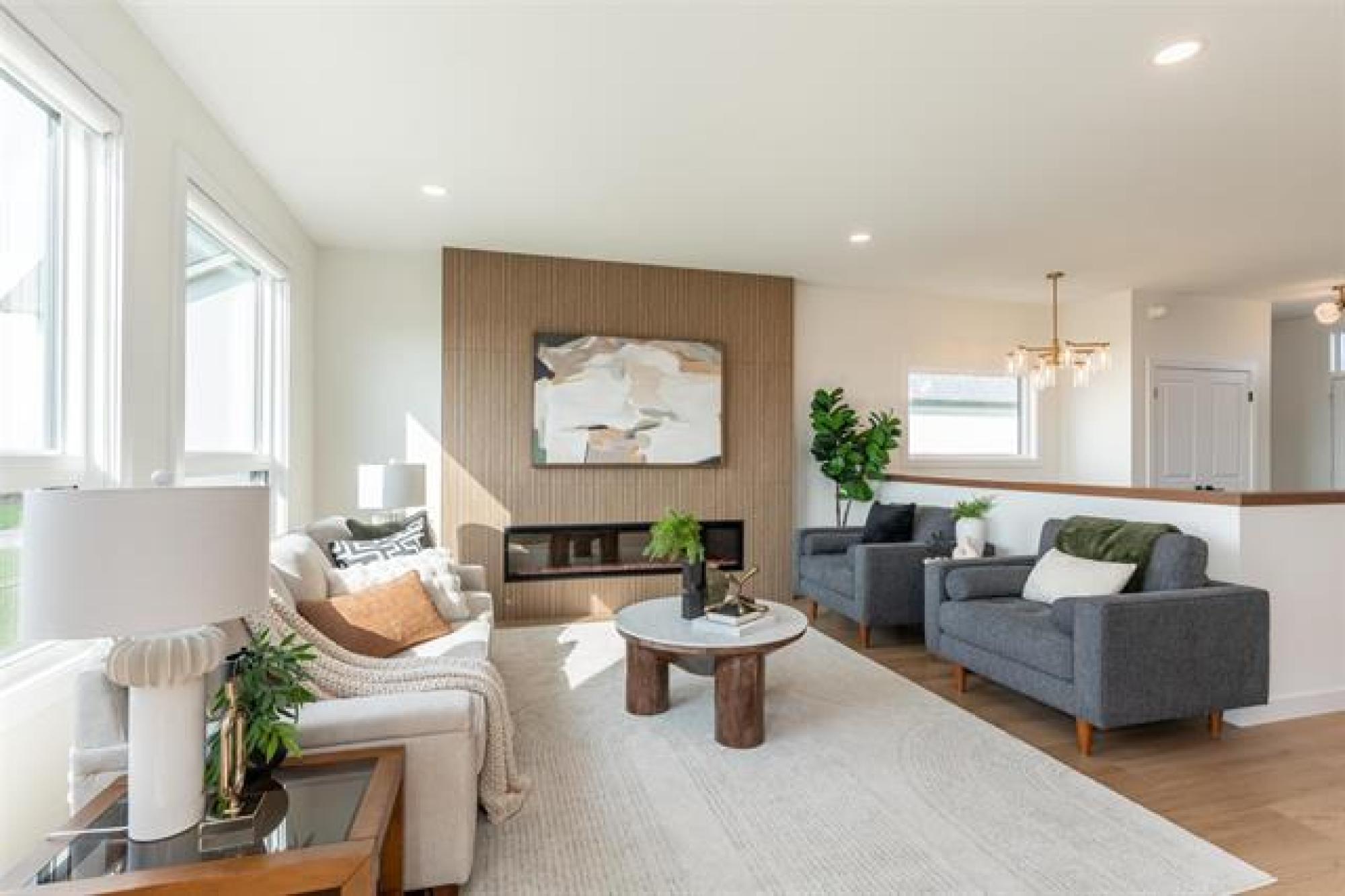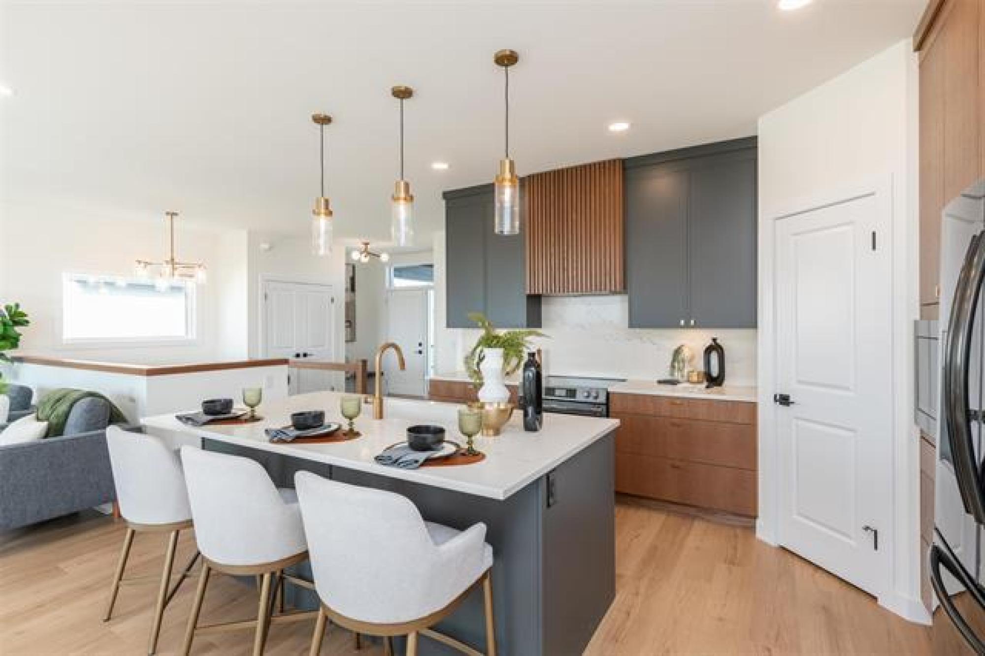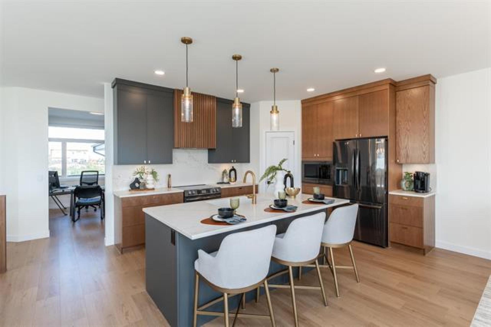 Discover exceptional design and modern comfort in this 1,739 sq. ft. show home in the desirable community of Oak Bluff. This home offers a 3-bedroom layout, with one converted to an open-concept flex/office space. The main floor features 9’ ceilings, glass railings, and laminate flooring throughout. The great room includes an electric fireplace with ceramic tile surround. The chef-style kitchen offers a large island, quartz countertops, tile backsplash, upgraded cabinets, and black stainless appliances, with upgraded plumbing, lighting & windows throughout, fill the space with natural light. The primary bedroom features a spacious walk-in closet and a deluxe ensuite-double vanity, custom tile shower & refined finishes. The lower level is ready for future development with steel beam and 9' ceilings. Outdoor features include a composite rear deck and fully landscaped. The contemporary exterior highlights stone accents, a front porch with aluminum railings and glass, and an exceptional oversized garage with workshop for ample storage and project space. Beautiful, functional, and crafted with timeless design,this Oak Bluff home is one you won’t want to miss.Includes industry leading warranty 1-2-5-10 year