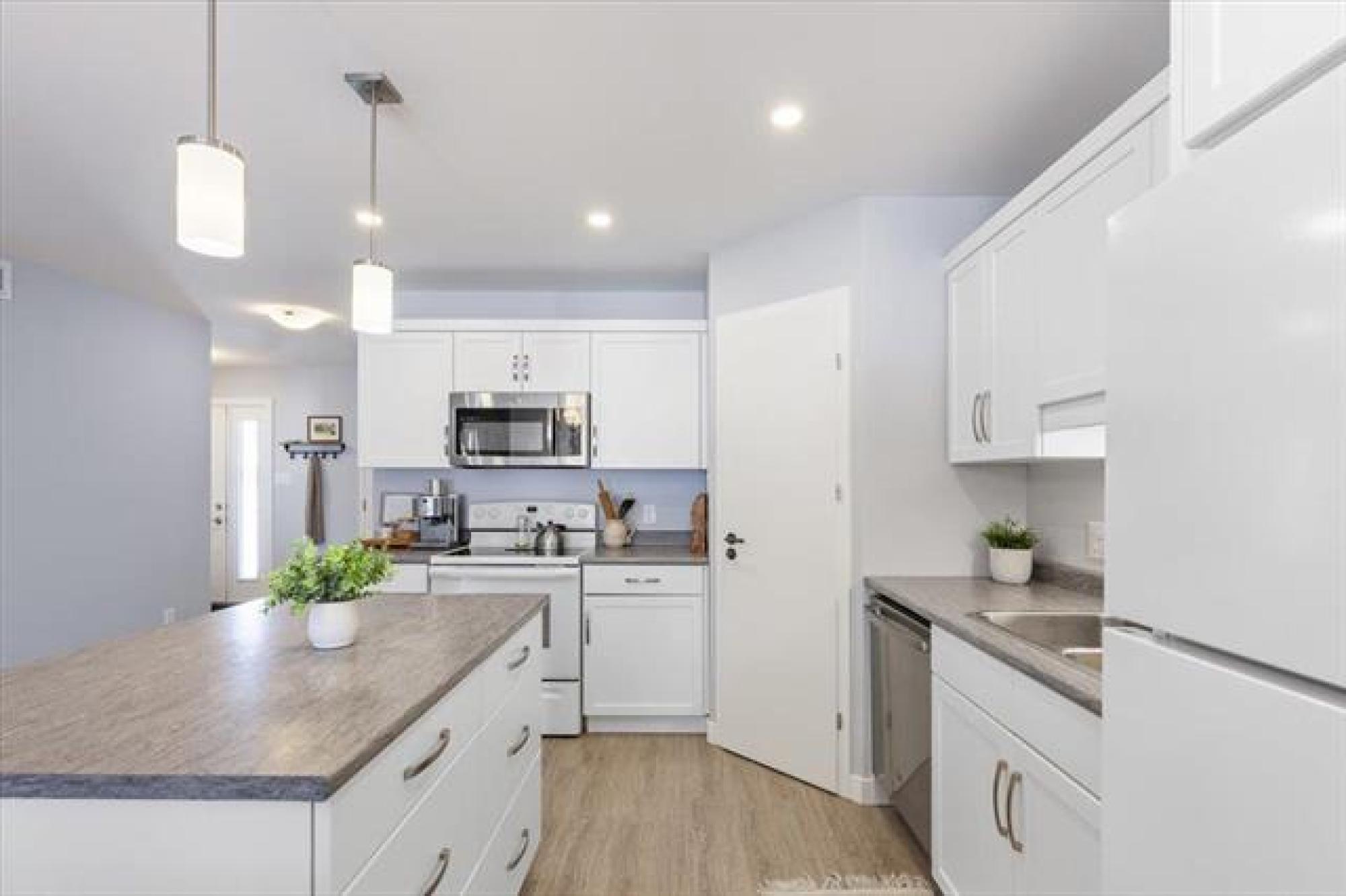 Incredible opportunity to own a 6 year old attached home in Mitchell! Have a look at this 2 bedroom home with one level living. There is quality finishing including triple pane windows The white kitchen has a corner pantry, soft close cabinetry and center island. Vinyl plank flooring throughout. Storage room and laundry room. Concrete driveway, deck, AC, all appliances included. Attached finished garage. Senior friendly, or great for first time home buyer, or investment property! Quiet neighbourhood! Hurry!