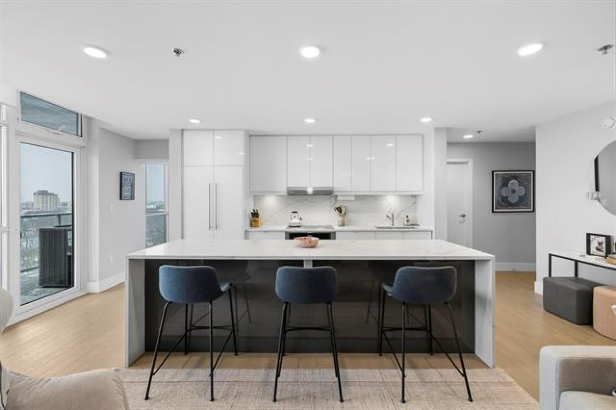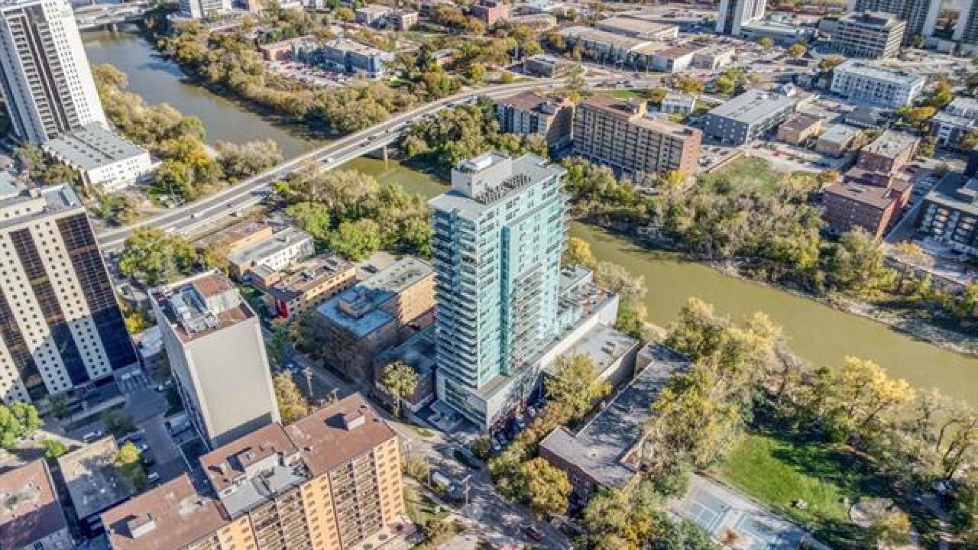 ** OPEN HOUSE - December 13, Saturday, 1 - 3 pm ** Step into the pulse of downtown. This modern 2 bed/2 bath, 967 sqft condo puts you right where the city comes alive, the river walk, the arena, the restaurants, the nightlife, all at your doorstep. Inside, the finishes are sleek and elevated: quartz, modern cabinetry, under-mount sinks, and integrated Jenn-Air and Fisher Paykel appliances. Bright open living, in-suite laundry, and a true walk-in closet complete the space. The building delivers standout amenities: a 2,364 sqft landscaped terrace with river views, a polished lounge with fireplace and pool table, a full fitness studio, dramatic two-storey lobby, above-grade heated parkade, guest suite, and a private lit path to the river walk. Pet-friendly, upscale, and perfectly placed for downtown living done right. MEASUREMENTS ARE +/- JOGS.