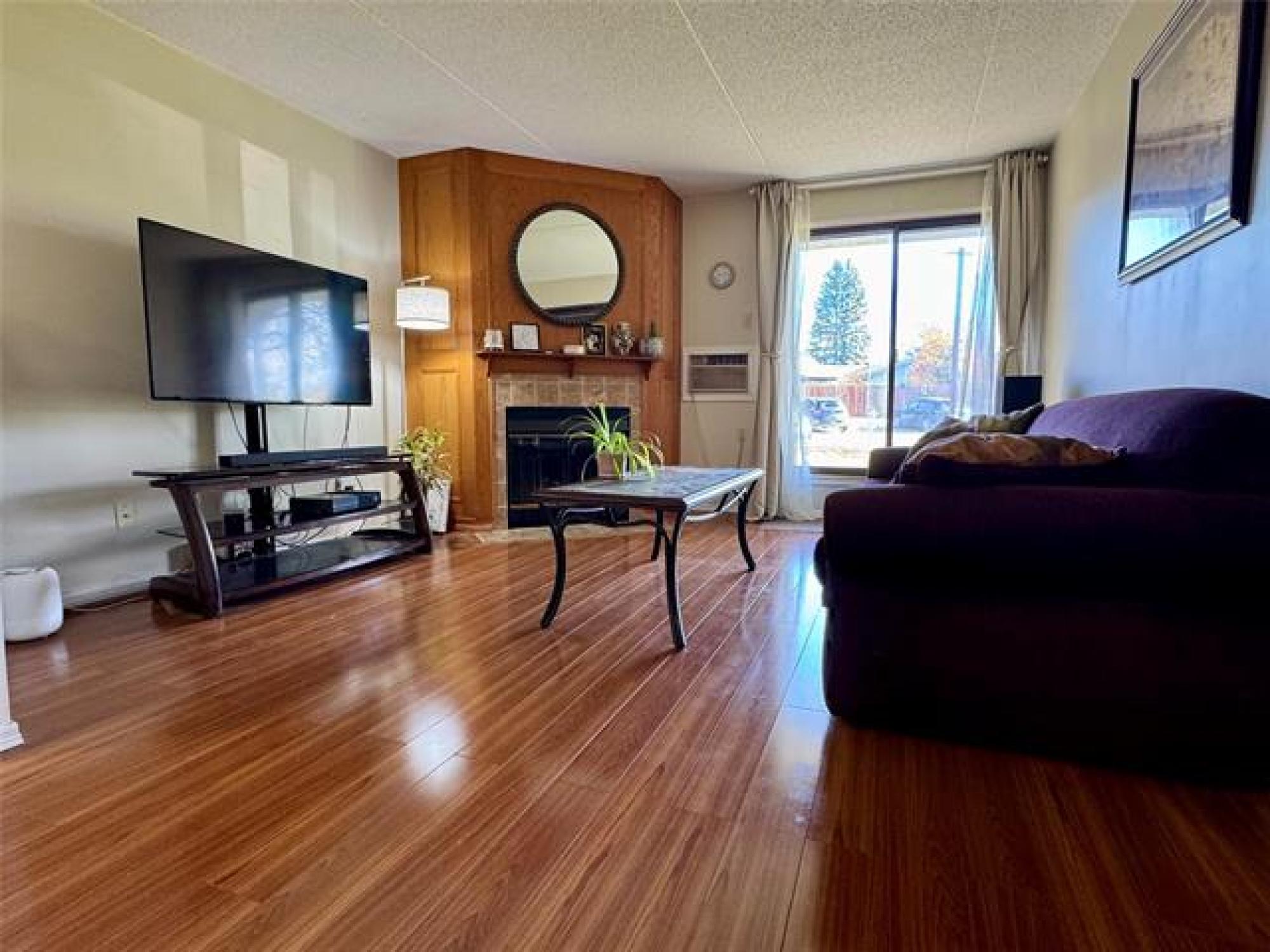 Showings Start Oct 30th, Offers Nov 4th. Welcome to this main floor condo in beautiful River Park South, perfectly situated close to schools, parks, and scenic walking trails. Offering 841 sqft. of comfortable living space, this well-maintained unit features two spacious bedrooms, including primary bedroom with a large walk-in closet. Enjoy the cozy wood-burning fireplace in the inviting living area and the convenience of in-suite laundry. The unit faces a quiet parking lot for added privacy and ease, and comes with two dedicated parking stalls. A fantastic opportunity for first-time buyers, downsizers, or investors looking for a great home in a sought-after neighborhood!