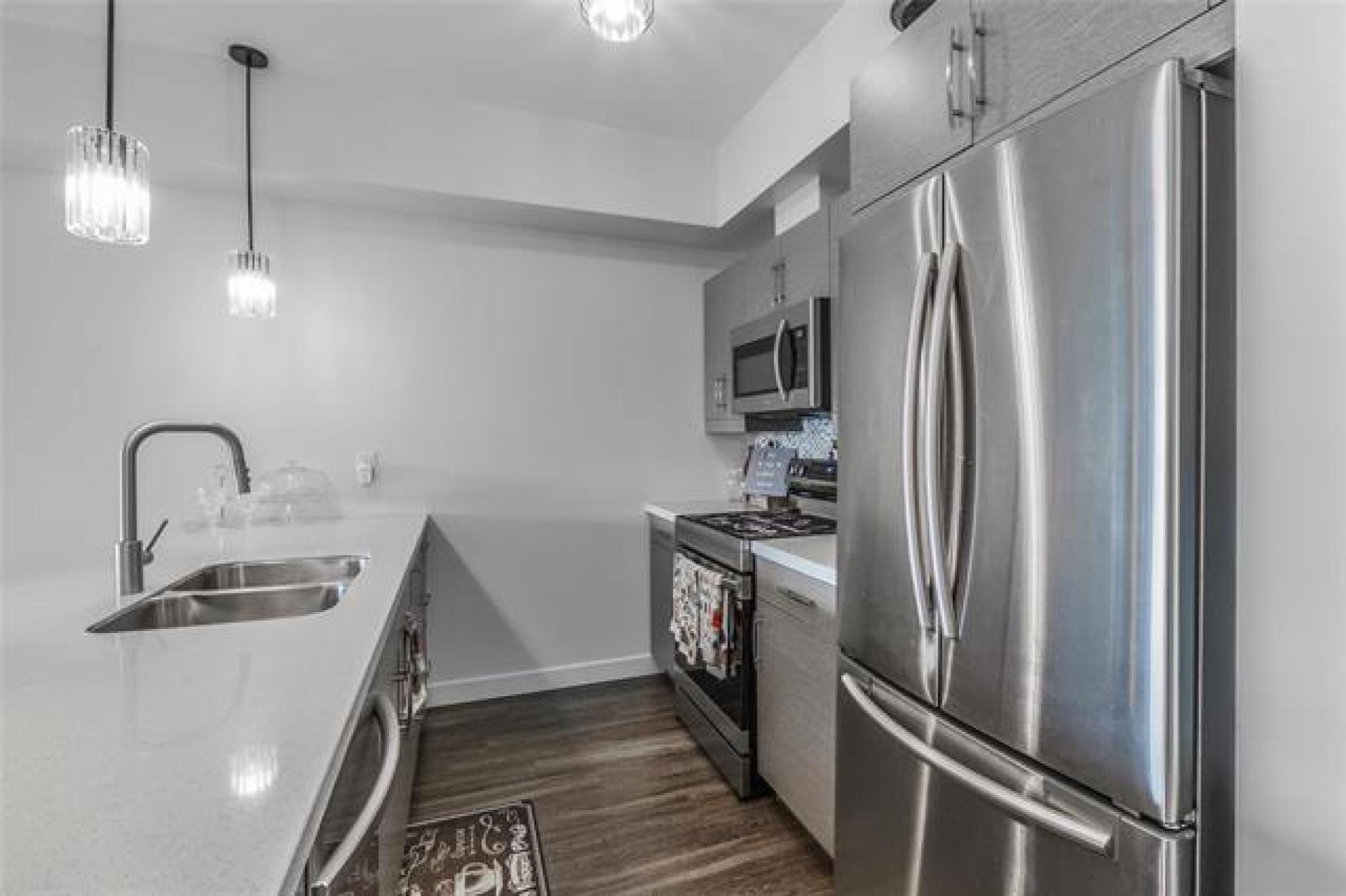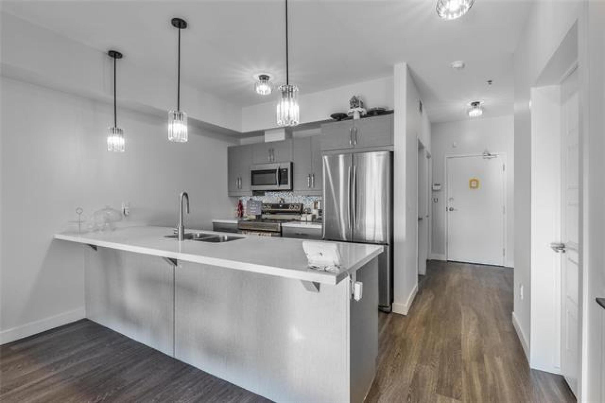 Offers as received. Welcome to this bright & spacious 2-bedroom unit in The Mix—a modern condo community well situated in Bridgwater Forest! Designed for both style & function, this unit offers an open-concept layout & seamless flow, ideal for everyday living & easy entertaining. Contemporary kitchen features quartz countertops, stainless steel appliances, & ample cabinetry—everything you need to cook, host, or unwind. Two spacious bedrooms offer easy access to a full bath, while in-suite laundry provides convenience & storage. Pet lovers, take note: this is the only building in Bridgewater where a select few units enjoy the perk of fenced-in backyards—and the convenience speaks for itself. Skip the elevators & long hallways to let your dog out—a rare luxury in high-rise living! Enjoy premium amenities including heated UNDERGROUND PARKING, a fitness room, and a stylish common lounge. Even better, your condo fees cover ALL UTILITIES, so you can focus on living well—not playing bill-Tetris every month. NEW 2025 APPLIANCES : Dishwasher, Washer, Dryer, Stove all with transferable warranties. HVAC 2024. Quick access to schools, parks, shops, restaurants, banks, transit, bike trails, and UofM. Come and See!