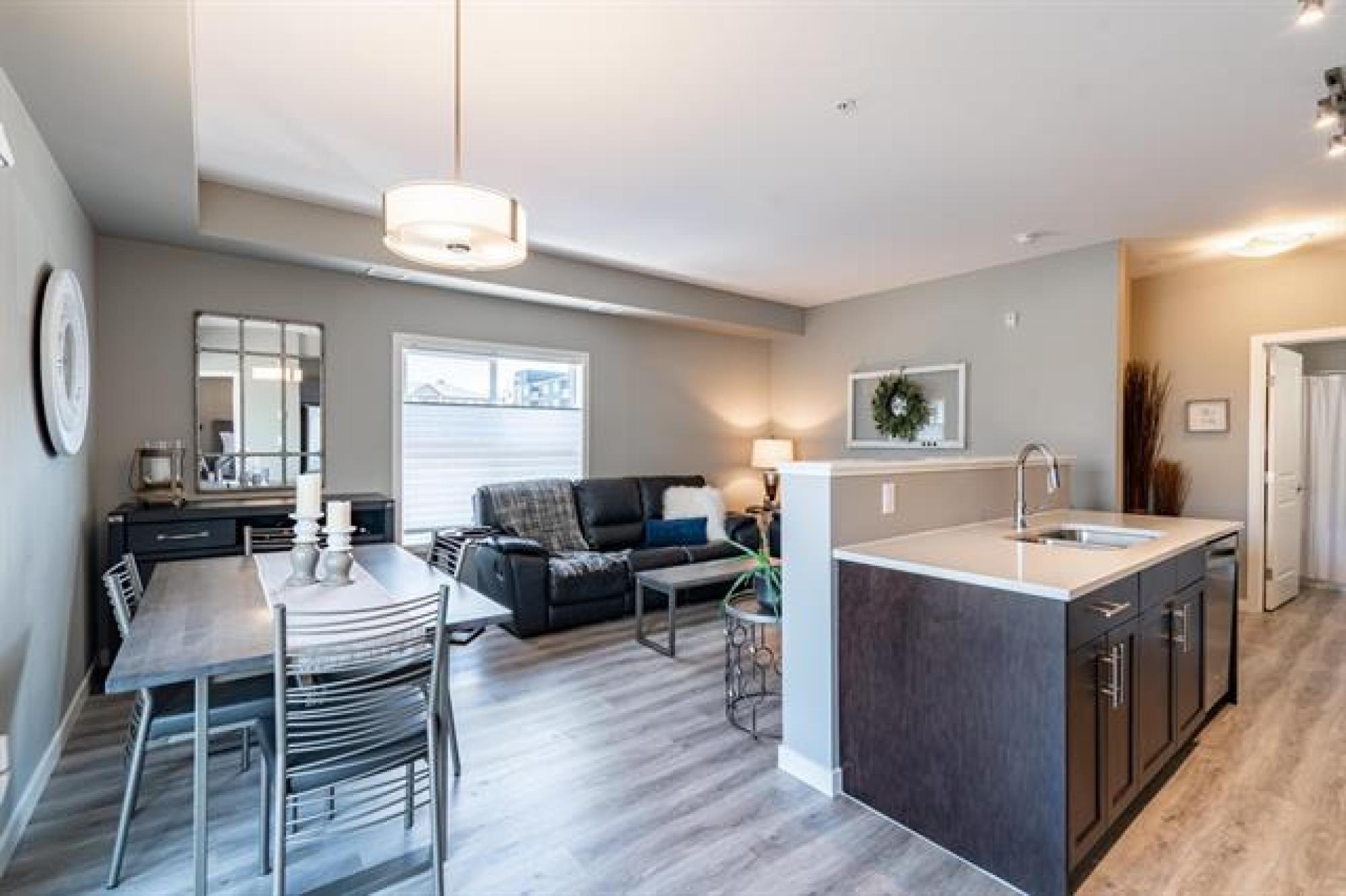 NEW PRICE!! | Casa Fiorentino | Welcome to this bright and beautiful main floor corner unit at 65 Fiorentino Street in a well-managed, pet-friendly building. Offering 912 sqft of stylish living space, this 2 bed, 2 bath condo is perfect for first time buyers, downsizers, or people seeking a low-maintenance lifestyle in a convenient location. The open concept layout features upgraded vinyl plank flooring, large windows for plenty of natural light, a modern kitchen with upgraded quartz countertops & stainless steel appliances. The spacious primary suite includes a walk-in closet and ensuite while the 2nd bed and full bath provide flexible space for guests, a home office or hobbies. Enjoy the ease of in-suite laundry, a patio, and 2 dedicated parking stalls. Condo fees are under $400/month, making it an affordable option with great value. Located close to KP Mall, Costco, Kilcona Dog Park, schools, restaurants & transit routes. You’ll appreciate the accessibility and quiet community feel. This pet-friendly condo offers the perfect balance of comfort and convenience with professional management and minimal upkeep. Book your private showing today!