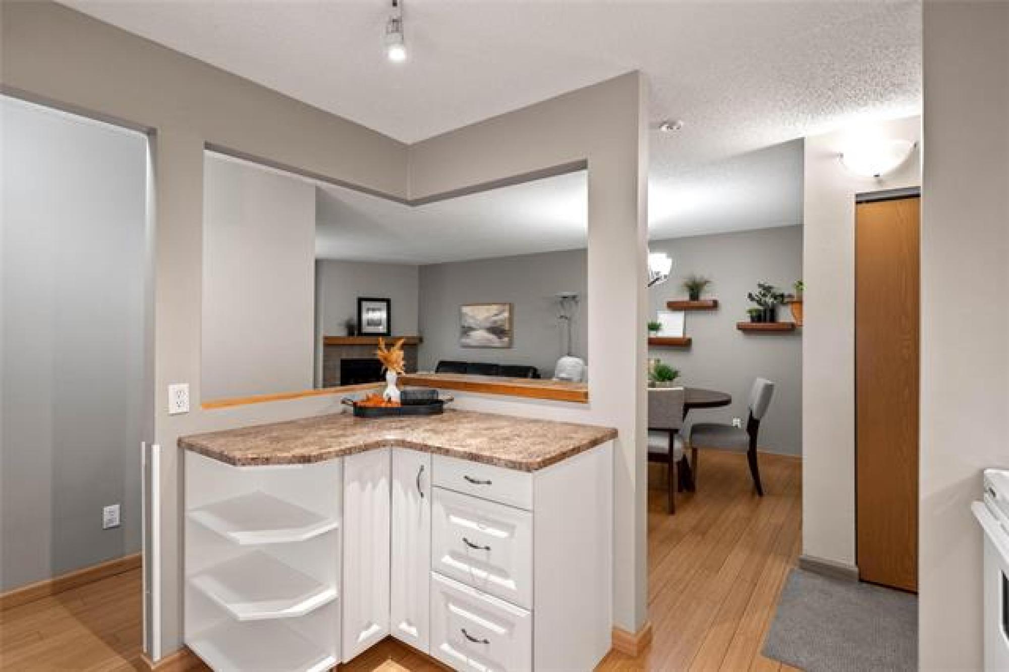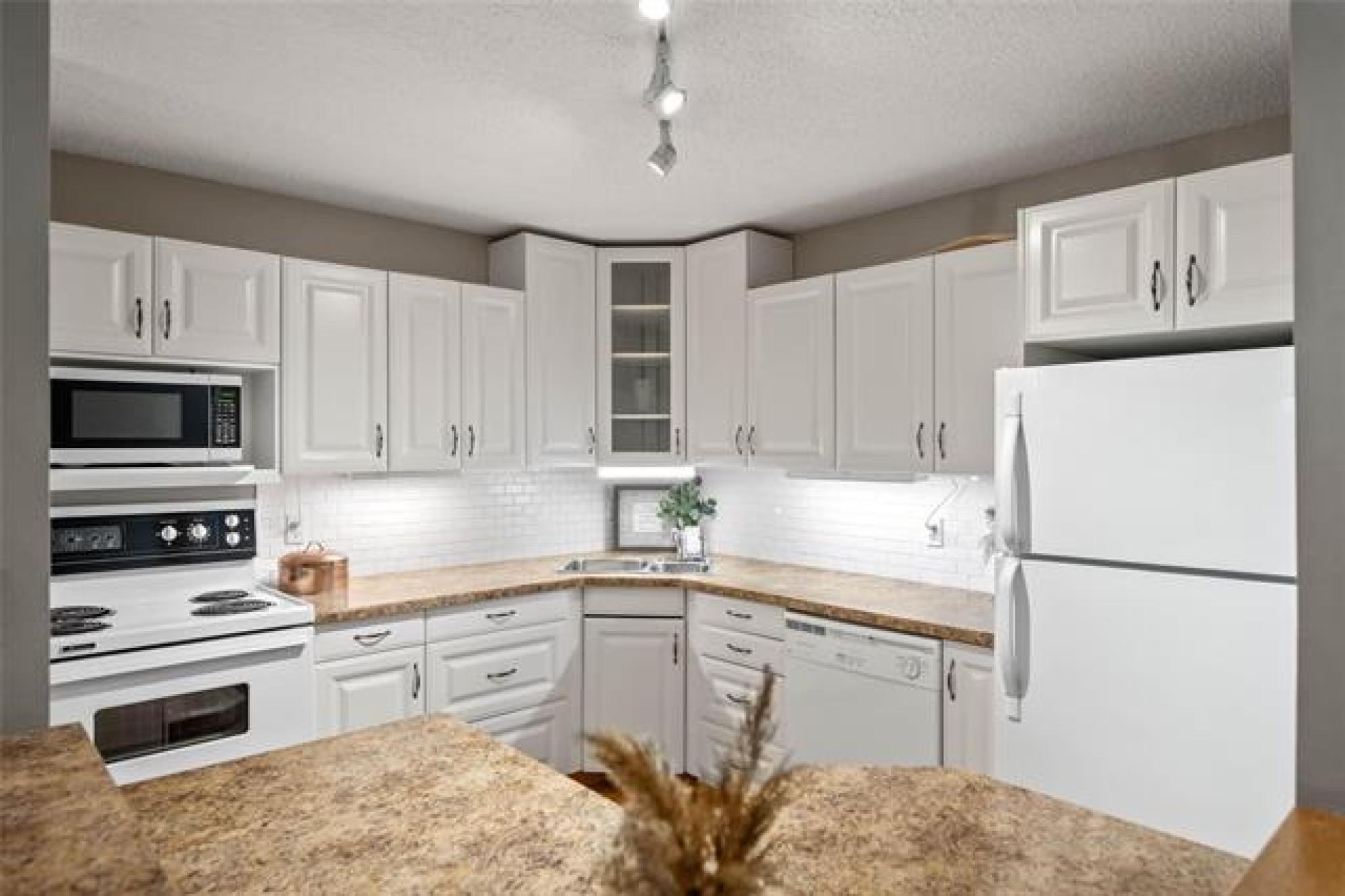 OFFERS OCTOBER 27TH LOCATED IN HIGHLY SOUGHT AFTER LAKESIDE MEADOWS, THIS FABULOUS MAIN FLOOR 2 BEDROOM CONDO BOASTS A VERY SHORT WALK TO AN ABUNDANCE OF AMENITIES! THIS UNIT FEATURES A BRIGHT AND SPACIOUS LVGRM/DINRM WITH BAMBOO FLOORS AND A COZY CORNER ELECTRIC FIREPLACE. (CAN BE CONVERTED BACK TO WOOD). GORGEOUS CUSTOM KITCHEN WITH LOADS OF CABINETS AND DRAWERS, CERAMIC TILE BACKSPLASH, CORNER SINK & BREAKFAST BAR. 4 APPLIANCES INCLUDED. SPACIOUS MASTER BEDROOM WITH A WALK-IN CLOSET WITH ACCESS TO THE BATHROOM. NICE SIZE SECOND BEDROOM WITH A LARGE DOUBLE CLOSET. NEWER CARPET & BASEBOARDS IN BOTH BEDROOMS. SPACIOUS UPDATED BATH WITH WHITE CABINETS. NICE SIZE CONVENIENT IN-SUITE STORAGE ROOM. THE WEST FACING PATIO DOOR OFF THE LIVING ROOM, OPENS TO THE LARGE DECK (2025), MANICURED GROUNDS & AMAZING SUNSETS! GREAT OPPORTUNITY TO OWN THIS LOVINGLY CARED FOR HOME. PETS - 1 CAT ALLOWED
