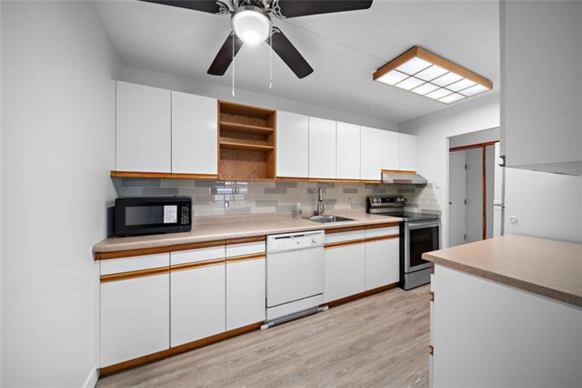 Welcome to this beautifully maintained 2-bedroom, 1-bathroom condo in the heart of Tuxedo! This bright, open unit features durable vinyl plank flooring throughout and a well-appointed kitchen with an updated tile backsplash and stainless steel stove. Enjoy the convenience of in-suite laundry, PVC windows, and a spacious balcony with an enclosed area offering a stunning view of downtown Winnipeg. The building features fantastic amenities, including an indoor pool and gym, enhancing your daily comfort and convenience. Located steps from grocery stores, schools, and popular restaurants, this home offers the perfect blend of lifestyle, location, and low-maintenance condo living! Call today to arrange your own private viewing.