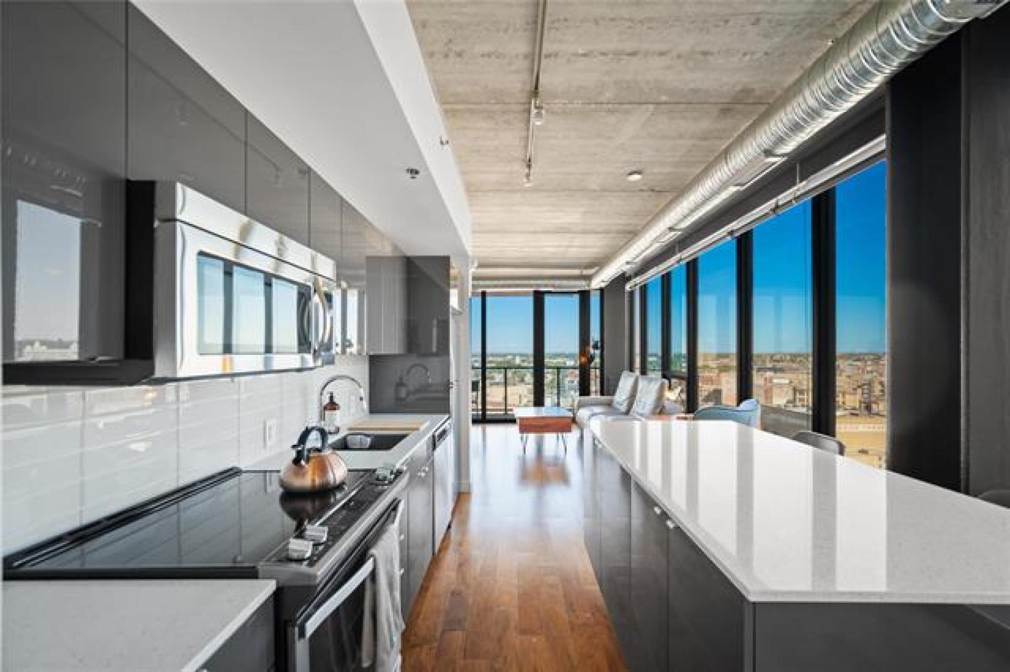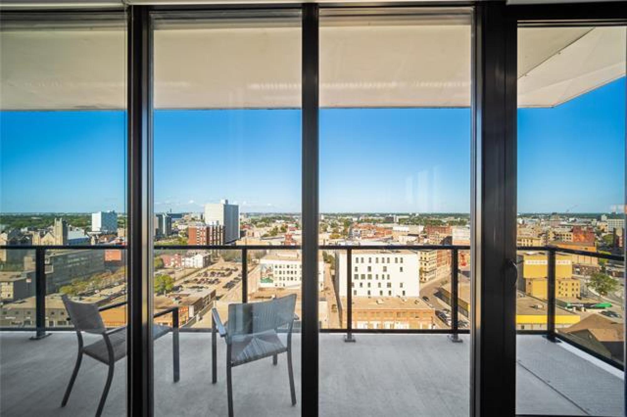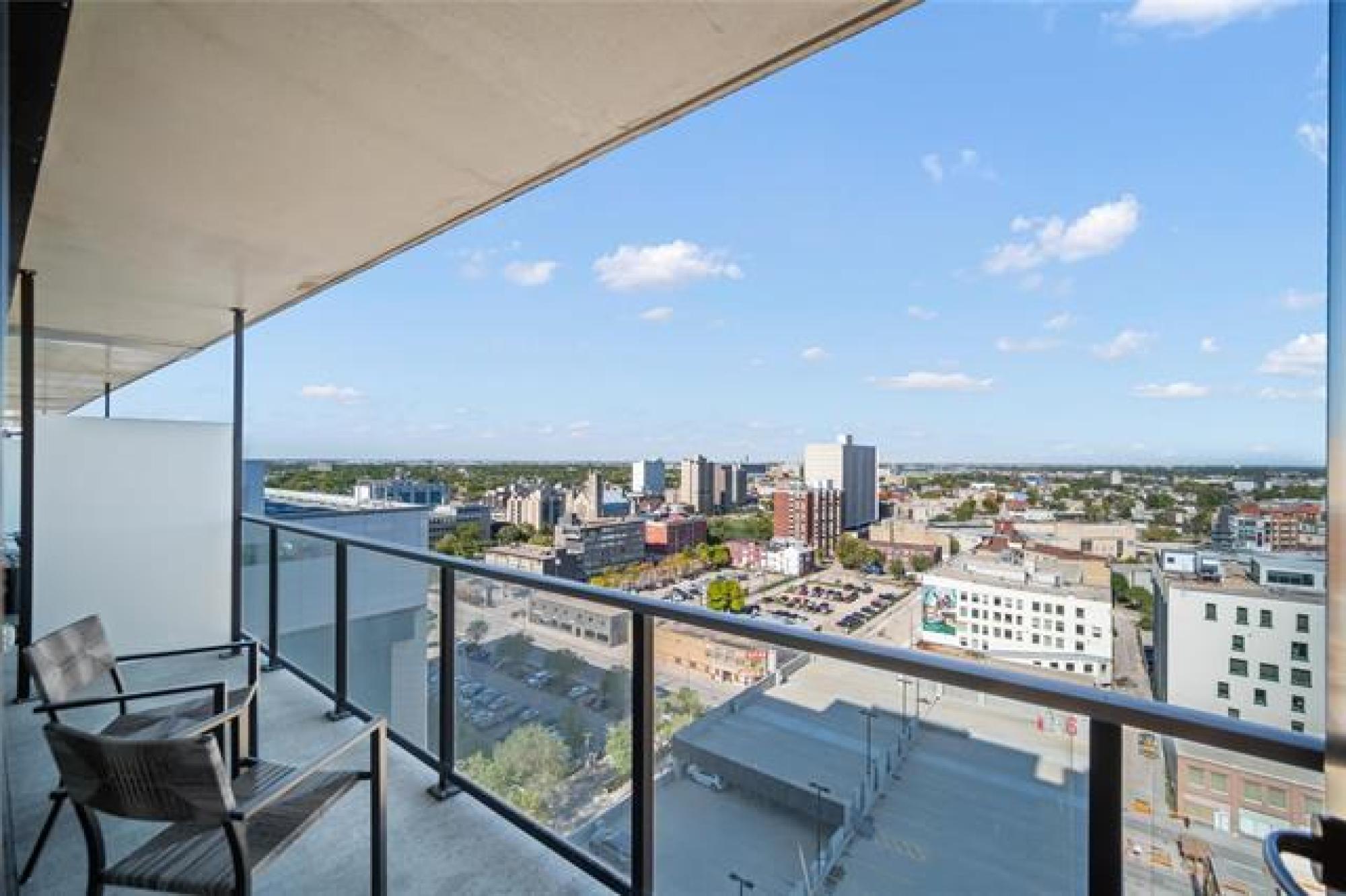S/S now! Offers as received. Welcome to 1502-311 Hargrave Street downtown Winnipeg! This corner suite is located on the 15th floor of this stylish 822 square foot, 2 bedroom, 2 bathroom unit, featuring 9 foot ceilings, floor to ceiling windows and an unbelievable view of the city from the large 102 sq ft balcony. The high end finishes include engineered hardwoods, quartz counters, high gloss cabinets and ceramic tile. The European kitchen comes equipped with stainless appliances, a large island for prep and storage space. Open concept kitchen to living room, includes parking stall, storage & in-suite laundry. Glasshouse is a remarkable building with amazing amenities; 21st floor rooftop patio & enclosed lounge area - perfect for entertaining your guests. A well-equipped 24 hour gym & and theatre room are located on the 2nd floor. Concierge service and bike storage on the main floor. The perfect location to many restaurants, shops, and walking distance to Canada Life Centre. This condo is a must see!