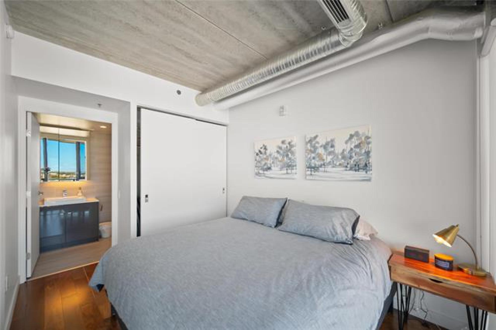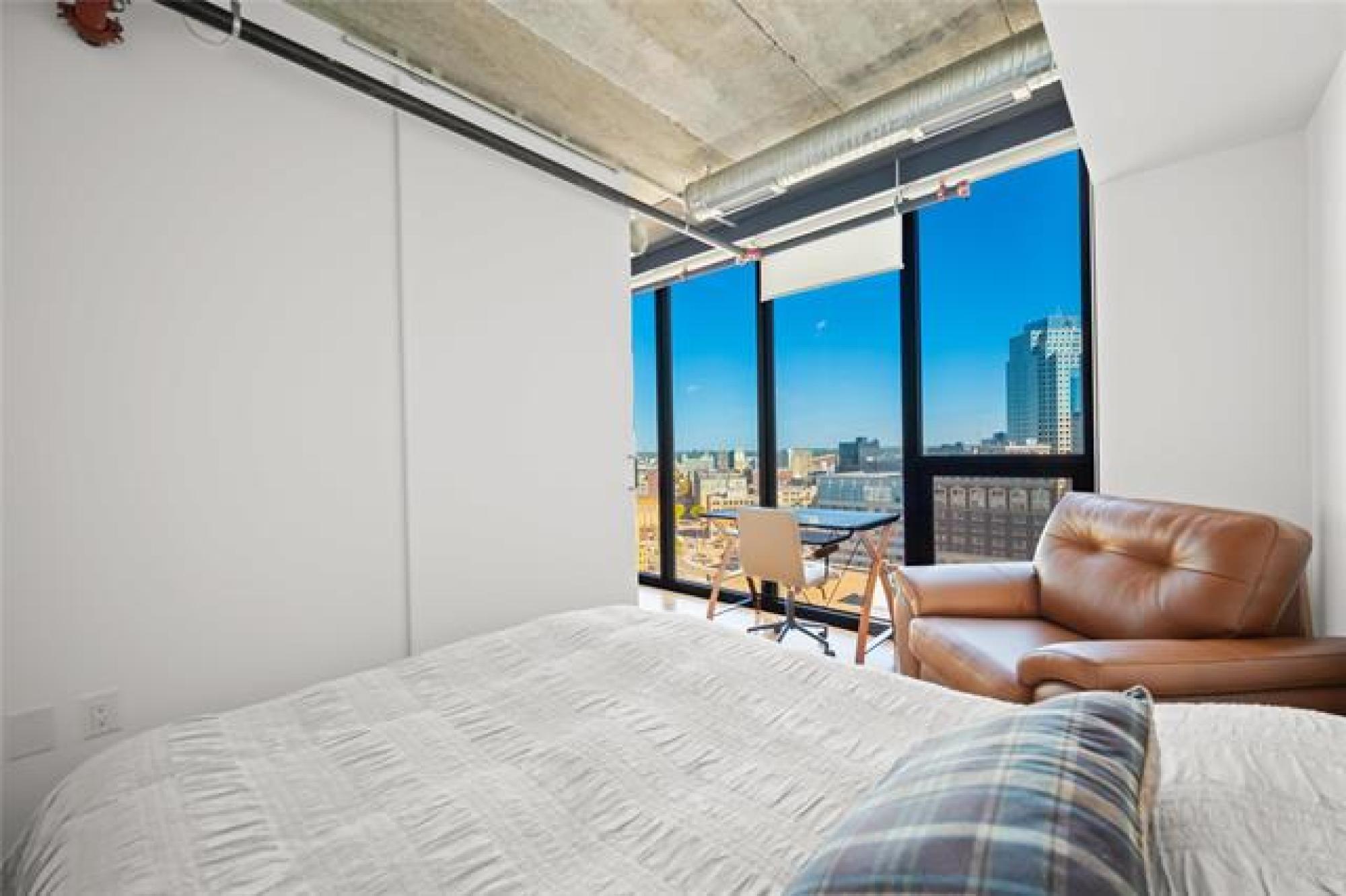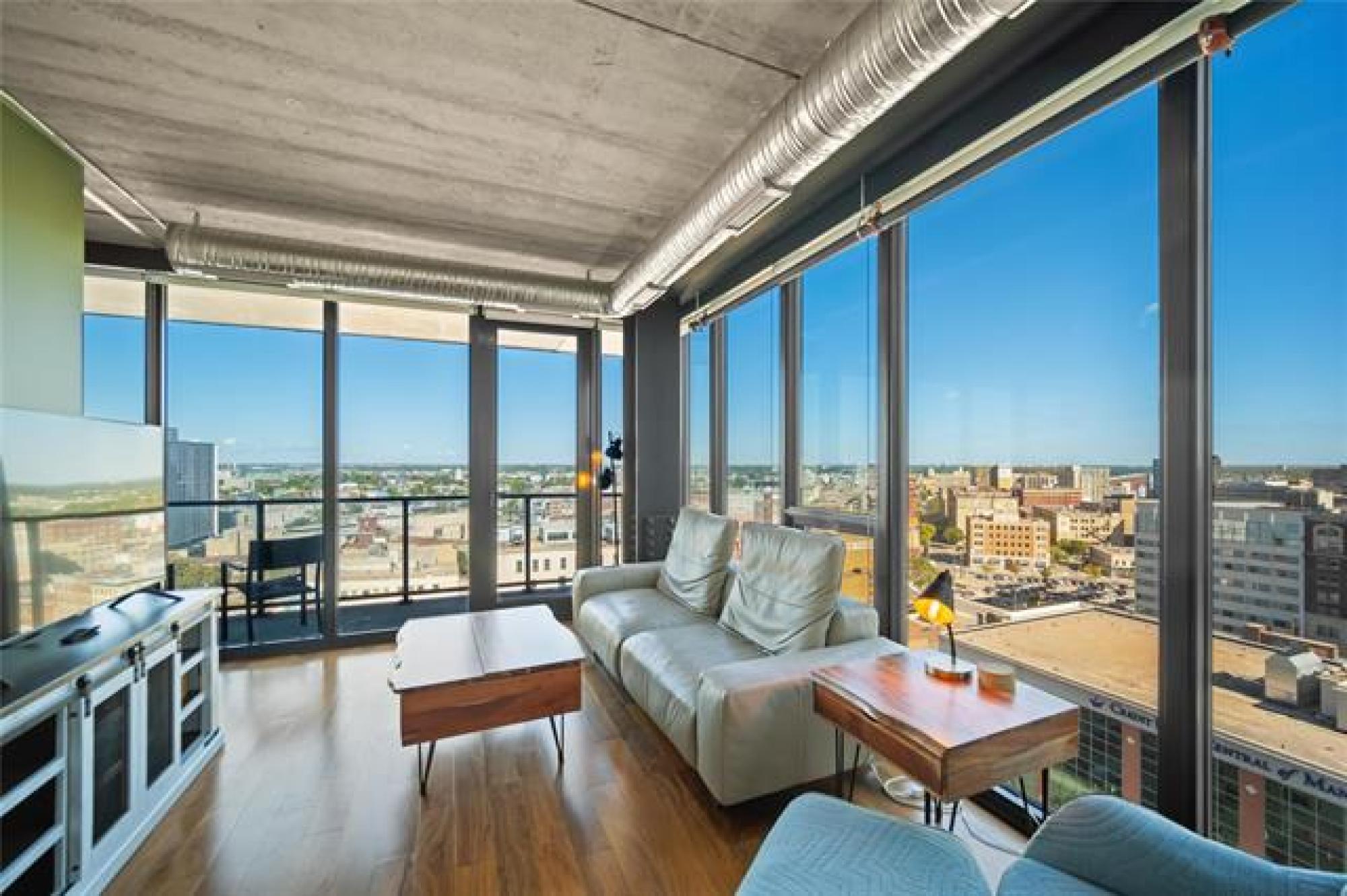 S/S now! Offers as received. Welcome to 1502-311 Hargrave Street downtown Winnipeg! This corner suite is located on the 15th floor of this stylish 822 square foot, 2 bedroom, 2 bathroom unit, featuring 9 foot ceilings, floor to ceiling windows and an unbelievable view of the city from the large 102 sq ft balcony. The high end finishes include engineered hardwoods, quartz counters, high gloss cabinets and ceramic tile. The European kitchen comes equipped with stainless appliances, a large island for prep and storage space. Open concept kitchen to living room, includes parking stall, storage & in-suite laundry. Glasshouse is a remarkable building with amazing amenities; 21st floor rooftop patio & enclosed lounge area - perfect for entertaining your guests. A well-equipped 24 hour gym & and theatre room are located on the 2nd floor. Concierge service and bike storage on the main floor. The perfect location to many restaurants, shops, and walking distance to Canada Life Centre. This condo is a must see!