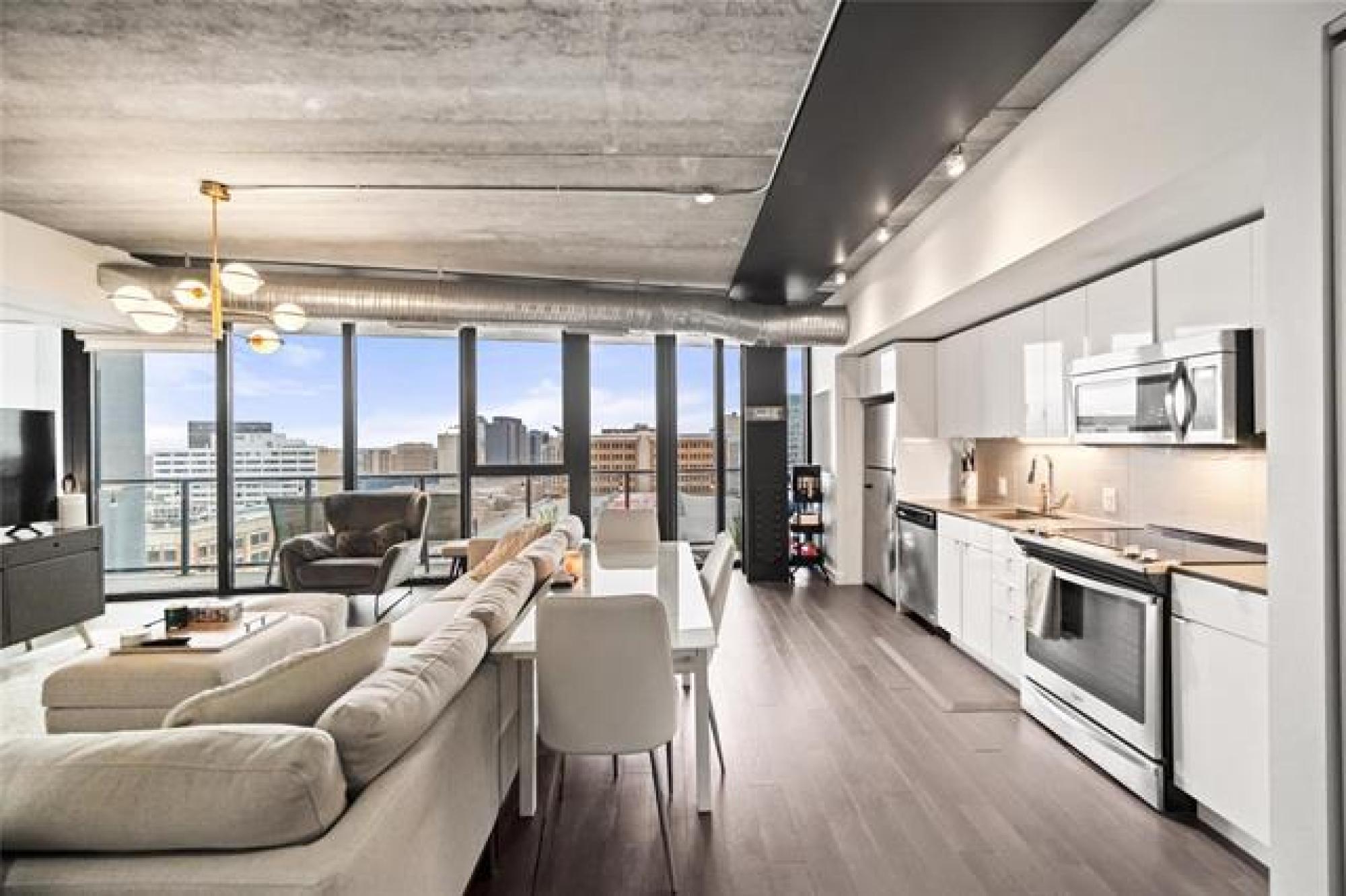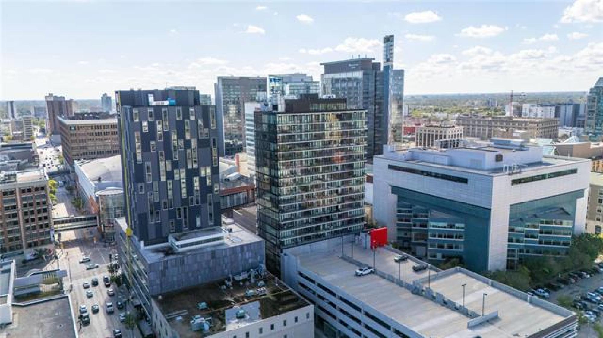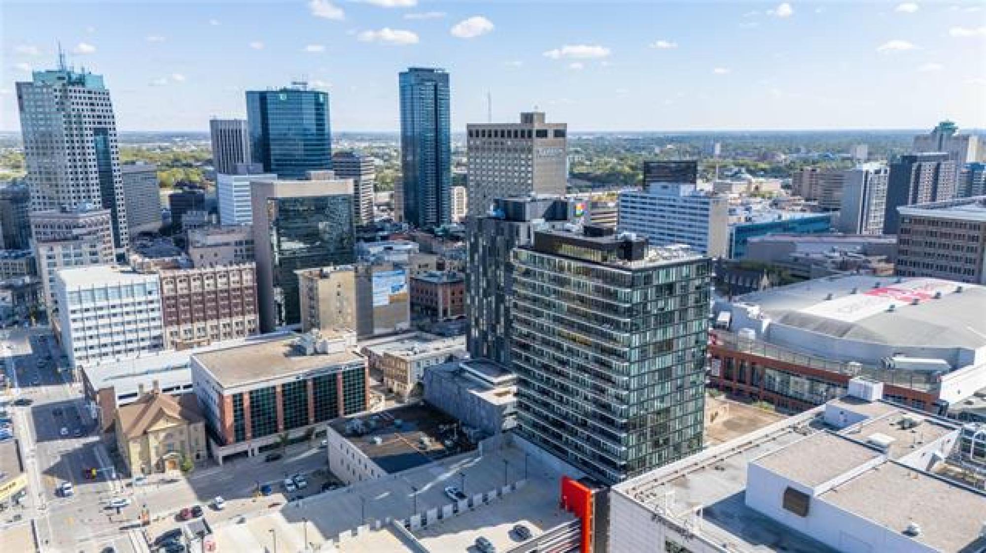Embrace modern downtown living in this stunning 15th floor corner suite at Glasshouse Lofts - one of Winnipeg’s newest and most architecturally striking towers! This 2-bedroom loft-style unit with exposed steel beams and concrete wall accents offers one of the best vantage points in the building, with sweeping South views, a massive balcony, and floor-to-ceiling windows that fill the space with natural light. The open-concept living area is perfect for entertaining, framed by incredible skyline views. The modern kitchen features high-gloss cabinetry, quartz counters, and stainless steel appliances. Additional features include in-suite laundry, a covered parking stall in the adjoining parkade, and a secure storage locker. This newer concrete building also offers a quieter, more comfortable living experience. Glasshouse sets the standard for urban living with a 21st-floor rooftop patio and sky lounge, large fitness centre, theatre room, and on-site concierge/security. With skywalk access to the Alt Hotel, and located directly across from Canada Life Centre, you’re steps from Jets games, concerts, dining, and True North Square - making this an ideal executive home or investment. Book your showing today!