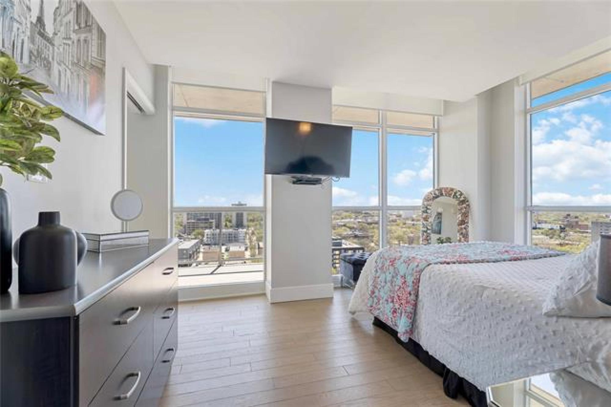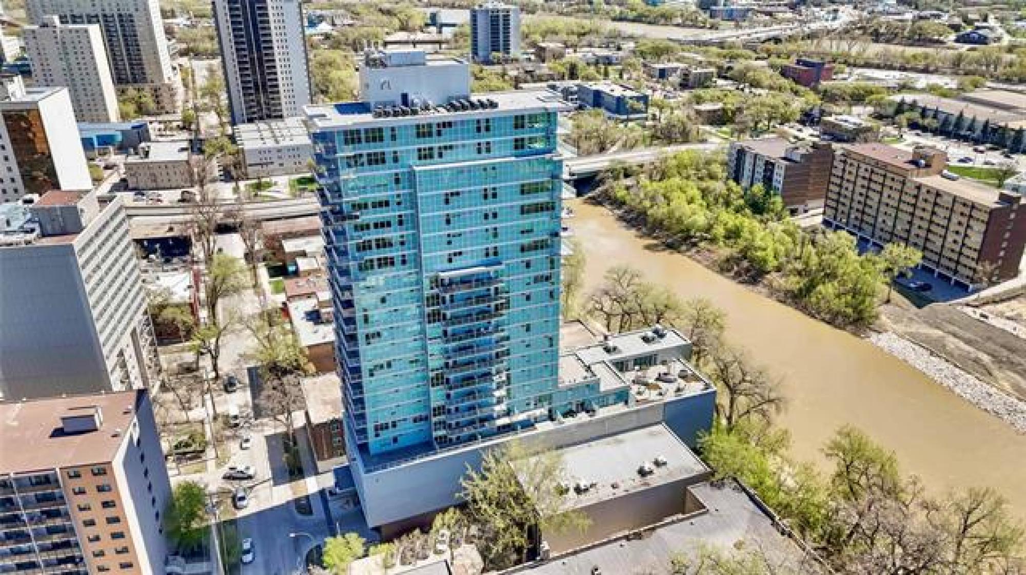 Just Listed! SS now with offers as received...Experience breathtaking river views from this prestigious 17th floor condominium featuring 2 bedrooms, 2 baths and floor-to-ceiling windows throughout. The bright open-concept layout showcases a gourmet kitchen with quartz countertops, oversized island with breakfast bar, and premium Jenn-Air/Fisher Paykel appliances. Wake to stunning vistas in your spacious primary bedroom with walk-in closet and 3pc spa ensuite. Generous second bedroom, additional 4pc bath, in-suite laundry, and heated hardwood/tile floors complete this exceptional home. Enjoy spectacular sunsets from your oversized private balcony or entertain on the shared 2,364sqft terrace with panoramic river views. This solid concrete building offers an elegant lounge with kitchenette, fireplace and pool table, guest suite, fitness studio, secure heated above-ground parking and storage unit! Private access to the river walk, steps from The Forks and downtown amenities. Pet-friendly! Elevated living awaits - don't miss this view!