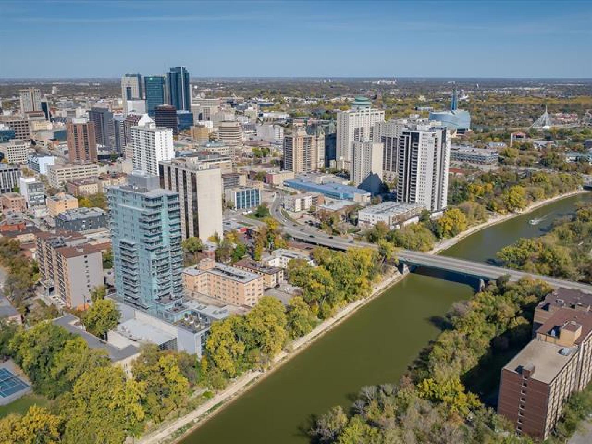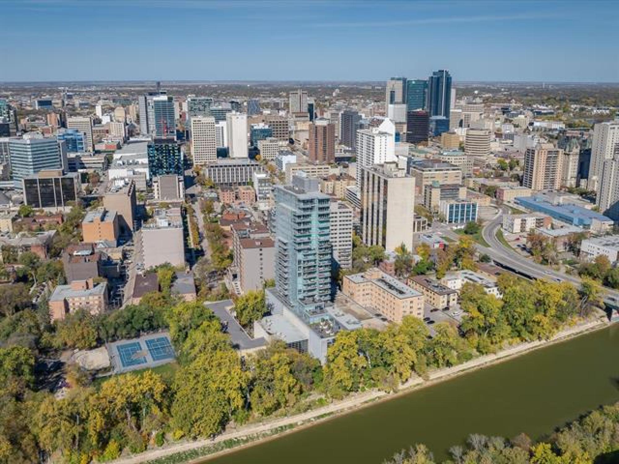 Just Listed! SS now w/ offers as rec'd...OPEN HOUSE SUN OCT. 5th 1-4...Experience breathtaking river views from this prestigious 17th floor condominium featuring 2 bedrooms, 2 baths and floor-to-ceiling windows throughout. The bright open-concept layout showcases a gourmet kitchen with quartz countertops, oversized island with breakfast bar, and premium Jenn-Air/Fisher Paykel appliances. Wake to stunning vistas in your spacious primary bedroom with walk-in closet and 3pc spa ensuite. Generous second bedroom, additional 4pc bath, in-suite laundry, and heated hardwood/tile floors complete this exceptional home. Enjoy spectacular sunsets from your oversized private balcony or entertain on the shared 2,364sqft terrace with panoramic river views. This solid concrete building offers an elegant lounge with kitchenette, fireplace and pool table, guest suite, fitness studio, secure heated above-ground parking and storage unit! Private access to the river walk, steps from The Forks and downtown amenities. Pet-friendly! Elevated living awaits - don't miss this view!