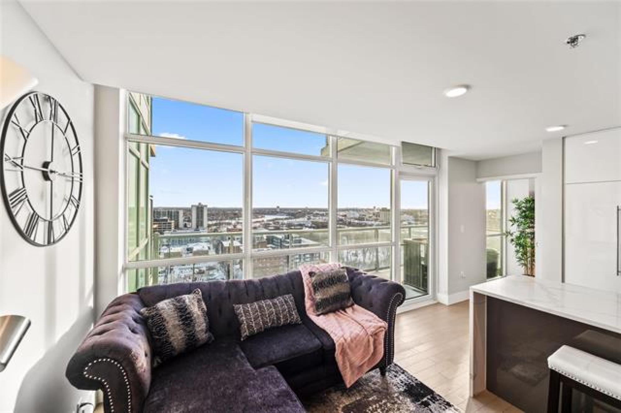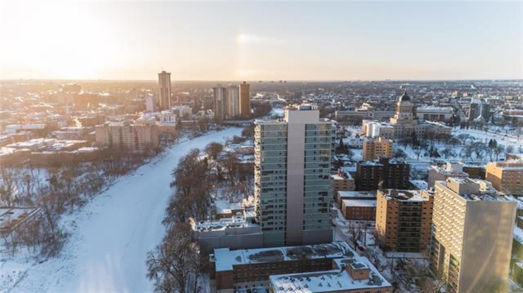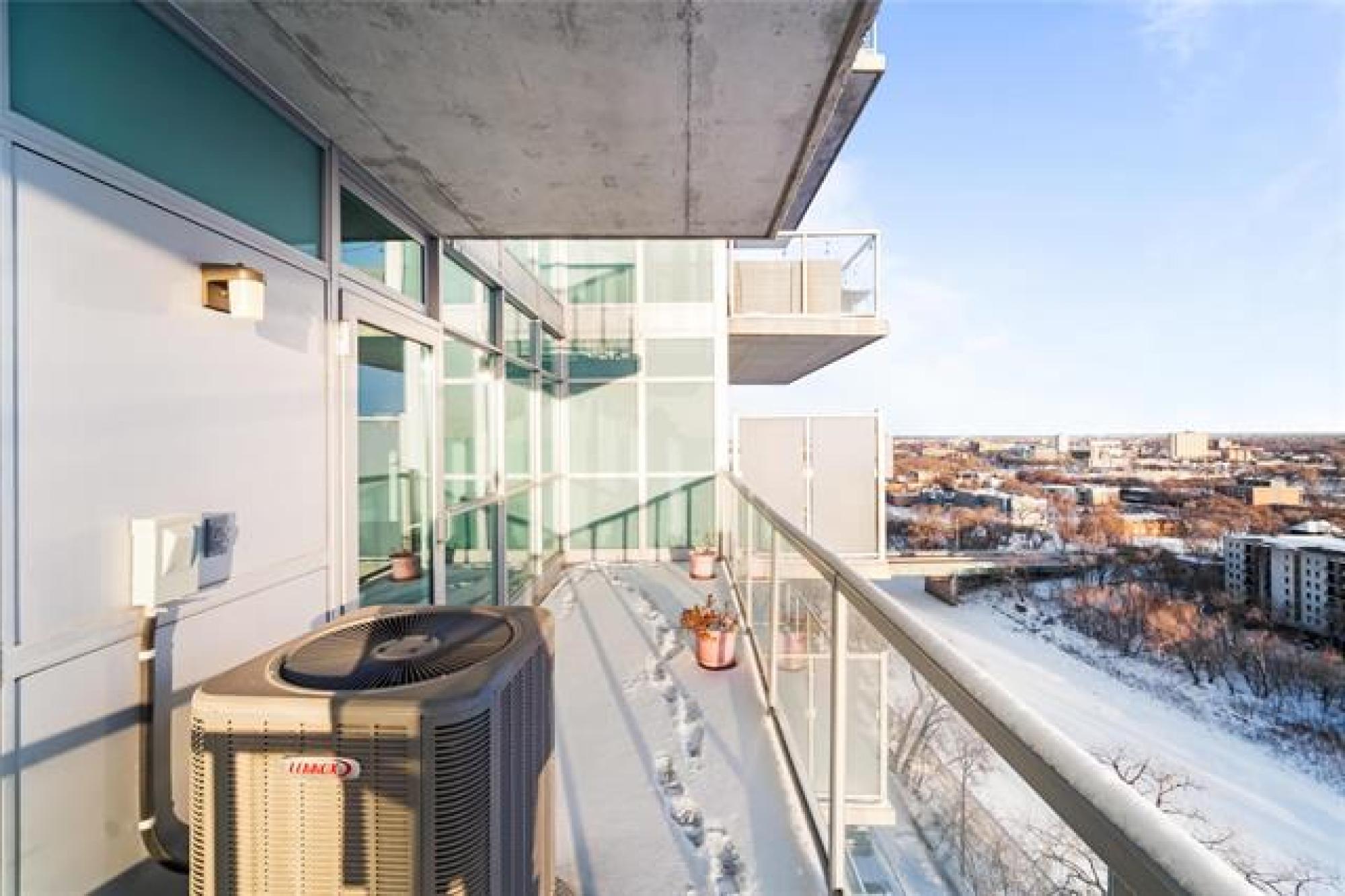 Showings start now. Offer as received. ** Open House Sunday 1pm to 2:30pm ** Perched on the 17th floor, this river-facing condo frames sweeping water and sunset views through walls of glass. The airy 2-bed, 2-bath layout centres around a chef’s kitchen with quartz counters, an oversized island with seating, and premium Jenn-Air/Fisher & Paykel appliances. This unit also features a serene primary bedroom features a walk-in closet and a spa-inspired 3-piece ensuite. A spacious second bedroom, a full 4-piece bath, in-suite laundry, and radiant heated hardwood/tile floors that round out the interior. Step outside to an oversized private balcony, or host on the building’s expansive 2,364 sq. ft. shared terrace capturing panoramic river vistas. This solid concrete residence also includes an elegant lounge (with kitchenette, fireplace, and pool table), a guest suite, a fitness studio, and secure heated above-ground parking plus a storage unit. Enjoy private access to the river walk and be just moments from The Forks and downtown conveniences. Pet-friendly and polished—elevated riverfront living, perfected. Book your private showing today!