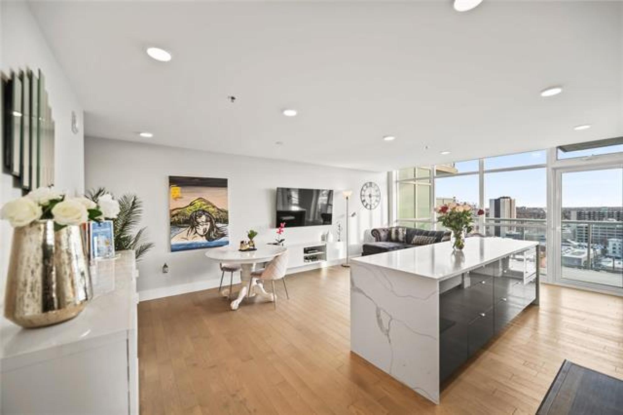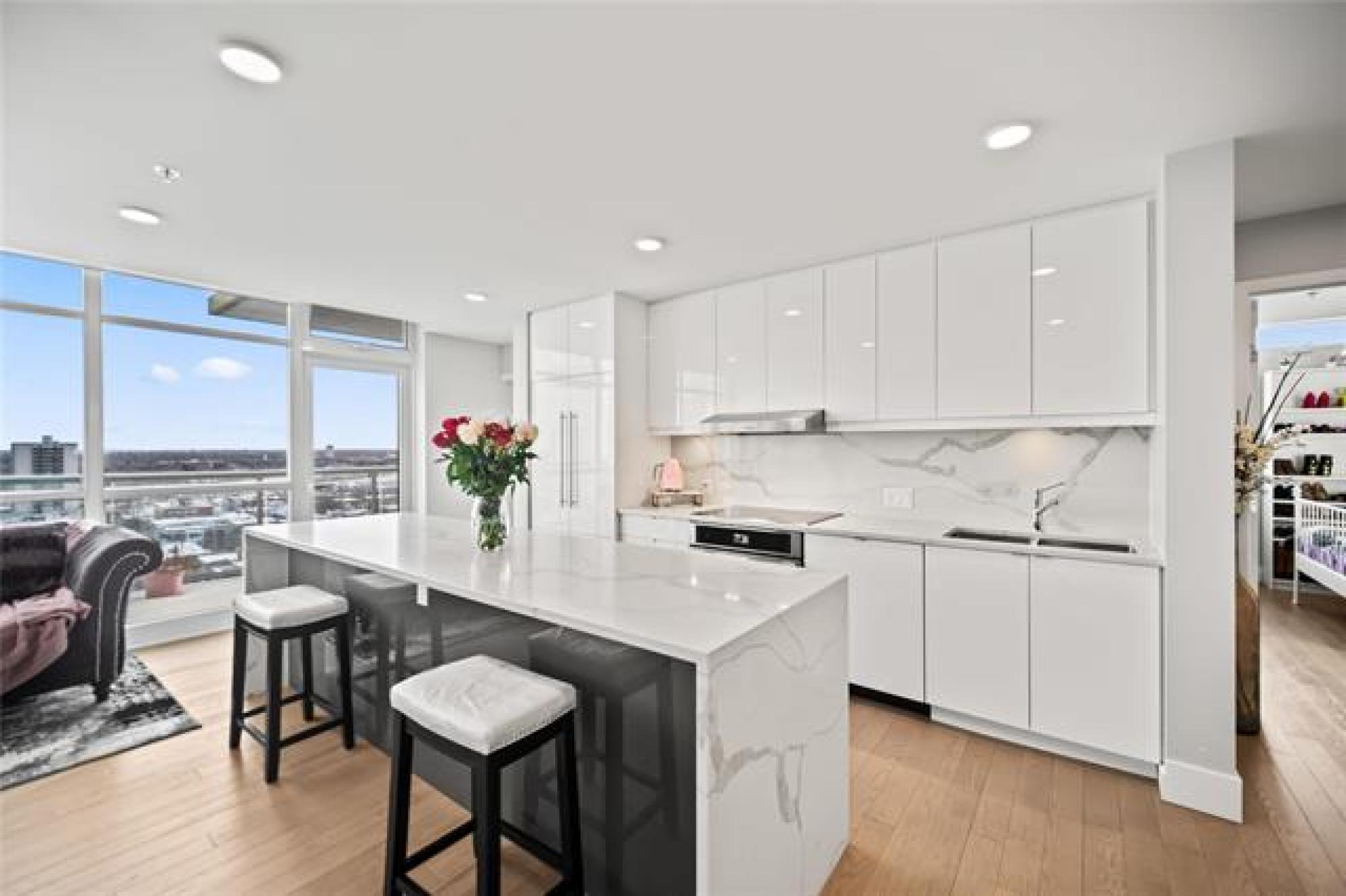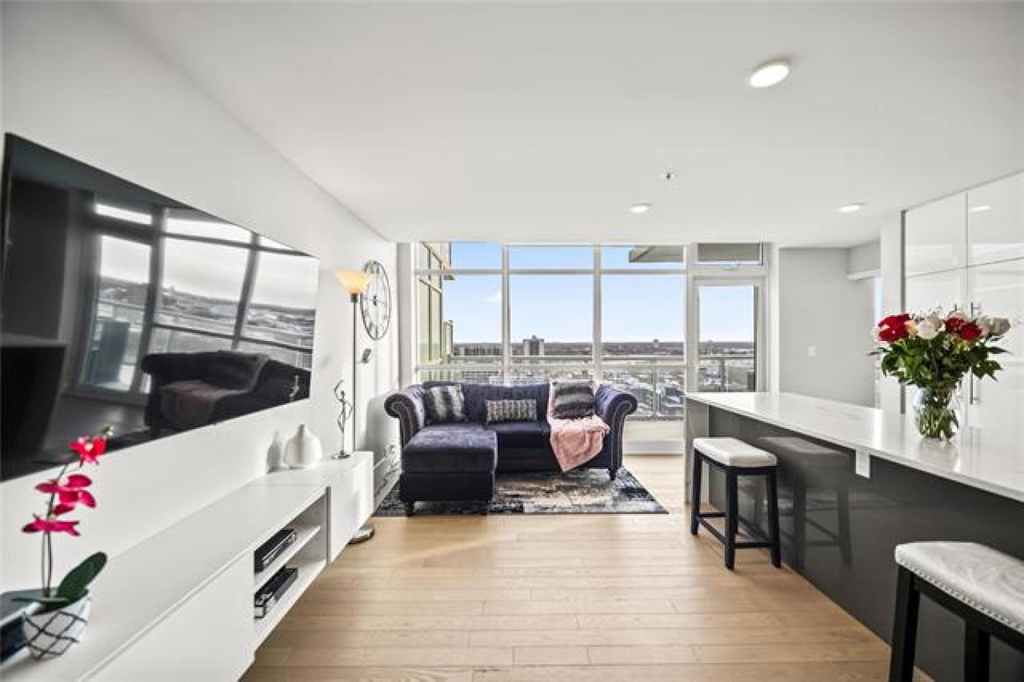 Showings start now. Offer as received. ** Open House Sunday 1pm to 2:30pm ** Perched on the 17th floor, this river-facing condo frames sweeping water and sunset views through walls of glass. The airy 2-bed, 2-bath layout centres around a chef’s kitchen with quartz counters, an oversized island with seating, and premium Jenn-Air/Fisher & Paykel appliances. This unit also features a serene primary bedroom features a walk-in closet and a spa-inspired 3-piece ensuite. A spacious second bedroom, a full 4-piece bath, in-suite laundry, and radiant heated hardwood/tile floors that round out the interior. Step outside to an oversized private balcony, or host on the building’s expansive 2,364 sq. ft. shared terrace capturing panoramic river vistas. This solid concrete residence also includes an elegant lounge (with kitchenette, fireplace, and pool table), a guest suite, a fitness studio, and secure heated above-ground parking plus a storage unit. Enjoy private access to the river walk and be just moments from The Forks and downtown conveniences. Pet-friendly and polished—elevated riverfront living, perfected. Book your private showing today!
