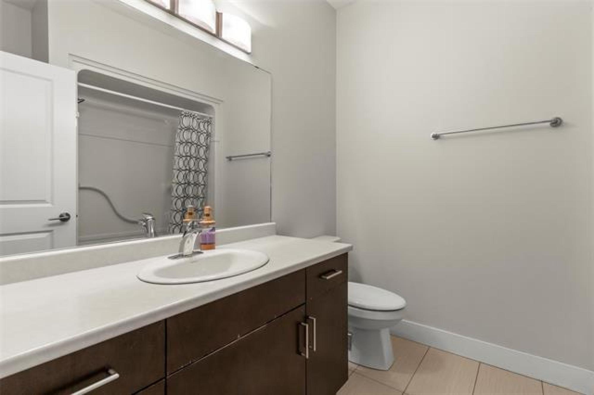 This 919 square foot top floor two bedroom condo blends contemporary style with smart functionality—and includes TWO parking stalls. Freshly painted and brand new carpet in bedrooms! A welcoming front entry leads to a sleek galley kitchen with an extended eating island, ideal for casual meals and entertaining. The open-concept layout showcases warm laminate flooring, 9’ ceilings, and an oversized 8’ sliding door opening to a private balcony. The primary bedroom is thoughtfully separated from the main living area for added privacy, while a combined laundry and storage room enhances everyday convenience. With only one shared wall, the home is designed for peace and quiet. Features include HRV, wall A/C, in-suite washer and dryer, stainless steel appliances, and window coverings. Bold architecture and inviting common areas make 5 FIVE 5 a standout address.