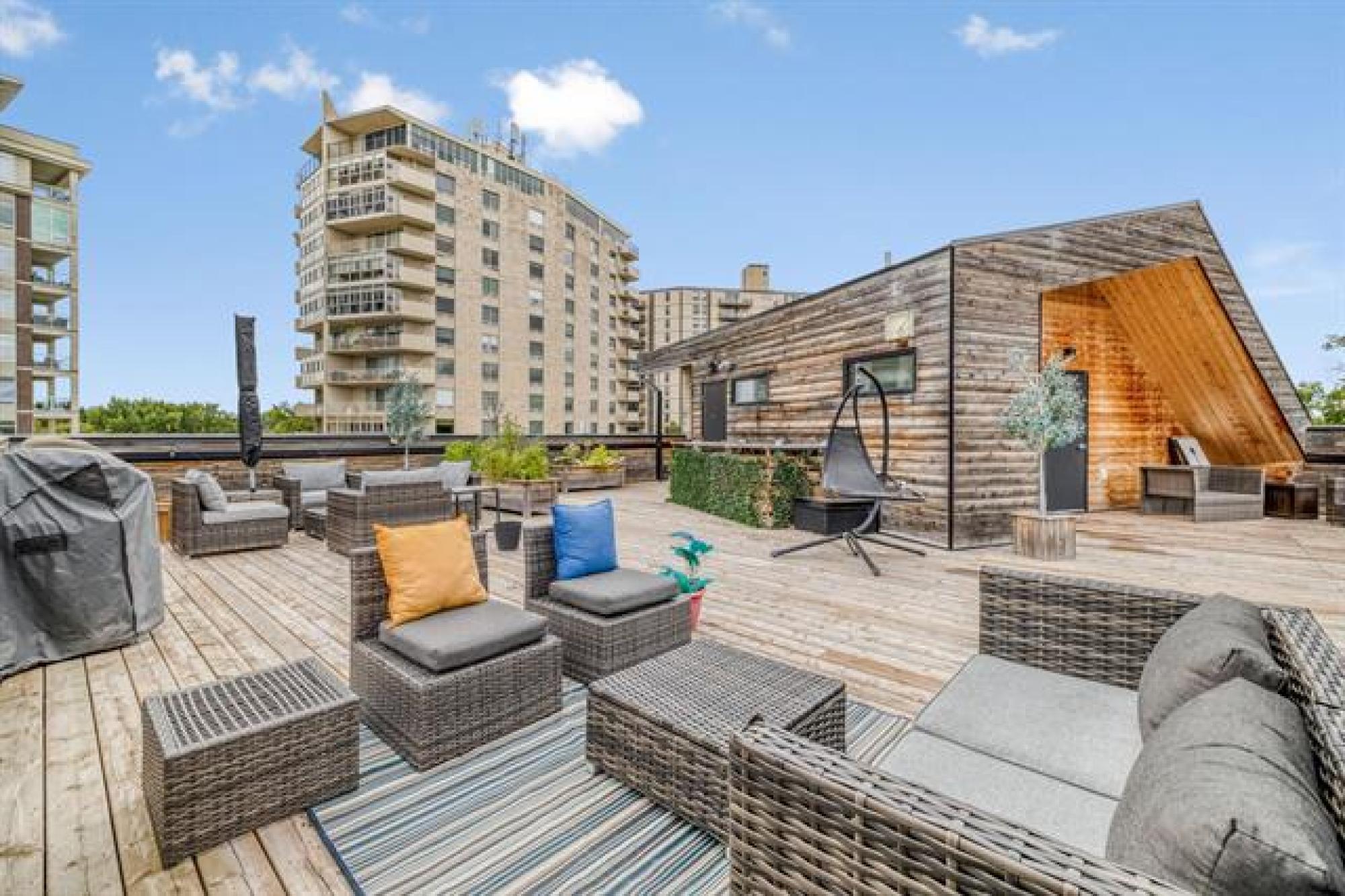 Offers as received. Step into 2-234 Wellington Crescent, stunningly designed by 2 Architecture Inc. This rare find, the only unit in the building with two underground parking spaces, offers luxury condo living at its finest. The chef’s kitchen is a culinary dream with a large breakfast island, perfect for starting your morning. Granite countertops add sophistication, while ample cabinetry, gas cooktop, and built-in microwave and oven make cooking a breeze. A dining area is nearby. The living area boasts Paradigm rear surround sound speakers, offering plenty of space for relaxation while the striking stone-faced gas fireplace serves as the focal point. The primary bedroom is the ultimate retreat, featuring a walk-in closet and a luxurious five-piece ensuite. With a soaking tub, tiled glass shower, and dual sinks, it’s the perfect space to unwind after a long day. A second bedroom and a stylish three-piece bathroom offer added convenience, while in-suite laundry ensures everyday living is as effortless as possible. You won’t want to miss the stunning rooftop terrace. Whether you're enjoying a quiet morning or taking in the evening sky, you'll enjoy city views in a peaceful, relaxing environment.