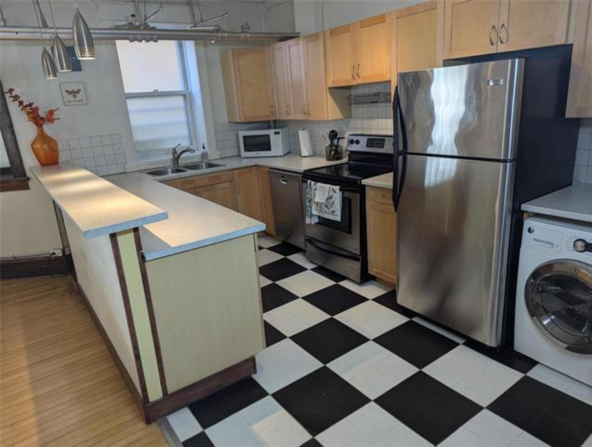 Show now, write now! Offers presented each evening as received. PERFECT, AFFORDABLE OPPORTUNITY! Working downtown? Going to college? Or even a great rental! Here is your chance to get into the housing market without breaking the bank. Welcome home to this fully updated character suite featuring hardwood flooring through most area, tiled kitchen and hall. Open concept with stainless appliances including dishwasher, wine fridge, tons of maple cabinetry and newer countertops, and peninsula breakfast bar with pendant lighting. Beautiful large wardrobe in PBR. Classic claw-foot soaker tub. Pet friendly. Free shared onsite laundry, but this suite comes with its' own insuite washer! Addt’n storage rental available. Located south of Broadway, easy access to The Forks, river walkways, Osborne Village, and all the amenities. Don't wait!