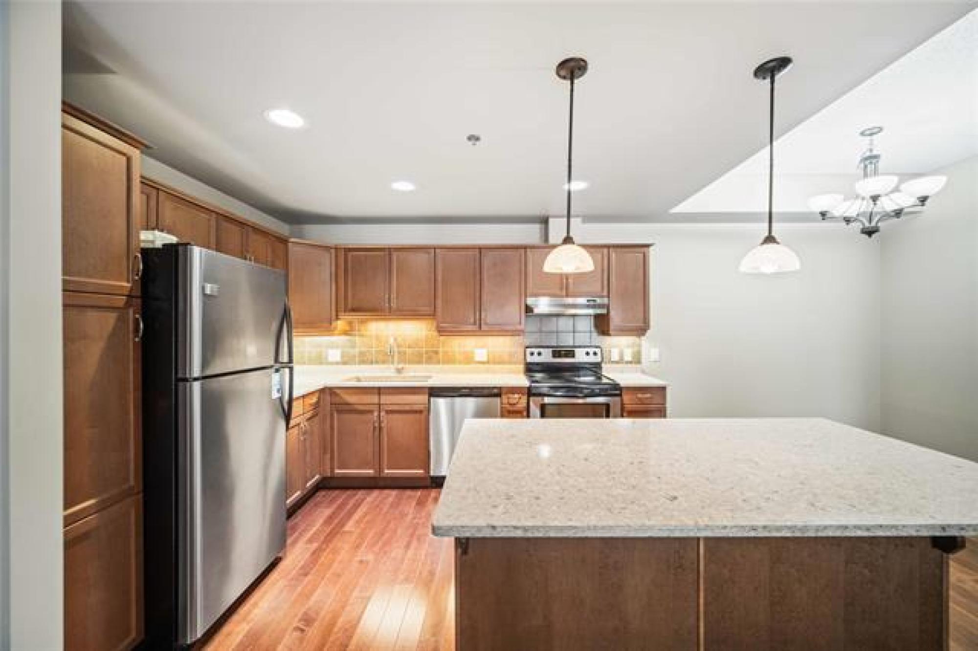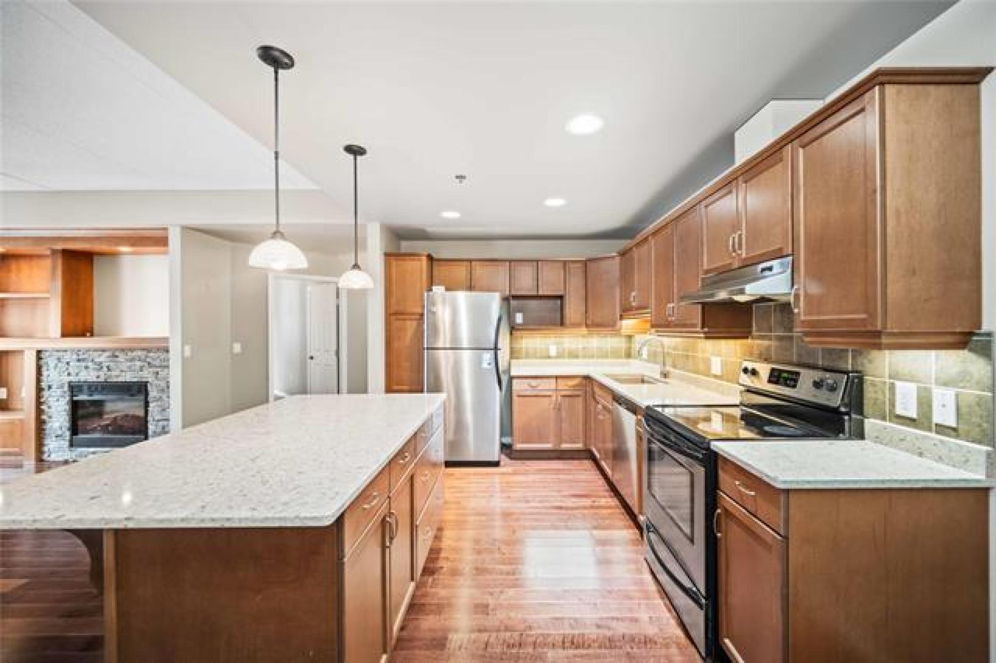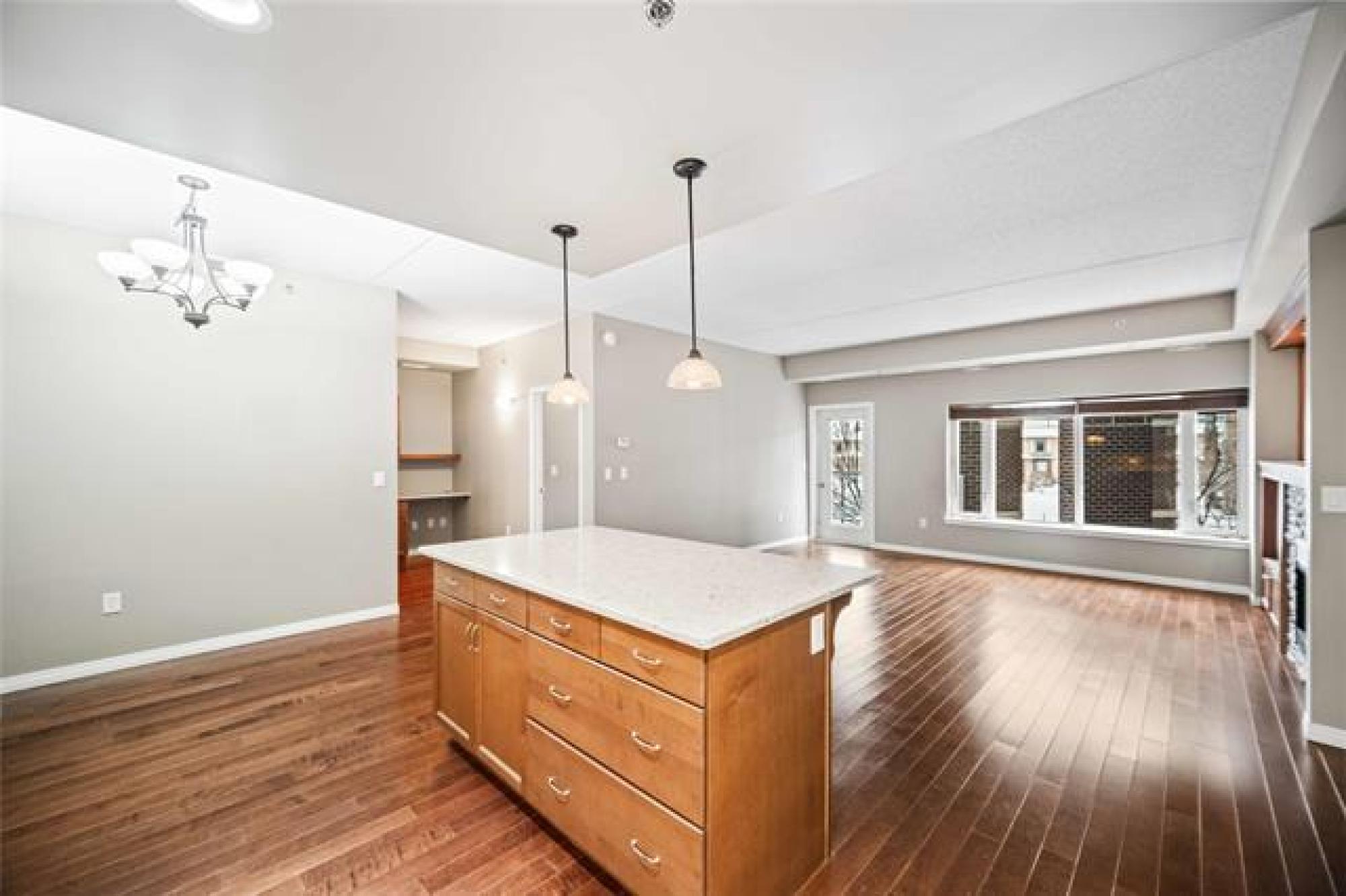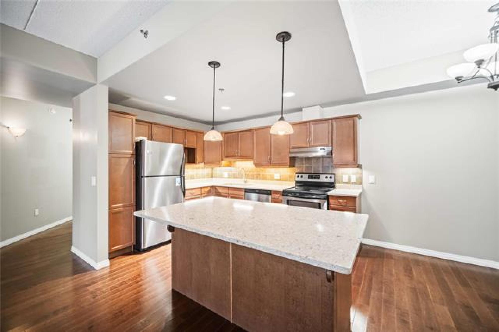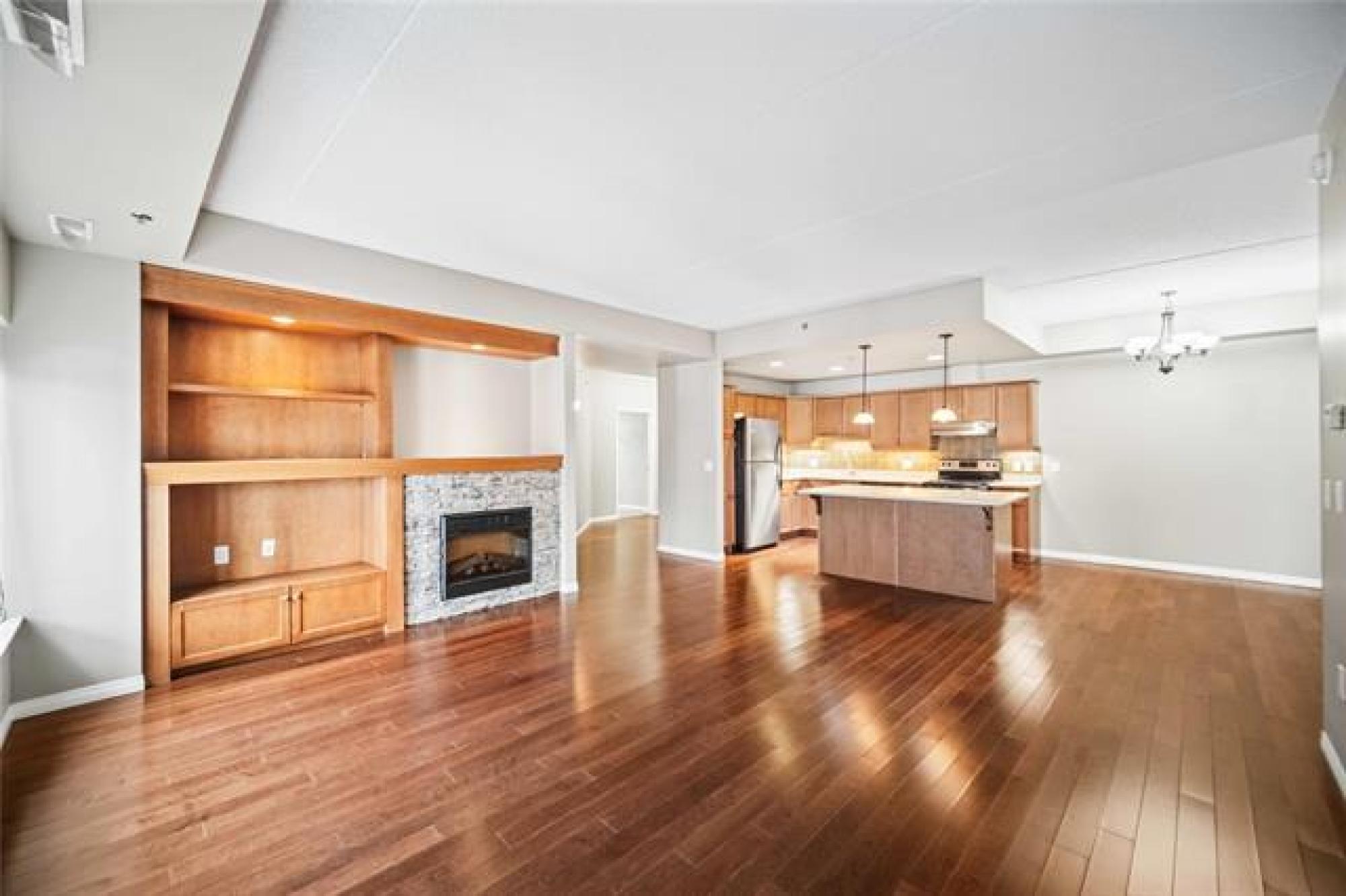 Offers as received. Rarely available 1,284 sf east facing unit that is situated on the 2nd floor of this concrete. building and is surrounded by unbeatable amenities. The unit has an open concept layout with great ceiling height and hardwood floors. The eat-in kitchen has maple cabinetry with a large island, quartz countertops, stainless steel appliances and backsplash. The adjoining family room is spacious in size with a built-in entertainment centre with electric fireplace and direct access out to the balcony. This unit has 2 bedrooms with the primary having a large walk through closet to the full ensuite bath. it also has a built-in office space, 2nd full bath and in suite laundry. 1 underground parking stall included