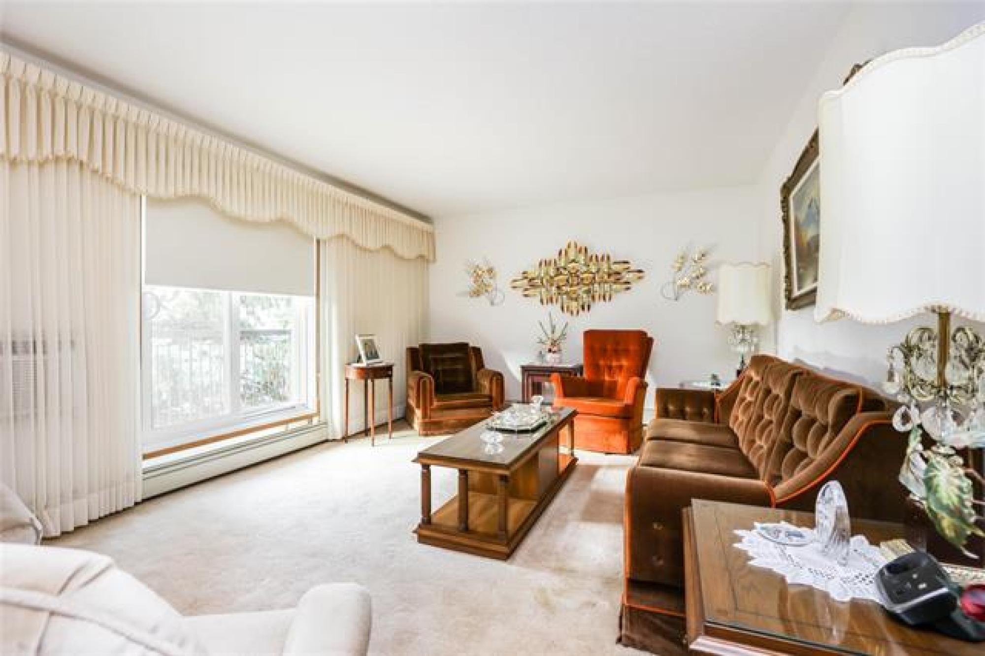 Showings start now. Very sought after Brandtwood Estates, meticulously kept by the original owner, natural decor, bright spacious approx. 1180 SF 2 bedroom, 1.5 bathrooms, in-suite laundry, spacious living room, newer patio doors to large balcony. Formal dining room, eat-in kitchen, appliances included (newer dishwasher),mirrored double closet and 2 pc. bathroom ensuite in primary bedroom. Updated windows, underground parking (with storage locker) multi purpose room. Great value for this unit - book your appointment today.