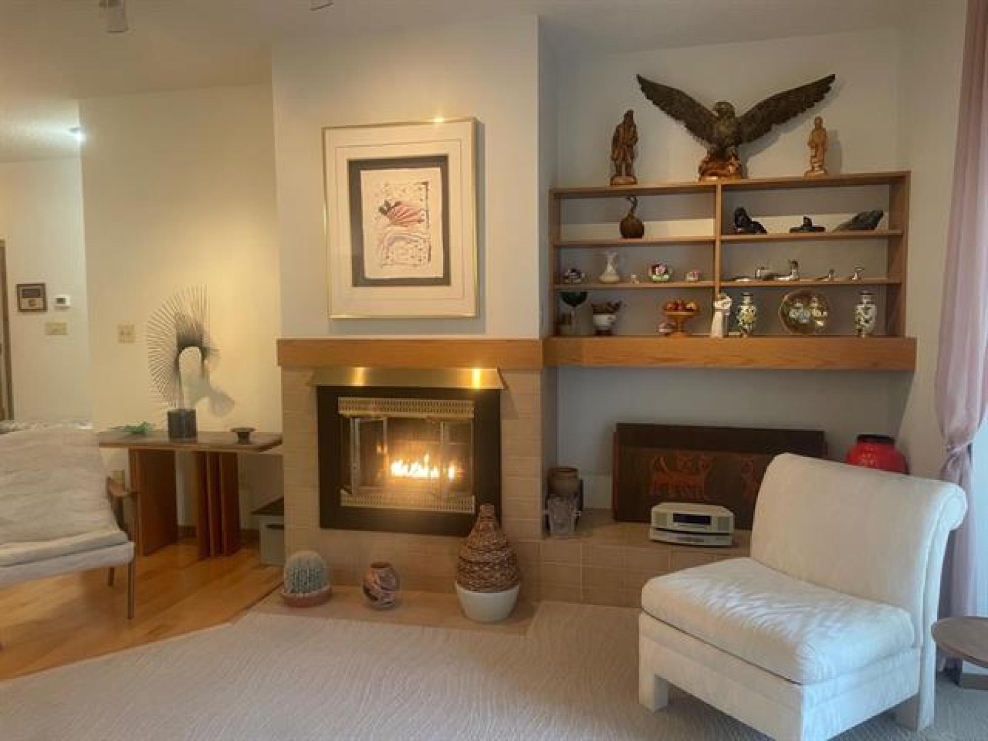 Showings start Dec 12th, offers to be presented Dec 16th. This spacious south facing 2 bedroom, 2 bathroom unit has been beautifully looked after. Upgrades include new blinds, fridge (2025), stove (2022), new carpets and hardwoods and newer washer and dryer. Living room features a gas fireplace, patio doors to balconey viewing the beautiful courtyards. Kitchen looks out to the dining room area. Large primary bedroom with double closets and 3 piece ensuite. Second bedroom is perfect for guests or office. A main bath with jacuzzi tub and convenient insuite laundry complete the unit. 2 heated underground parking stalls (with owners' shared car wash) make the cold winters a little easier. Storage locker in secured area off parking garage. Concete building, private location, lots of visitor parking, easy access to shopping and transit.