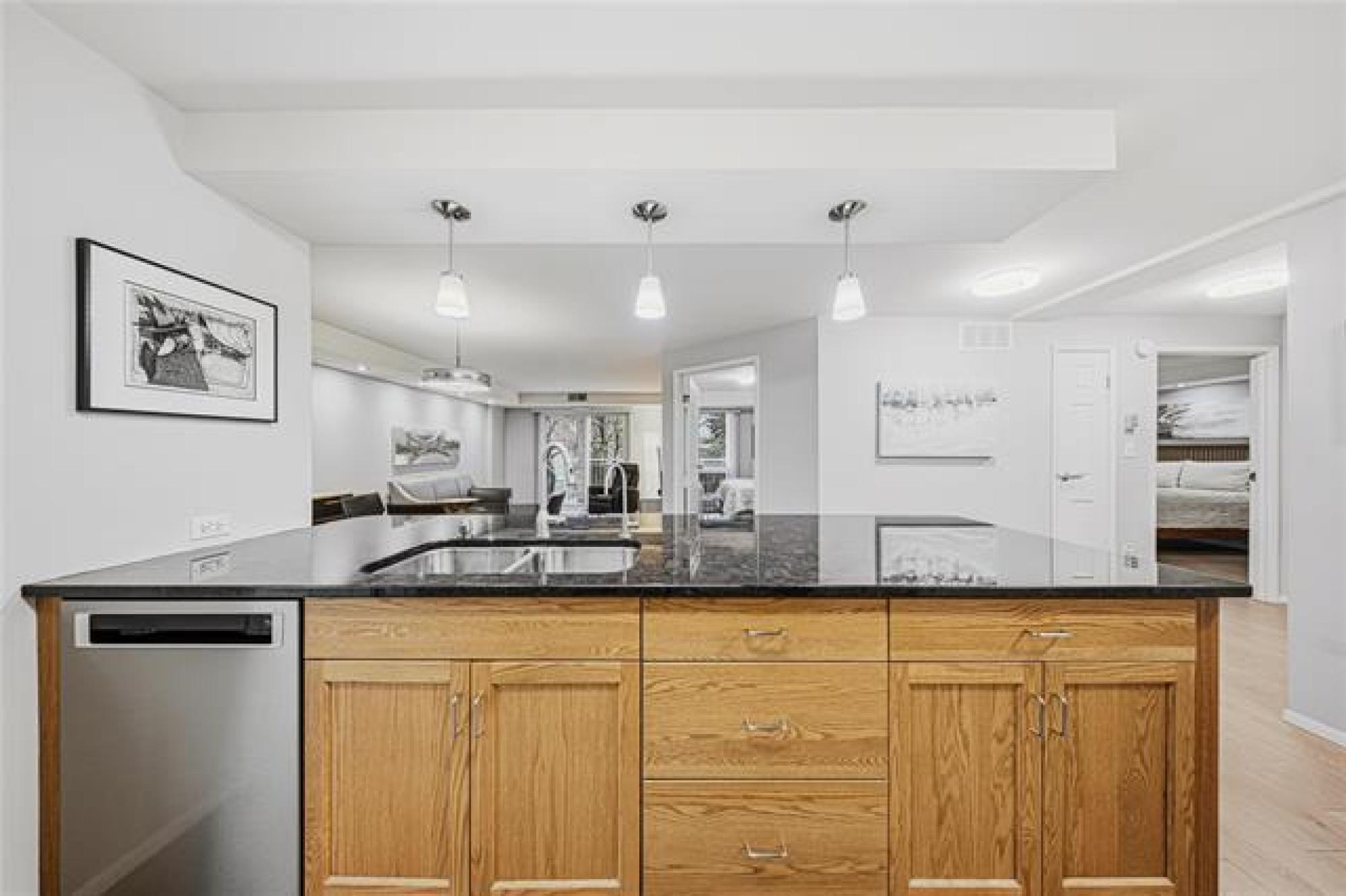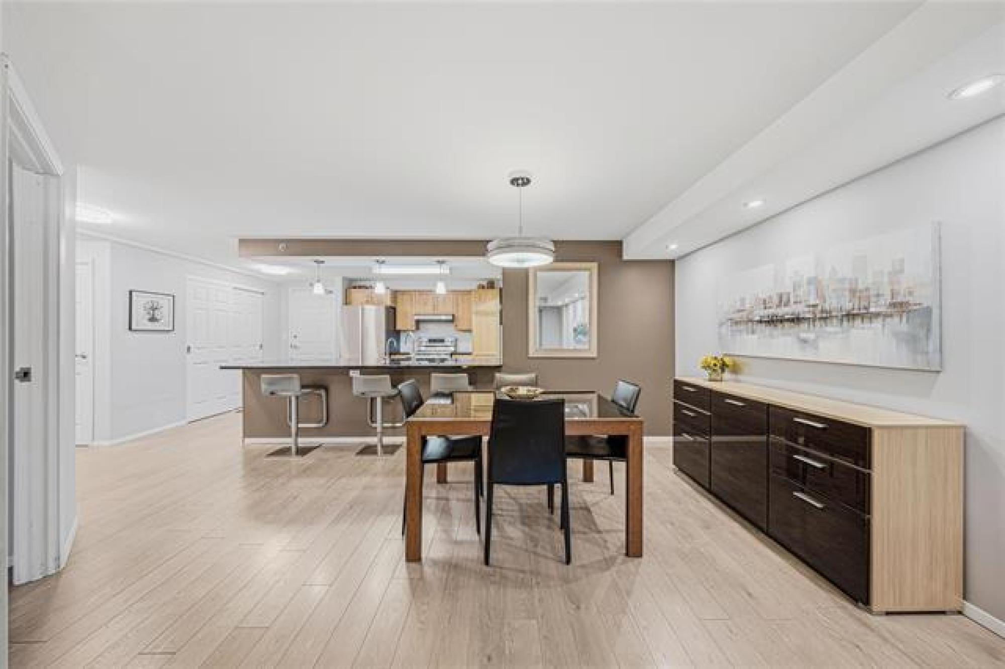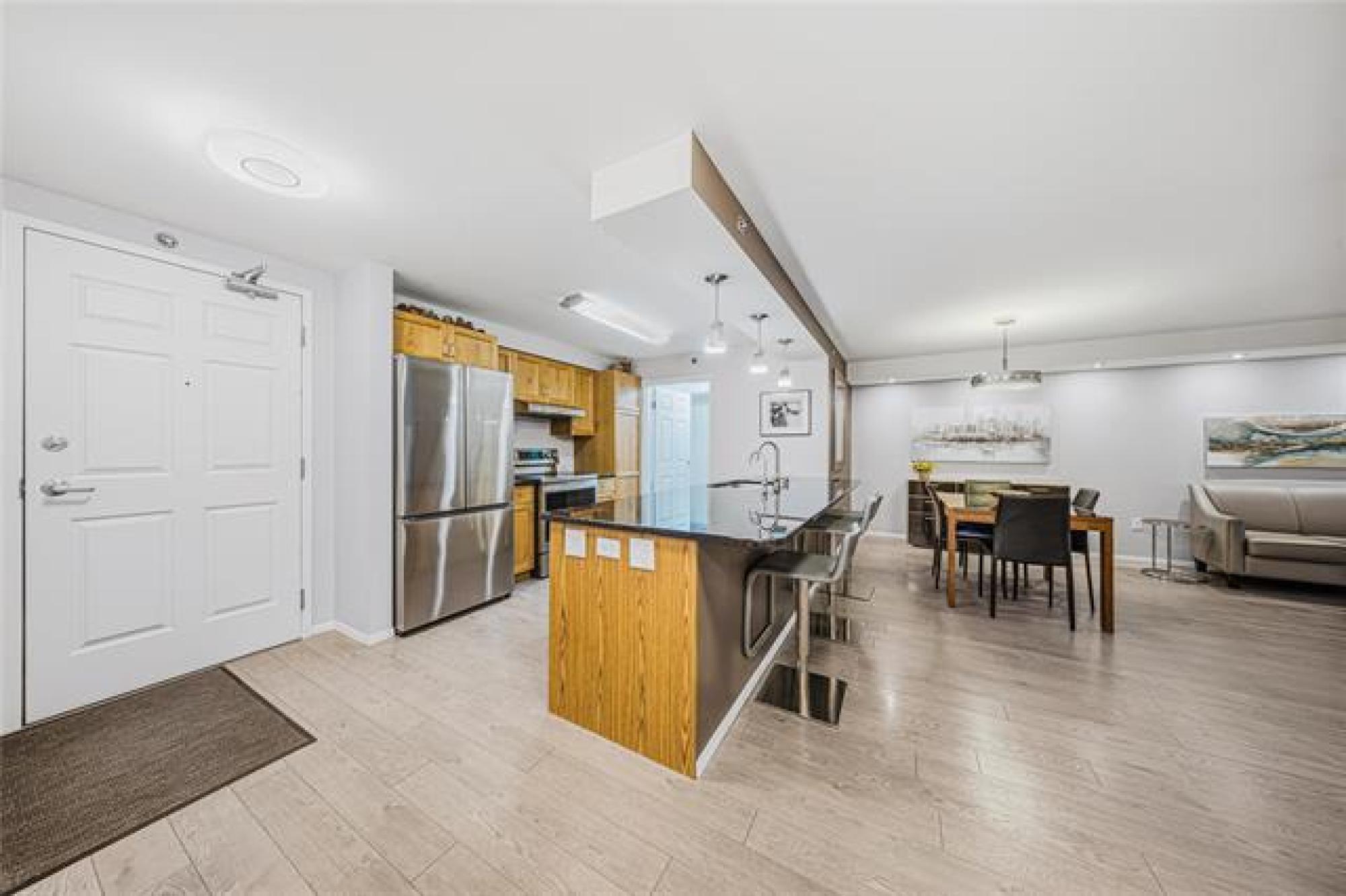 Offers reviewed the evening they are received. This concrete & steel building is a true gem in historic St. Boniface. The beautifully updated condo is sure to impress. The kitchen has been thoughtfully opened up to the dining and living areas, featuring granite countertops, a double sink w/ Rainfresh water filtration system, and a fridge and stove that are appr 2 yrs old. Quality laminate flooring flows throughout, and the ceilings have been refinished to remove stipple for a more modern look. The dining and living areas include a buffet, wall-mounted entertainment unit, TV and wall mount incl. Patio doors lead to an east-facing balcony w/ views of the Cathedral. The spacious primary bedroom offers double closets w/ built-in organizers & a jewelry case, along w/ a 3 pc ensuite. Add'l features incl in-suite laundry, central vacuum, a social room for gatherings, and heated underground parking with storage. Conveniently located within walking distance to St. Boniface Hospital, The Forks, the Canadian Museum for Human Rights, and the shops and restaurants along Provencher. Ample visitor parking available.