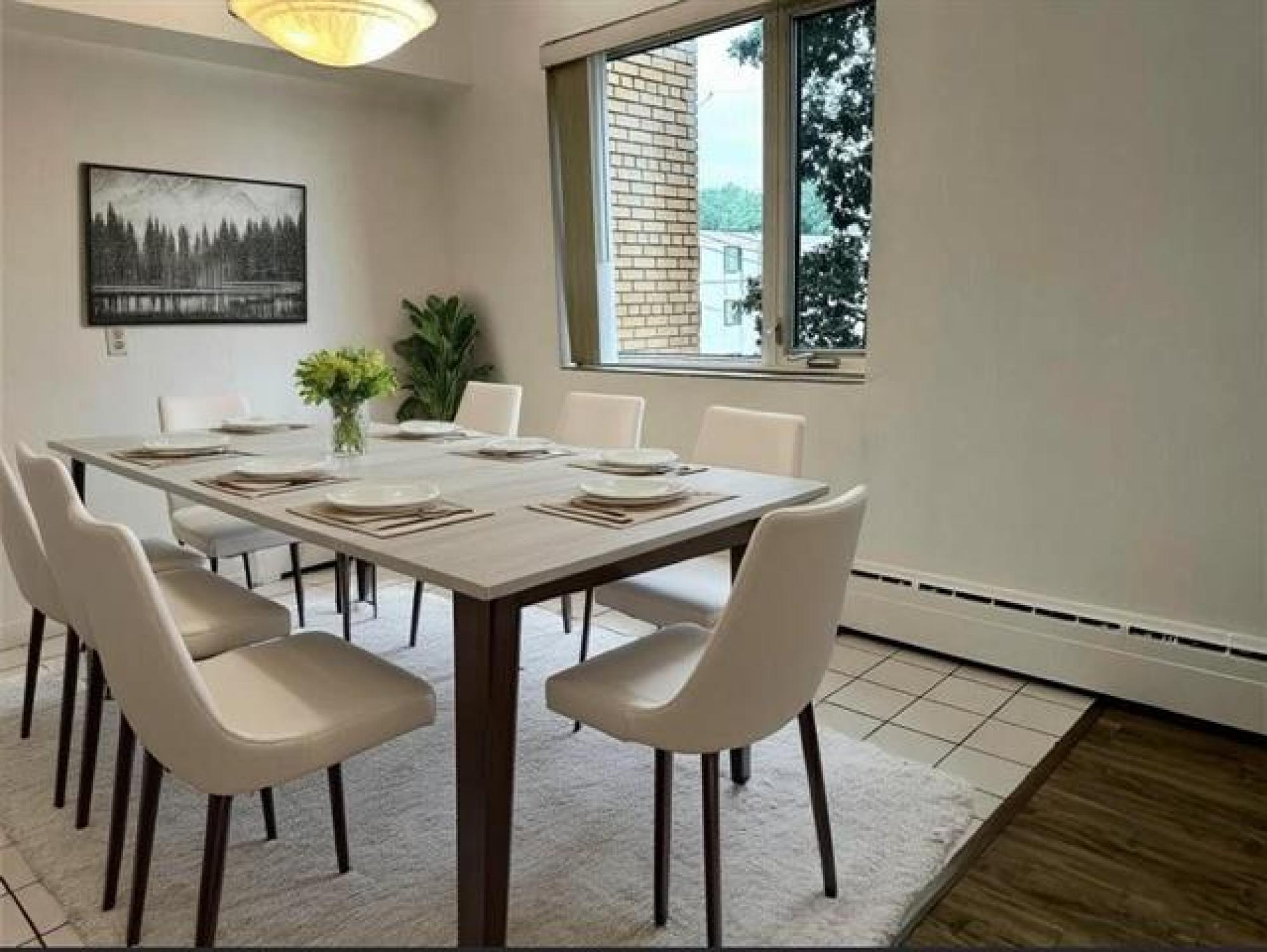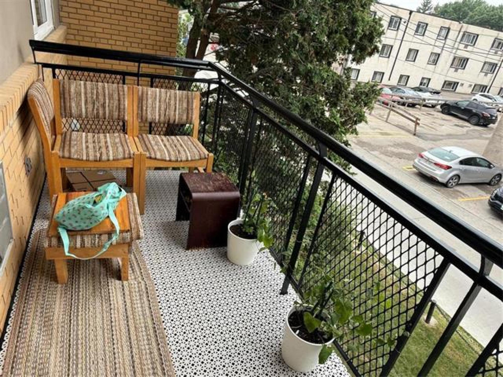 Offers anytime! Do not miss this great opportunity in the amazing neighbourhood of River Heights - First time home buyer, accommodation for your University child, Investment income, Downsizing, Reno and Sell . . . Many options with this great 2 Bedroom apartment condo. From the front entry, you will be captivated by the early 60s vibe with an abundance of windows in the open entry, with a staircase leading to the upper floors. Beautiful and bright with large updated windows that allow the sunshine to illuminate this second floor END UNIT. Grow plants, tomatoes, herbs, etc on the West-facing balcony, and relax in the evening with a glass of wine! You will love the spacious layout with 1065 Sq Ft of living space. The semi-open concept living area is roomy with a large central livingroom having the kitchen and formal dining room to one side and the 2 bedrroms and bathroom on the other side. The bedrooms are both impressive in size and have large north facing updated windows. No need to load a card or save your coins with the in-suite laundry! PET-FRIENDLY. Close to schools, bus service, and parks. No disappointments here!