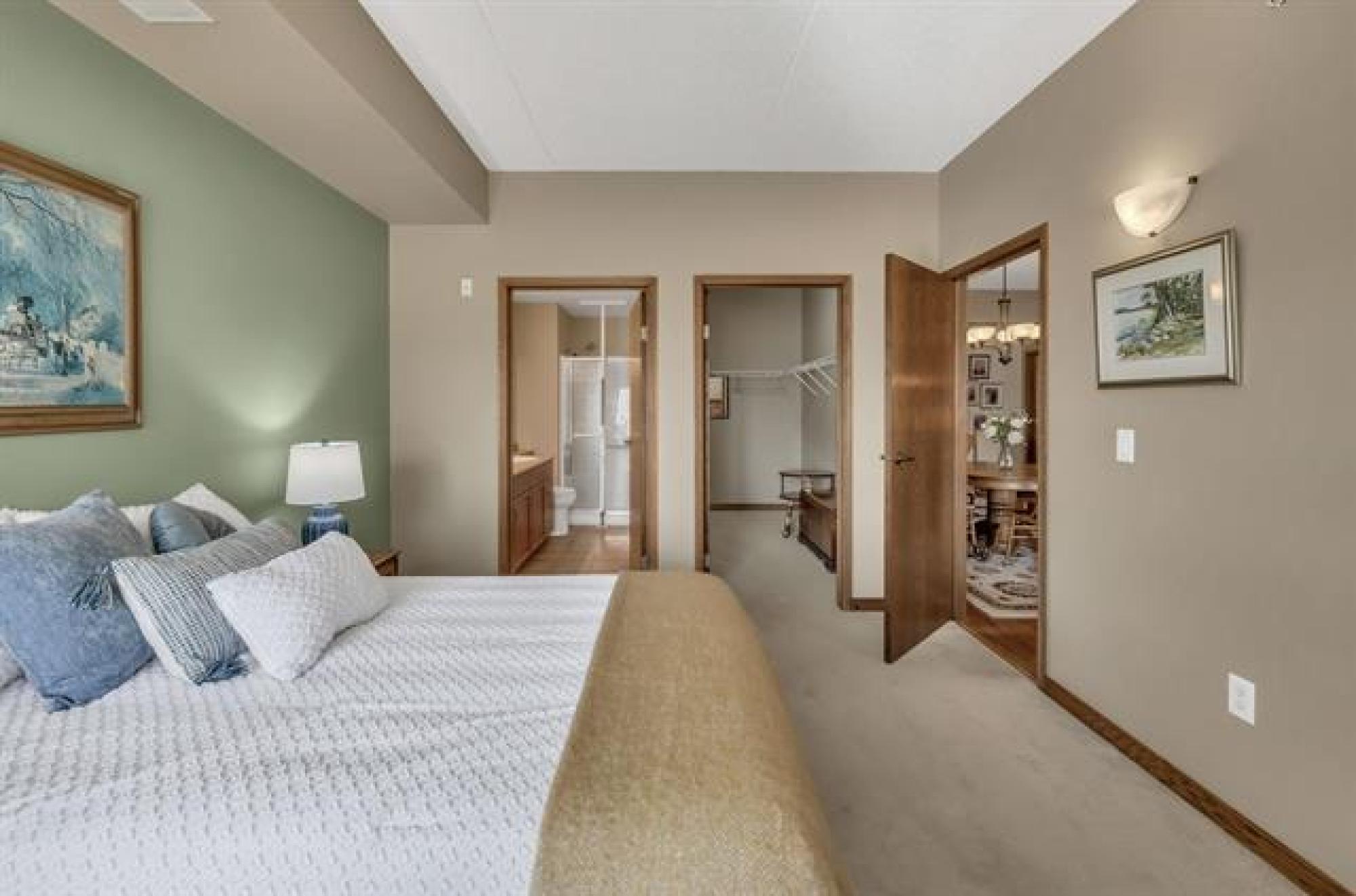 S/S Thurs. Oct. 9, offers Wed. Oct. 15 after 6 pm. This spacious 2-bedroom corner unit offers comfort, style & convenience in a well-located concrete and steel building. Featuring beautiful hardwood floors & an open concept design, the home boasts an eat-in kitchen w/ample cabinetry, ss appliances & a granite-topped island w/breakfast bar. An office nook w/built-in desk & cabinetry flows into the wraparound enclosed balcony, showcasing panoramic views—perfect for relaxing or working from home. The dining area opens to a welcoming living room with a large window, custom built-in display shelving & electric fireplace w/stone surround. The bright primary bedroom includes a WICC & a 4-piece ensuite w/double vanity & walk-in shower. A well-sized guest bedroom, additional 4-piece bath, and laundry/storage room complete the layout. This pet-friendly building (small pets only) features fantastic amenities including a gym, games/party room, library & guest suite (located in building 270), underground parking stall #84 with car wash. Storage locker (#87) on the same floor. Just steps from shopping, restaurants & movie theatre. Minutes to Fort Whyte & off-leash dog park...this is condo living at its best!