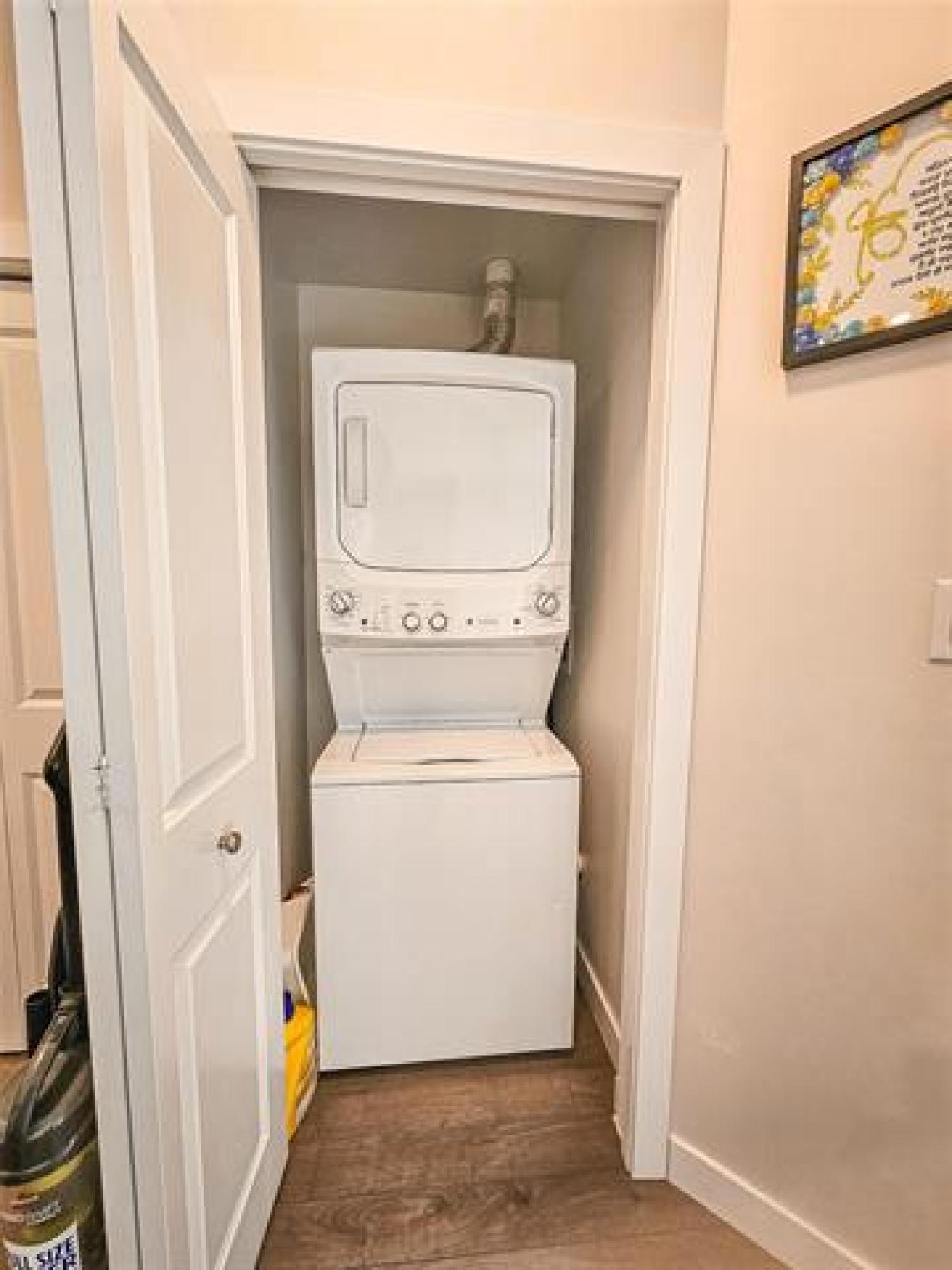 SS. Now! Offers as received. CALLING INVESTORS FOR A GREAT RENTAL OPPORTUNITY! Unit occupied until 2026. This two-bedroom, one-bath condo in Amber Trails has numerous upgrades and features you soon won’t be able to live without. The open-concept style of living is perfect for daily life and hosting social gatherings—note the kitchen’s beautiful maple cabinets, stylish laminate floors, newer, worry-free appliances, and aesthetic recessed lighting. A welcoming balcony gives you your own outdoor space to enjoy... imagine mornings with the news and a cup of coffee or evenings spent talking with friends. You'll find two spacious bedrooms, a four-piece bathroom with plenty of drawer storage, and easily accessible in-suite laundry. This unit feels large at 772 sq. ft. Two parking spaces are included: park one vehicle outdoors and the other underground for stress-free parking. Enjoy the many on-site amenities, including the gym and party room, as well as nearby conveniences such as parks, shopping, and great takeout food. Call for your tour today!