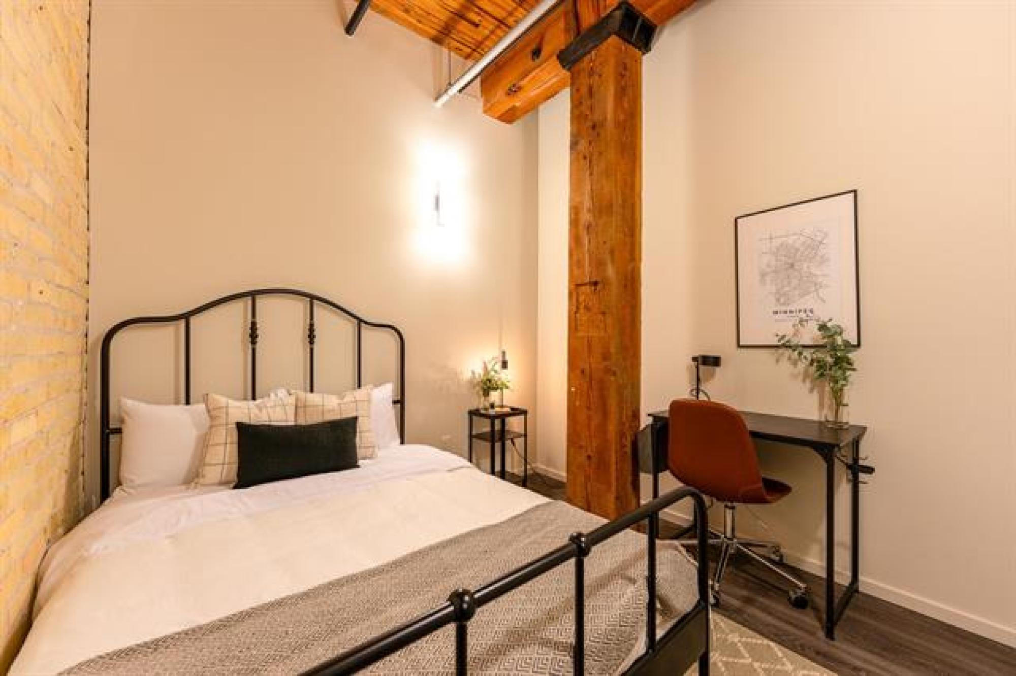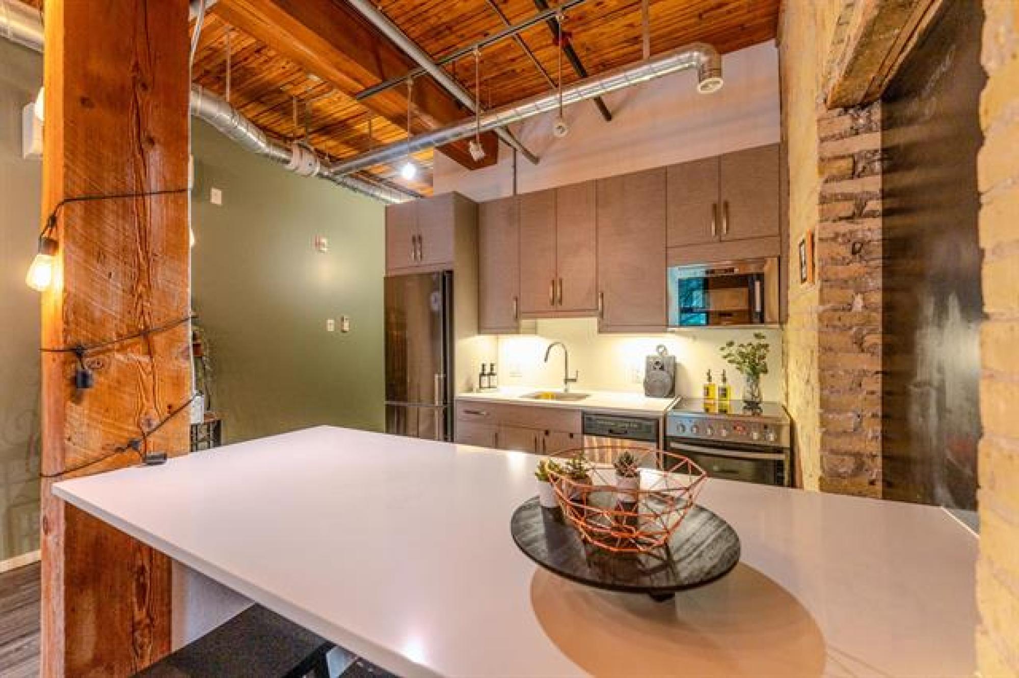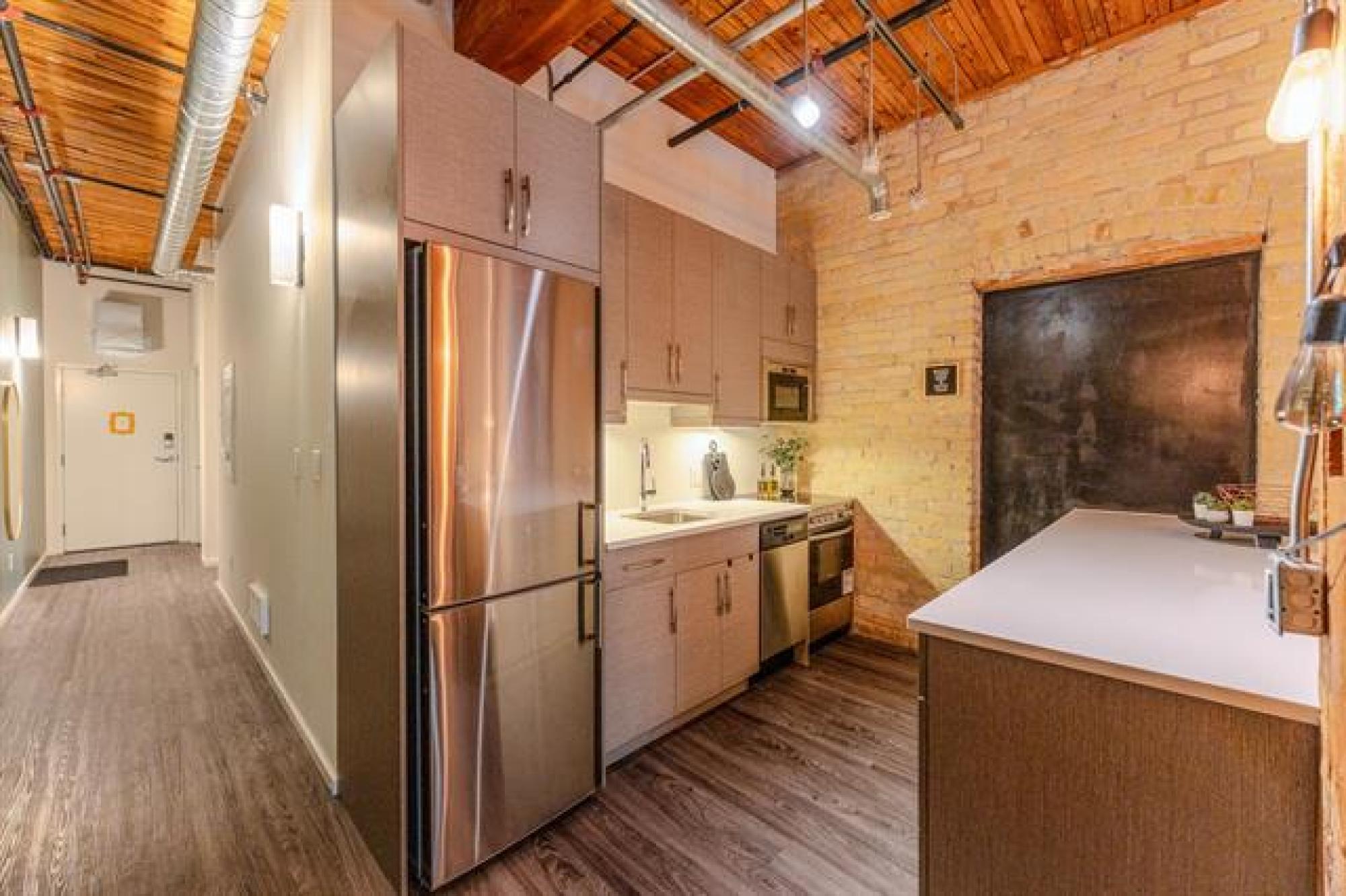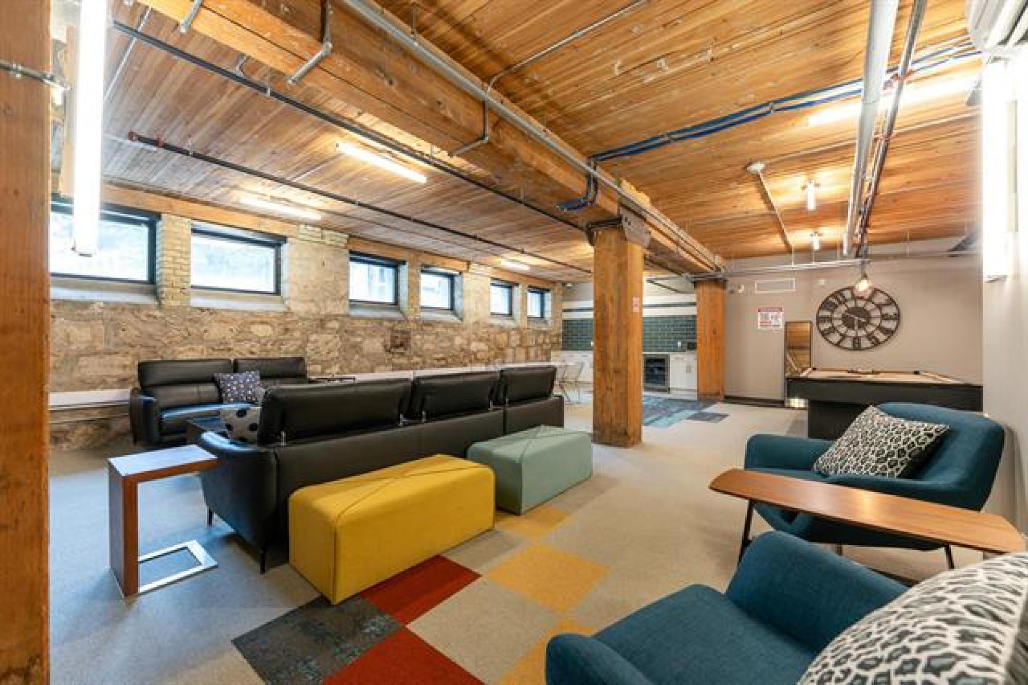 Where heritage meets hip! Step into this stunning 2-bedroom condo in the heart of Winnipeg’s iconic Exchange District—a perfect blend of historic charm and modern style. Surrounded by culture, cuisine, and creativity, this unbeatable location puts everything at your doorstep—walk to the waterfront, grab a bite at local favourites, sip craft cocktails at nearby distilleries, or catch a show at the Concert Hall, MTC, or Manitoba Museum. Inside, character and comfort collide—soaring ceilings with exposed wood beams, gorgeous brick walls, and stylish modern finishes throughout. The open kitchen is sleek and functional, the 4-piece bath is fresh and bright, and the in-suite laundry and walk-in closet add everyday convenience. The building itself is packed with perks: a chic common lounge with stone walls and a pool table, a full gym, and an incredible rooftop patio perfect for morning coffee or sunset hangs. Pet-friendly and investor-ready, this is your chance to own a piece of Winnipeg’s history with modern flair!