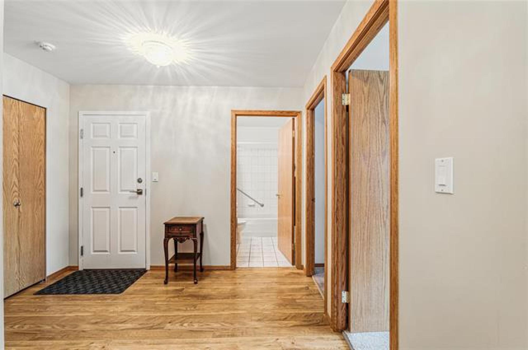 Have you been looking for a huge condo that doesn’t feel like a small box to live in? Look no further than this exceptional 2nd floor condo, one of the largest units in the complex. Sunny southern balcony exposure overlooking a lush green space—an ideal spot to enjoy peaceful moments while watching deer graze beneath the apple trees. This spacious home has 2 br's plus a versatile den, perfect for a home office or guest space. The upgraded kit is a chef’s delight, boasting modern finishes & quality appliances w/soft close drawers & cabinets boasting quartz counters, seamlessly flowing into the open-concept living & dining area. Rich, upgraded flooring runs throughout, adding a touch of warmth & elegance .Enjoy cozy evenings by the gas fp or step out onto your private balcony, ideal for morning coffee or relaxing at sunset. Stay comfortable in the summer with central air, and take advantage of spacious in-suite storage, two full baths, & extra storage next door in the hall, 2 conveniently located parking stalls near the entrance. This home truly offers the perfect blend of comfort, nature, & convenience, close to walking trails, shopping, restaurants & transit.