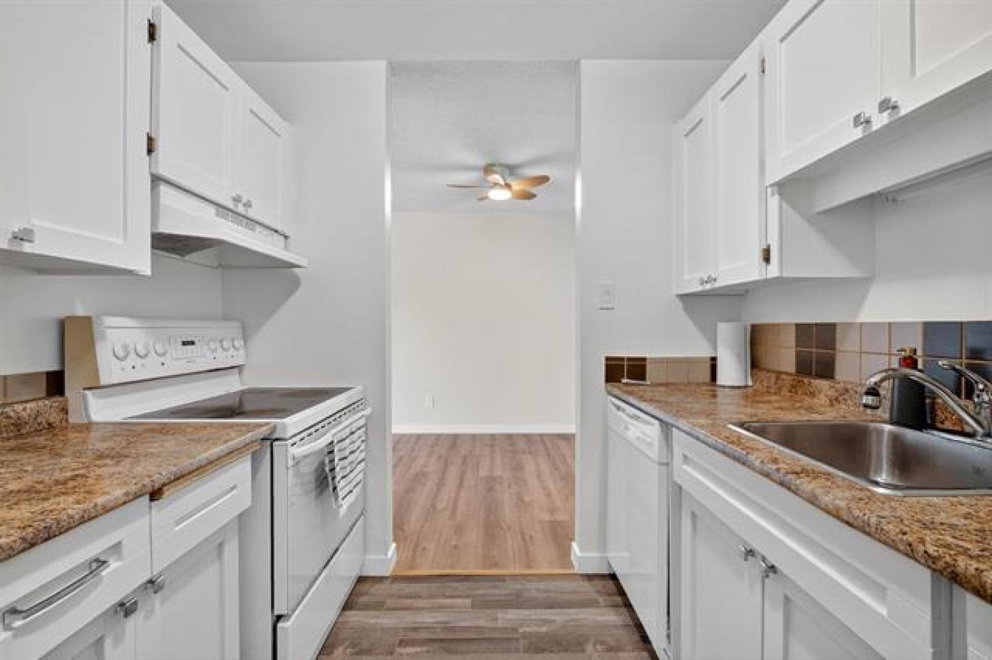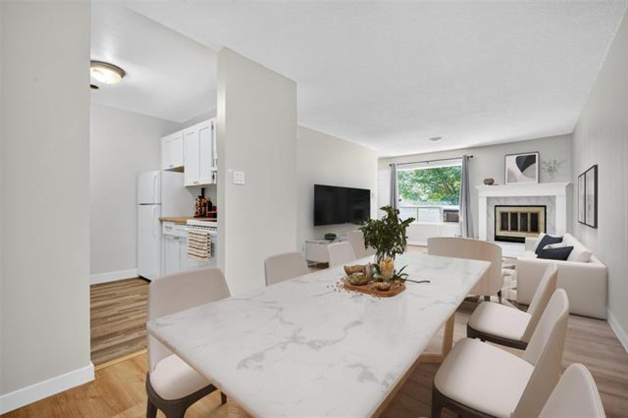Welcome to Paddington Place in a prime of River Park South location! This beautifully remodeled two-bedroom condo is packed with upgrades and ready for you to move in. Upgrades include brand-new laminate and vinyl flooring, complete with fresh flooring underlay for comfort and durability. This condo feels Fresh and bright with new lighting fixtures, fresh paint and a modern open-concept layout. The Living room features a stunning wood-burning fireplace, perfect for relaxing or entertaining. Just off the dining area, you'll find a functional kitchen with freshly painted cabinet doors, a brand-new dishwasher, a new hood fan, new vinyl flooring, and plenty of storage space. Both bedrooms are generously sized. Additional perks include in-suite laundry and a new AC unit. Enjoy the outdoors on your private balcony. Close to shopping, schools, and beautiful local parks. PET FRIENDLY!