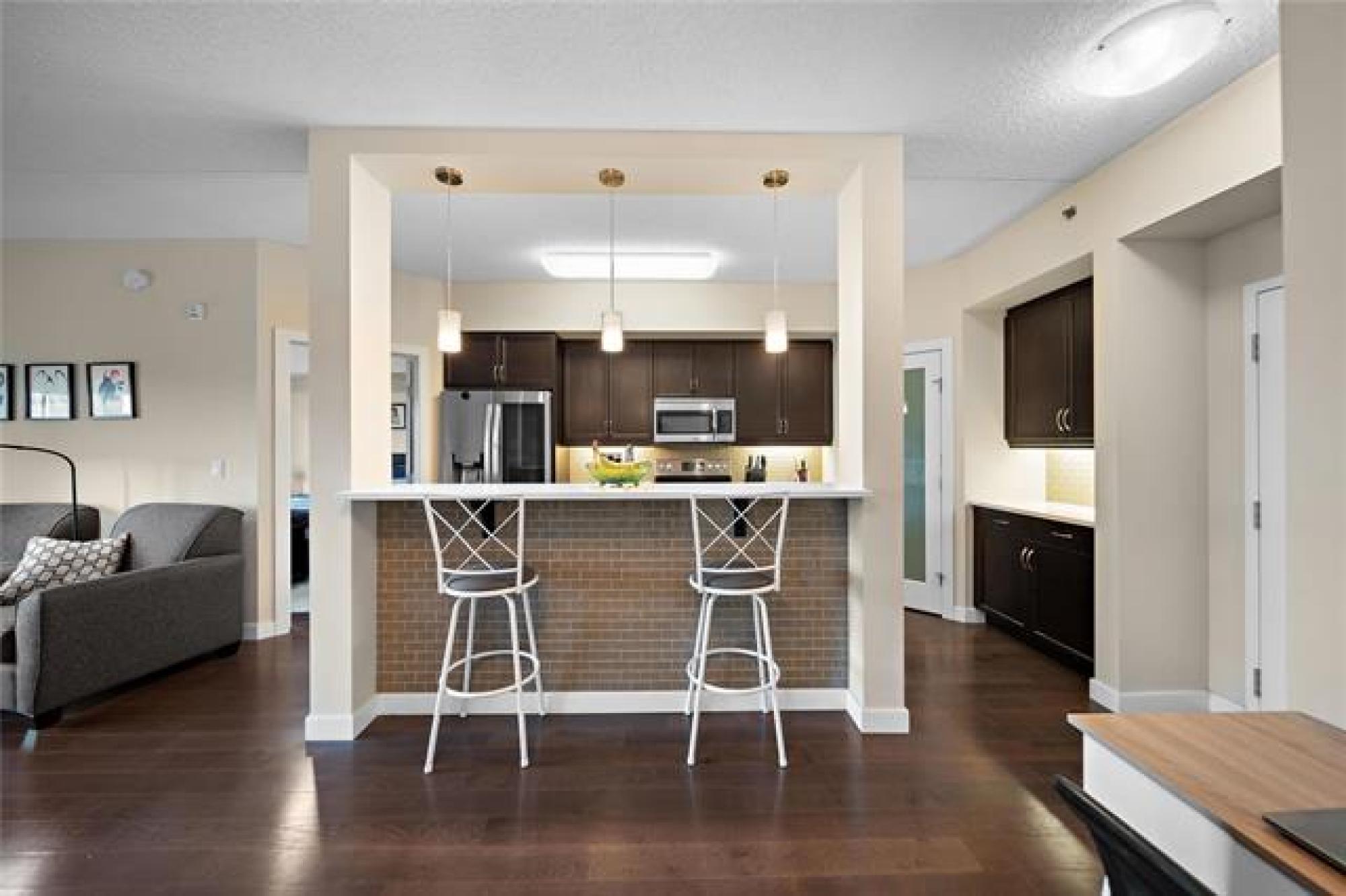 //Open House - Sunday, December 14th, 1:00 to 2:30 pm// Welcome to this well-kept 3rd-floor, 1,058 sq. ft. condo that offers 2 bedrooms, 2 bathrooms, and an open-concept layout filled with natural light. Enjoy hardwood flooring throughout, a modern kitchen with stained maple cabinetry, a large island, quartz countertops, stainless steel appliances, and under-cabinet lighting. Enjoy the bright living area with all-new windows or step out to your private balcony overlooking the Seine River. Both bedrooms are generously sized, each with a large walk-in closet. This unit includes an underground parking stall plus a large storage locker—the only one of its kind on the 3rd floor. Located in a quiet, concrete building, you’ll love the peaceful setting while being steps from walking trails along the Seine River and close to all amenities.