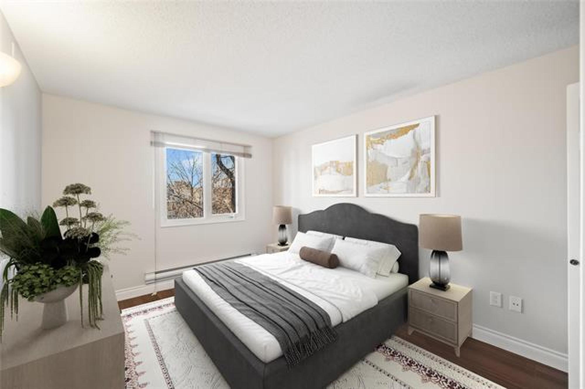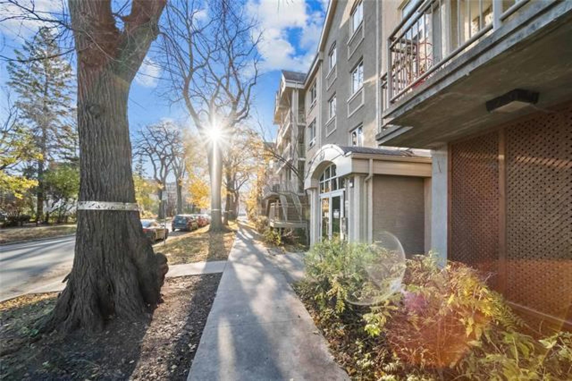 Showing start Wednesday Nov. 12, Offers Monday Nov. 17. Welcome to 99 Gerard Street - sought after condo complex in heart of Osborne Village! This stunning 1034 sq ft 2 bedroom, 2 bathroom condo is in move in condition with a flexible possession date! Featuring all the amenities you would want in a condo: quiet CONCRETE construction, HEATED parking, INSUITE laundry, central air conditioning, & balcony. Spacious layout with large windows for plenty of natural light. Modern kitchen with with granite counters, tile backsplash, and stainless steel appliance package. Plenty of counter space including butcher block countertop. Updated, modern laminate flooring. 2 generous size bedrooms. Primary bedroom has walk-in closet with custom built-ins and ensuite bathroom. Top floor unit with covered 11’x8’ balcony. Premium oversized parking stall close to the elevator in the heated ground level garage. Exceptional location in vibrant community close to grocery, transportation, shopping, restaurants and access to downtown. Pet friendly building. Professionally managed with healthy reserve fund. Move into your new condo prior to Christmas! Showings by appointment only!