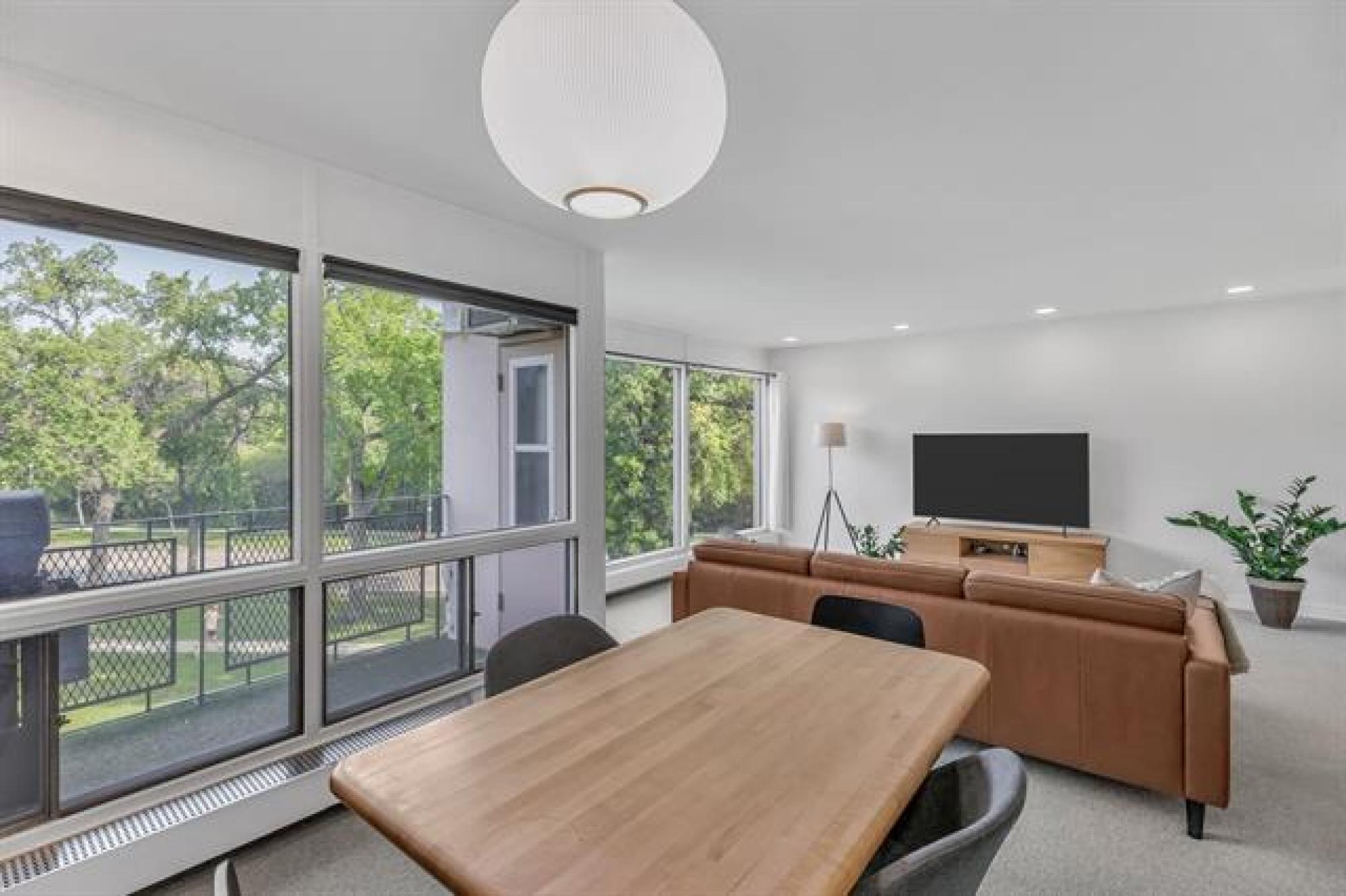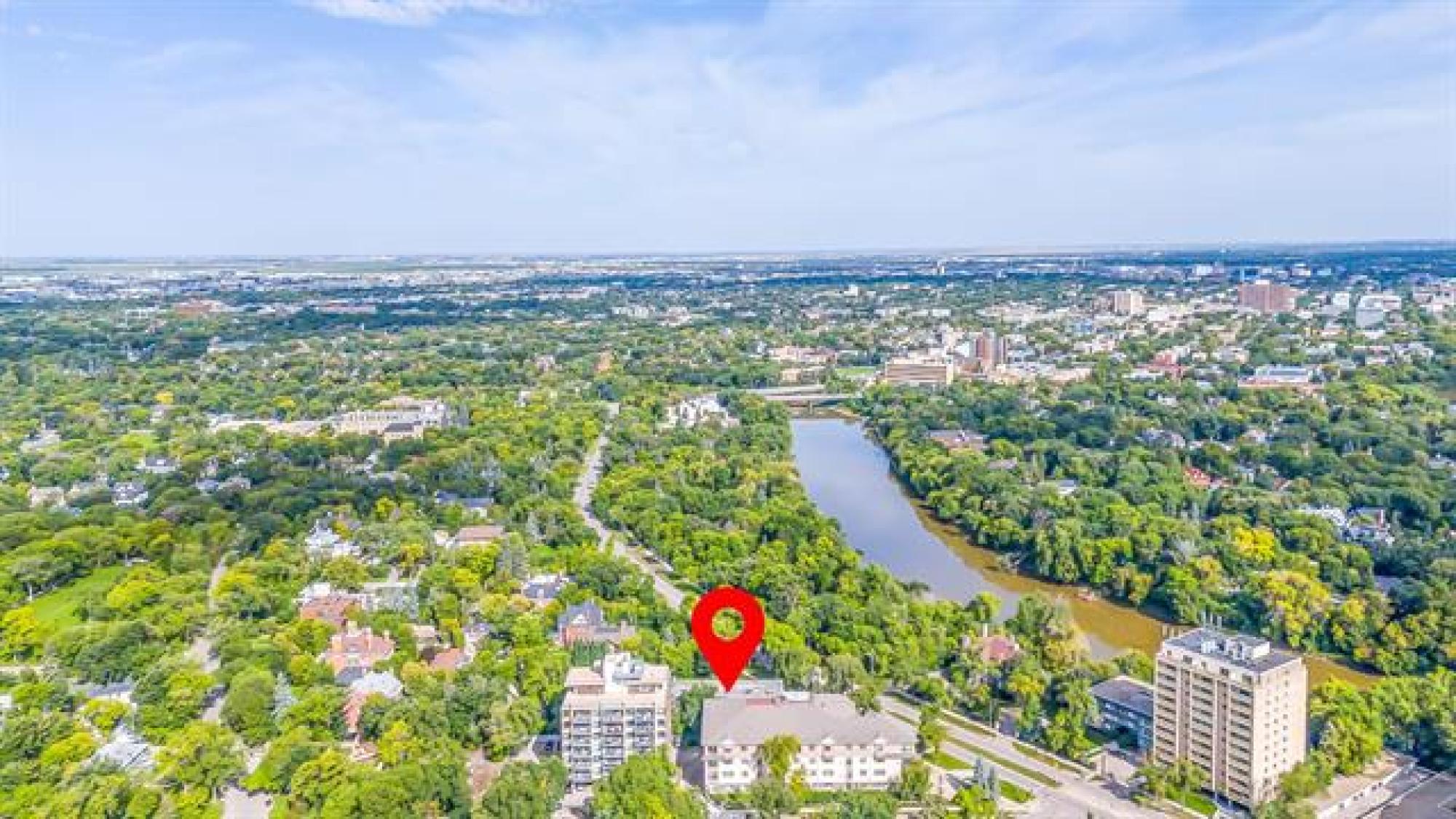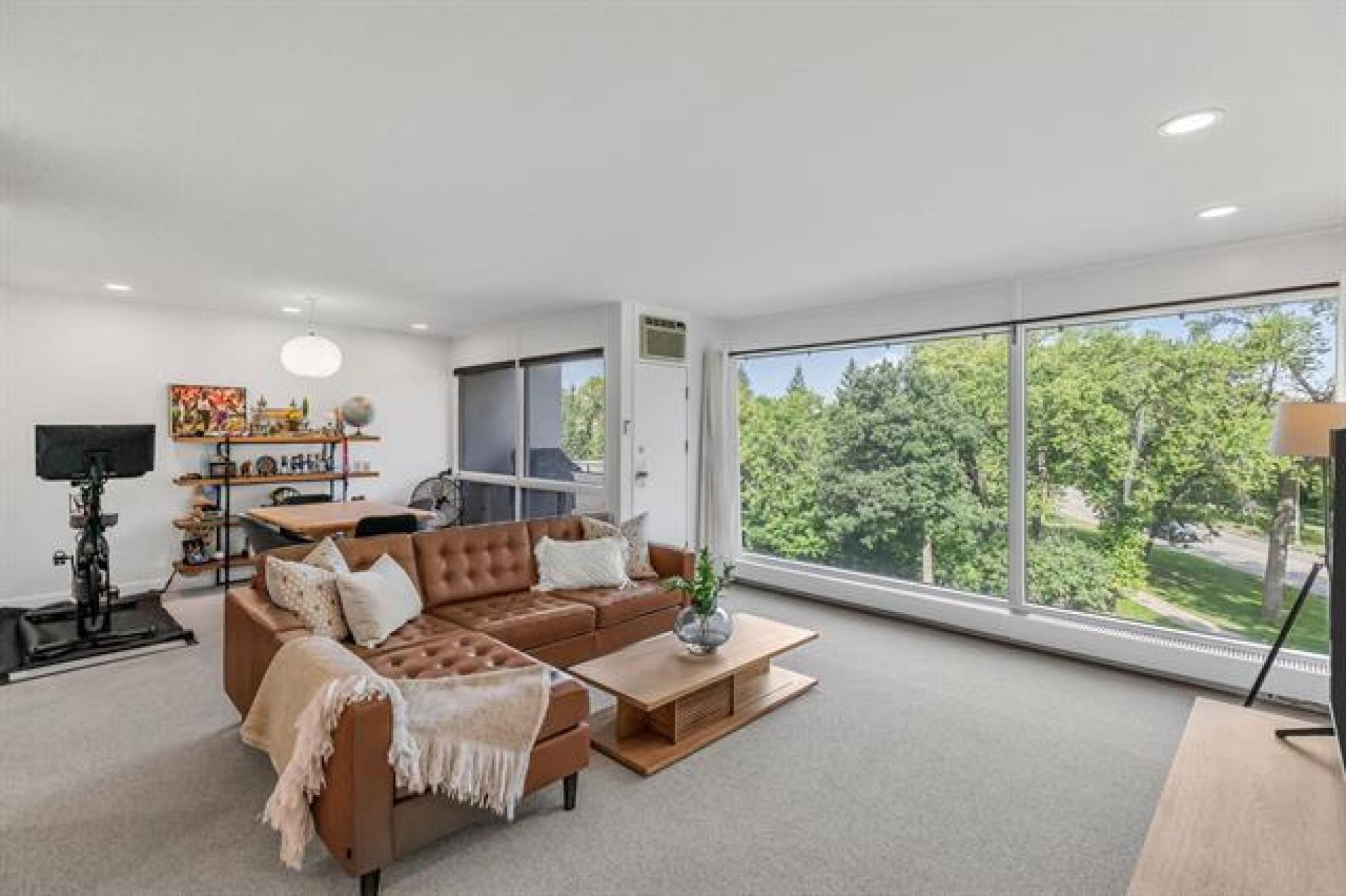 Experience the charm of this 950 sf condo, perfectly situated along the iconic Wellington Crescent with stunning views of Munson Park. Located in an award-winning mid-century building & recognized with a prestigious Silver Massey Medal for its architectural brilliance. The bright & spacious living and dining area features newer carpeting & floor-to-ceiling windows that flood the space w/natural light & stunning views. A cozy balcony offers the perfect spot to unwind with your morning coffee or an evening cocktail. The custom kitchen impresses with abundant cabinetry, pull-out shelves, ss appliances, under-mount lighting, and a sleek stainless backsplash—plus a convenient built-in desk w/upper cabinets for your home office needs. 2 comfortable bedrooms w/newer carpeting & an updated 4-piece bath complete the layout. Additional features include fresh paint, updated light fixtures, 2 wall A/C units, free shared laundry (in-suite laundry can be installed), main floor storage locker & an outdoor covered parking stall located in front of the entrance. This non-smoking building is just steps from Corydon & Grosvenor’s boutique shops, cafes & restaurants...an unbeatable location for urban living.