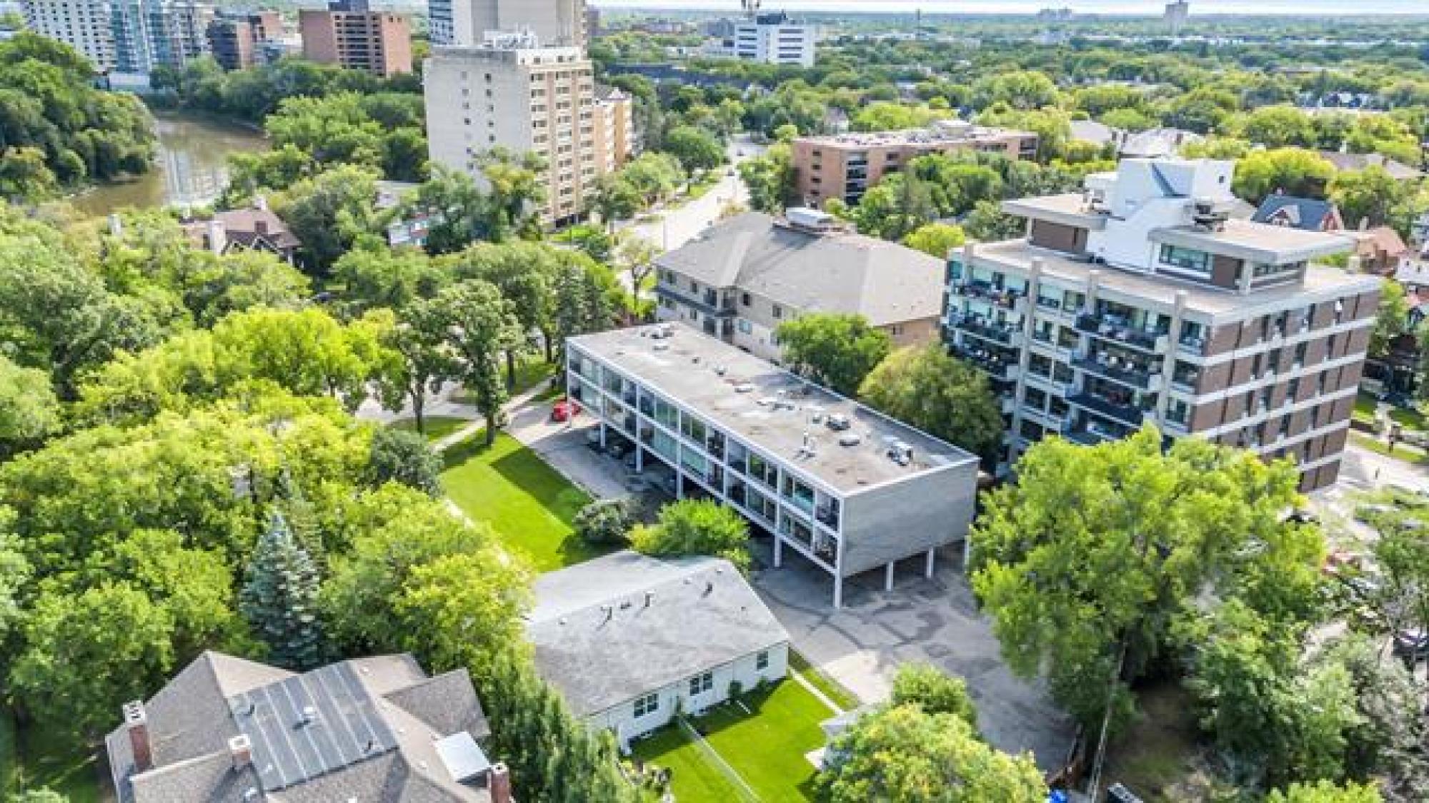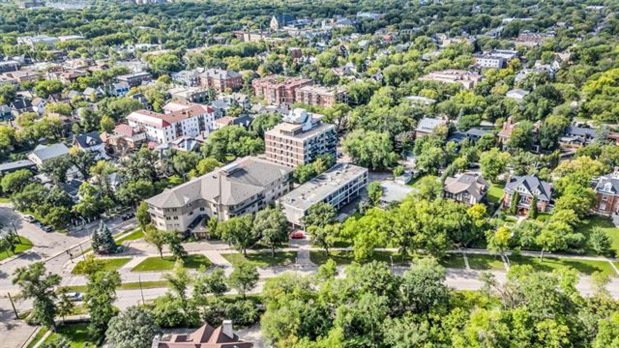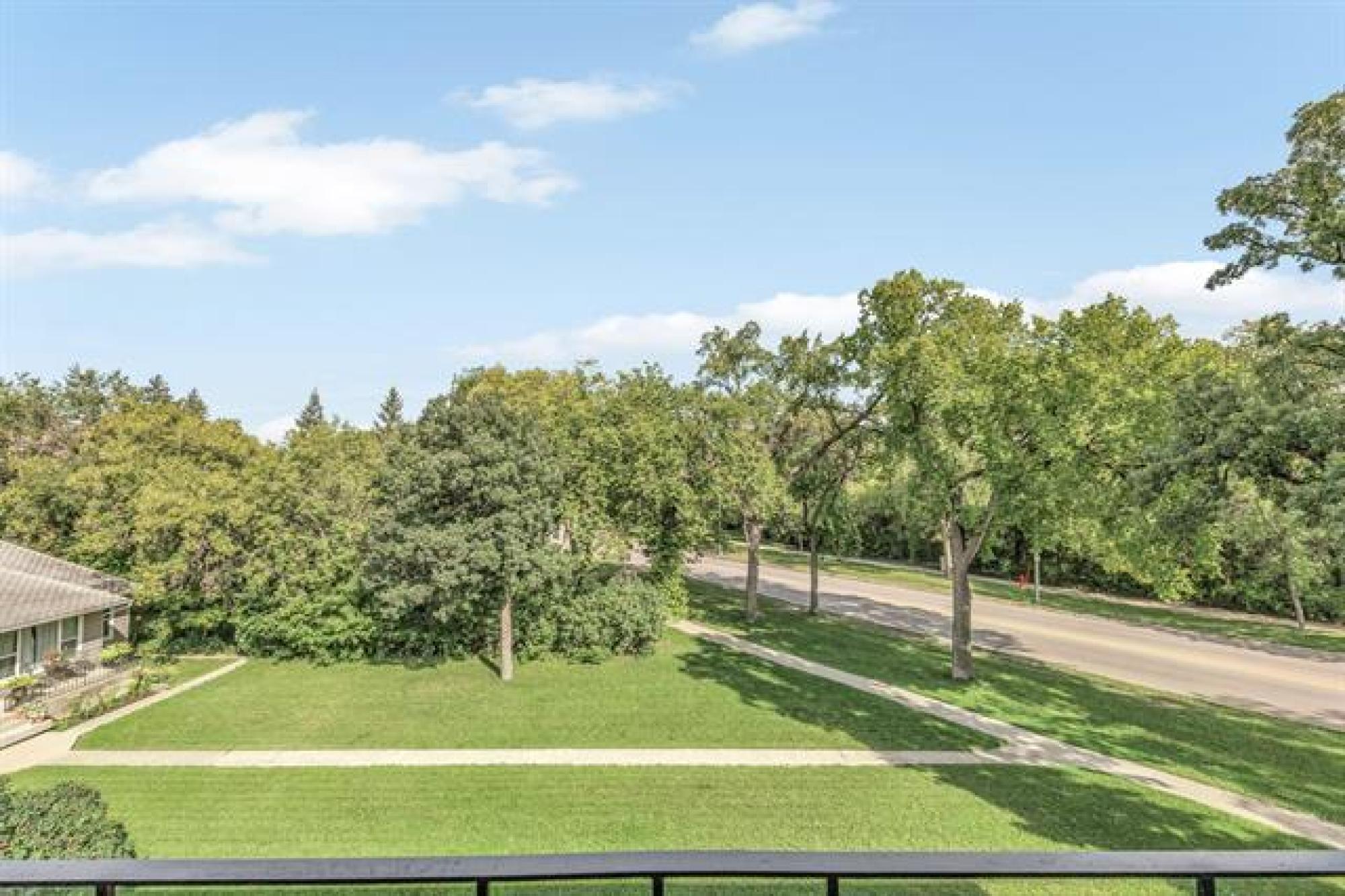 Experience the charm of this 950 sf condo, perfectly situated along the iconic Wellington Crescent with stunning views of Munson Park. Located in an award-winning mid-century building & recognized with a prestigious Silver Massey Medal for its architectural brilliance. The bright & spacious living and dining area features newer carpeting & floor-to-ceiling windows that flood the space w/natural light & stunning views. A cozy balcony offers the perfect spot to unwind with your morning coffee or an evening cocktail. The custom kitchen impresses with abundant cabinetry, pull-out shelves, ss appliances, under-mount lighting, and a sleek stainless backsplash—plus a convenient built-in desk w/upper cabinets for your home office needs. 2 comfortable bedrooms w/newer carpeting & an updated 4-piece bath complete the layout. Additional features include fresh paint, updated light fixtures, 2 wall A/C units, free shared laundry (in-suite laundry can be installed), main floor storage locker & an outdoor covered parking stall located in front of the entrance. This non-smoking building is just steps from Corydon & Grosvenor’s boutique shops, cafes & restaurants...an unbeatable location for urban living.