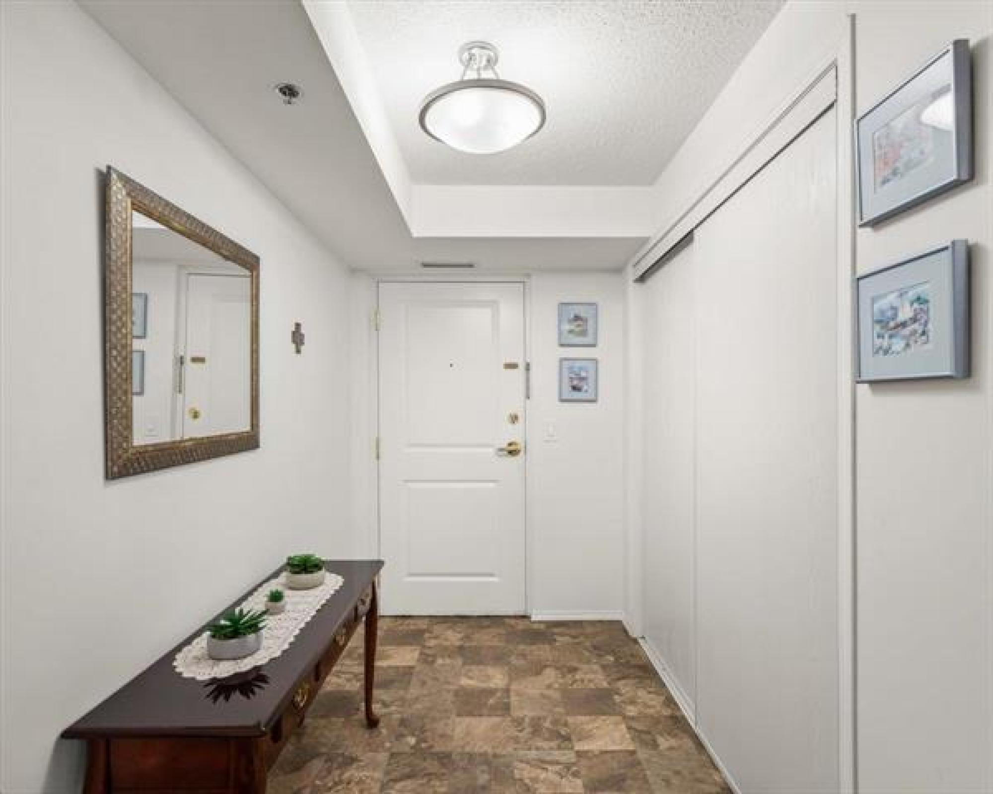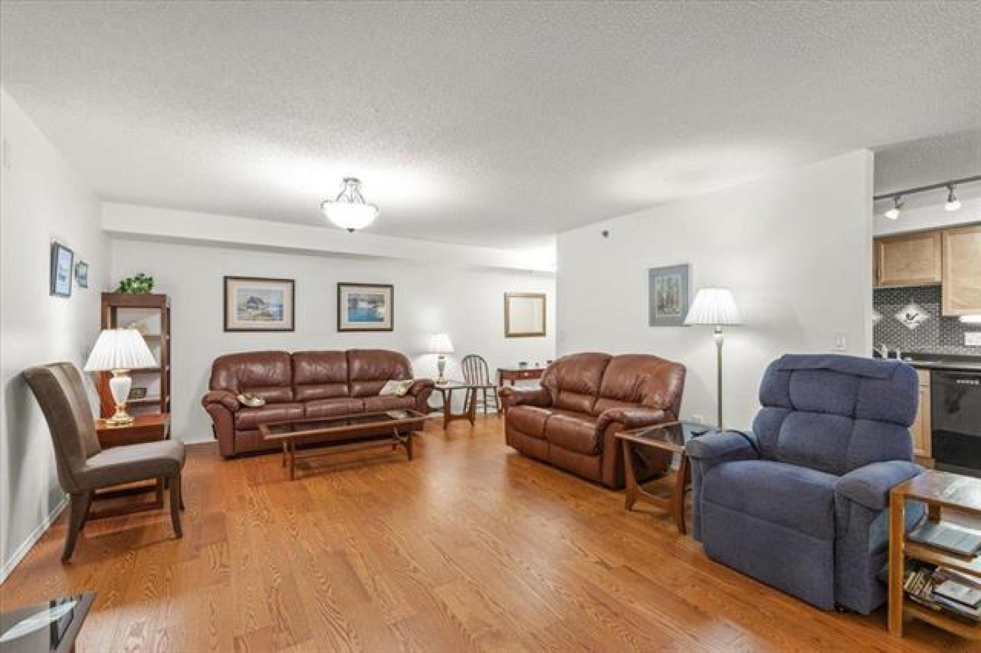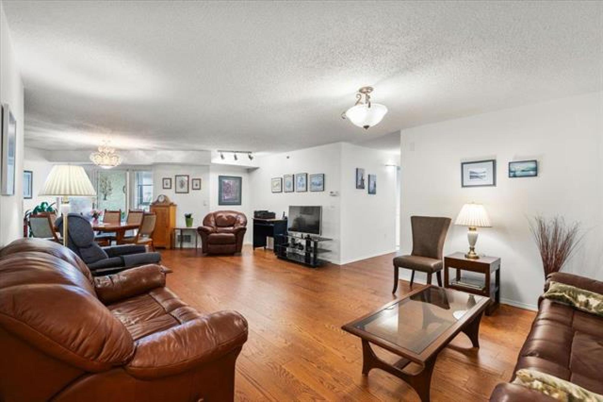 Welcome to this beautifully updated 2-bedroom, 2-bathroom condo in a highly sought-after location. From the moment you enter, you’ll love the open-concept layout with newer hardwood floors; featuring a spacious living room, dining area, and large kitchen with all appliances included. Relax in the sunroom area on your west-facing enclosed balcony and enjoy the evening light. The primary bedroom offers a 3-piece ensuite and an impressive 8-foot walk-in closet, while the second bedroom is perfect for guests or a home office. Additional highlights include in-suite laundry, abundant storage, and your own garage with extra parking and storage space. This pet-friendly condo is move-in ready—don’t miss it!