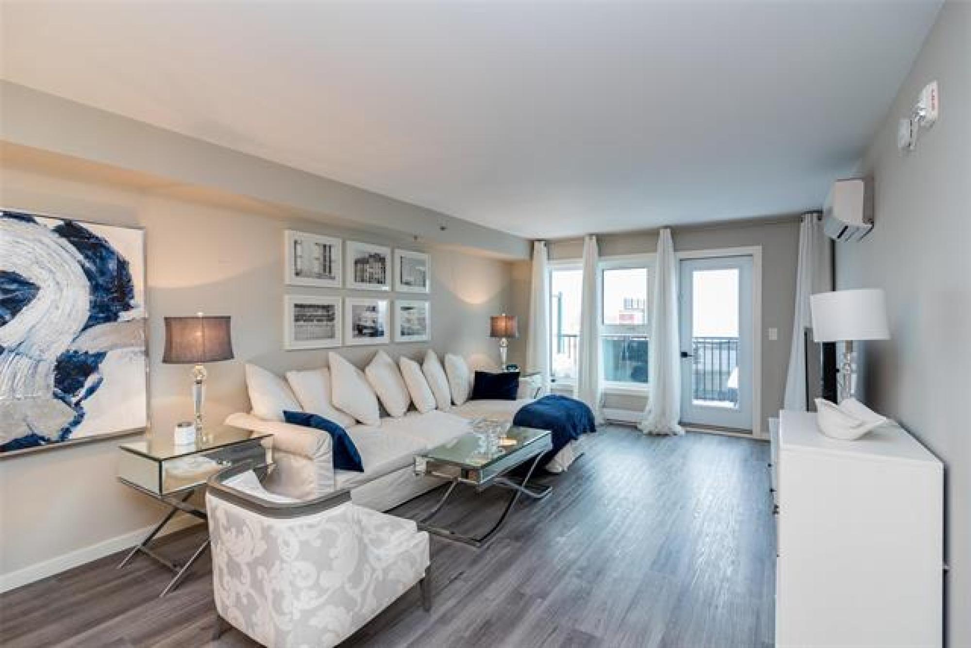 **OPEN HOUSE Sunday Jan 11th 1 - 3 PM**offers considered January 14. This is a fabulous 2 BR condo located on the quiet top floor. The main open concept flexible great room space has garden door to a balcony. The kitchen offers light quartz counter tops lots of cabinetry and four quality stainless steel appliances. There is in suite laundry. There is one underground parking space .The building offers a common area plus a gym. This is very desirable condo community close to many amenities: shopping, transportation, restaurants and community centre.