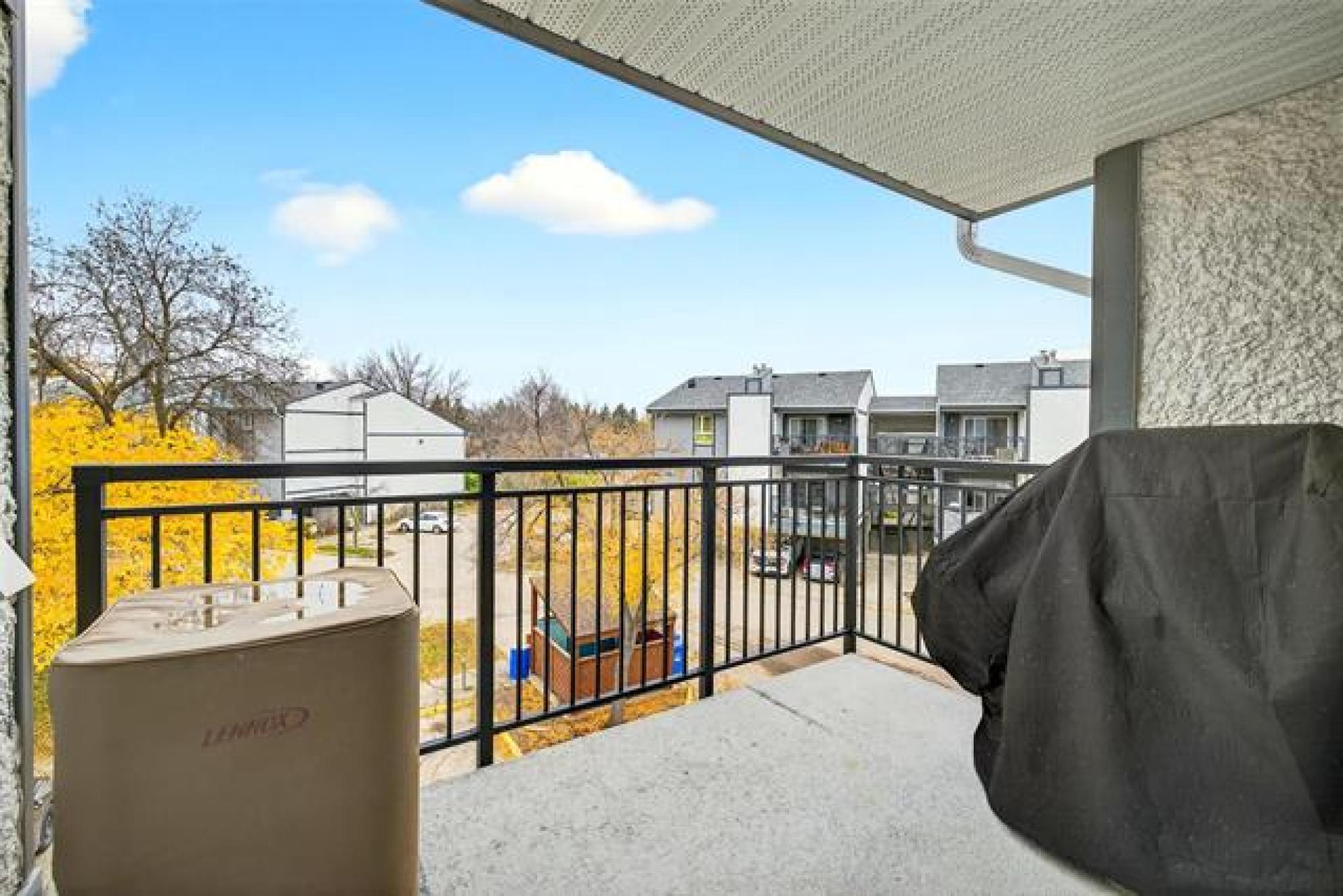 Enjoy the ease and elegance of condo living in the heart of Tuxedo - a premier neighborhood where convenience and comfort meet. This bright and airy 2BR, 1Bth home is thoughtfully designed with open-concept living in mind. The kitchen seamlessly connects to the dining space and a welcoming living room featuring a cozy wood burning fireplace perfect for relaxing evenings. Step out onto your private balcony and take in the fresh air with your morning coffee or unwind after a long day. Located on the top floor, the high vaulted ceilings make the space seem even more spacious then it is. Huge Bonus - 2 Parking Spots; one covered corner spot and one outdoor spot make this truly special! Building amenities will elevate your lifestyle! Enjoy a refreshing swim in the private pool and spend a quiet afternoon in the picnic area. Steps away from Assiniboine Park, Tuxedo Golf Course, IKEA, and Outlet Collection Winnipeg, you’ll find shopping, dining, recreation, and greenspace all within easy reach. Whether you’re downsizing, investing, or simply looking for an effortless lifestyle in a prestigious neighborhood, this condo offers it all! (some photos virtually staged).