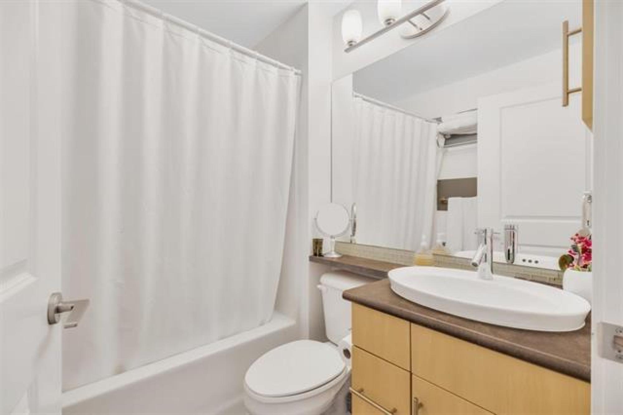 Sleek, stylish, and steps from everything, this 2 bed, 1 bath condo in Sky Waterfront is downtown living at its best. Whether you're a busy professional, a couple on the go, or someone who just wants to soak up city life, this PET-FRIENDLY, 4th floor, 809 sqft unit has you covered with a bright open-concept layout, in-suite laundry and storage, and your own private balcony with city views. The modern kitchen features stainless steel appliances (incl dishwasher & built-in microwave), plenty of cabinet & counter space, and flows seamlessly into the dining and living areas, complete with a built-in entertainment unit & patio door out to your private balcony. The spacious bedroom offers great closet space, and bonus den/office with an extra closet is perfect for work-from-home days or extra storage. The building itself comes packed with perks: fitness room, resident lounge, elevator, courtyard, and rooftop patio overlooking the river, The Forks and Human Rights Museum. 1 parking stall included. With top restaurants, shops, green spaces and entertainment just a short walk away, this is the low-maintenance lifestyle upgrade you've been waiting for.