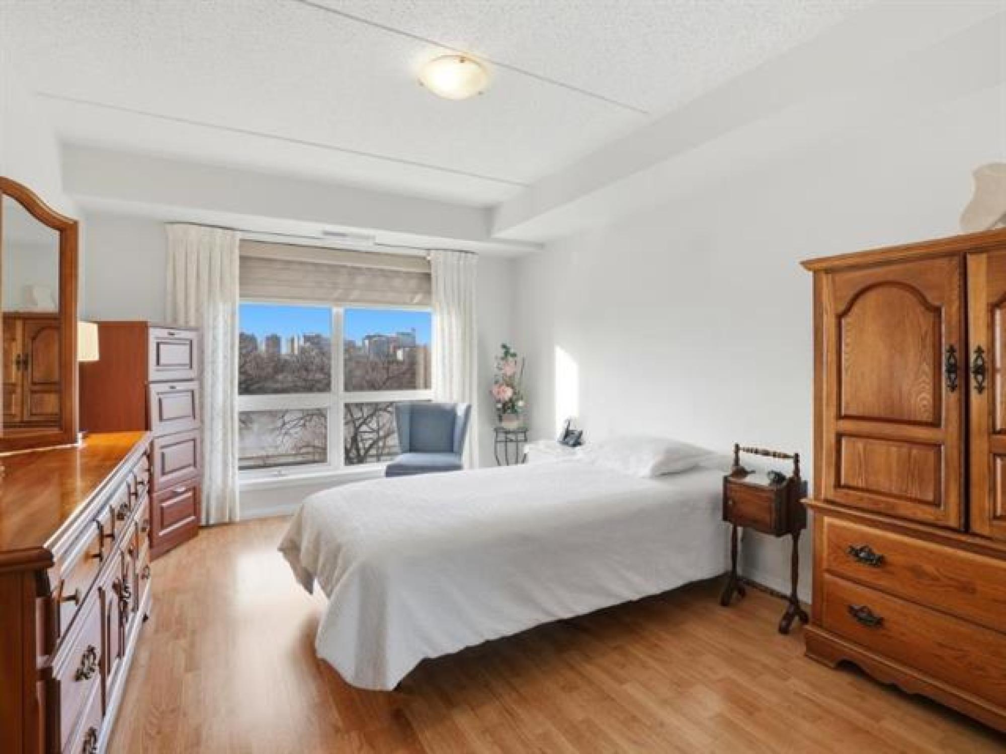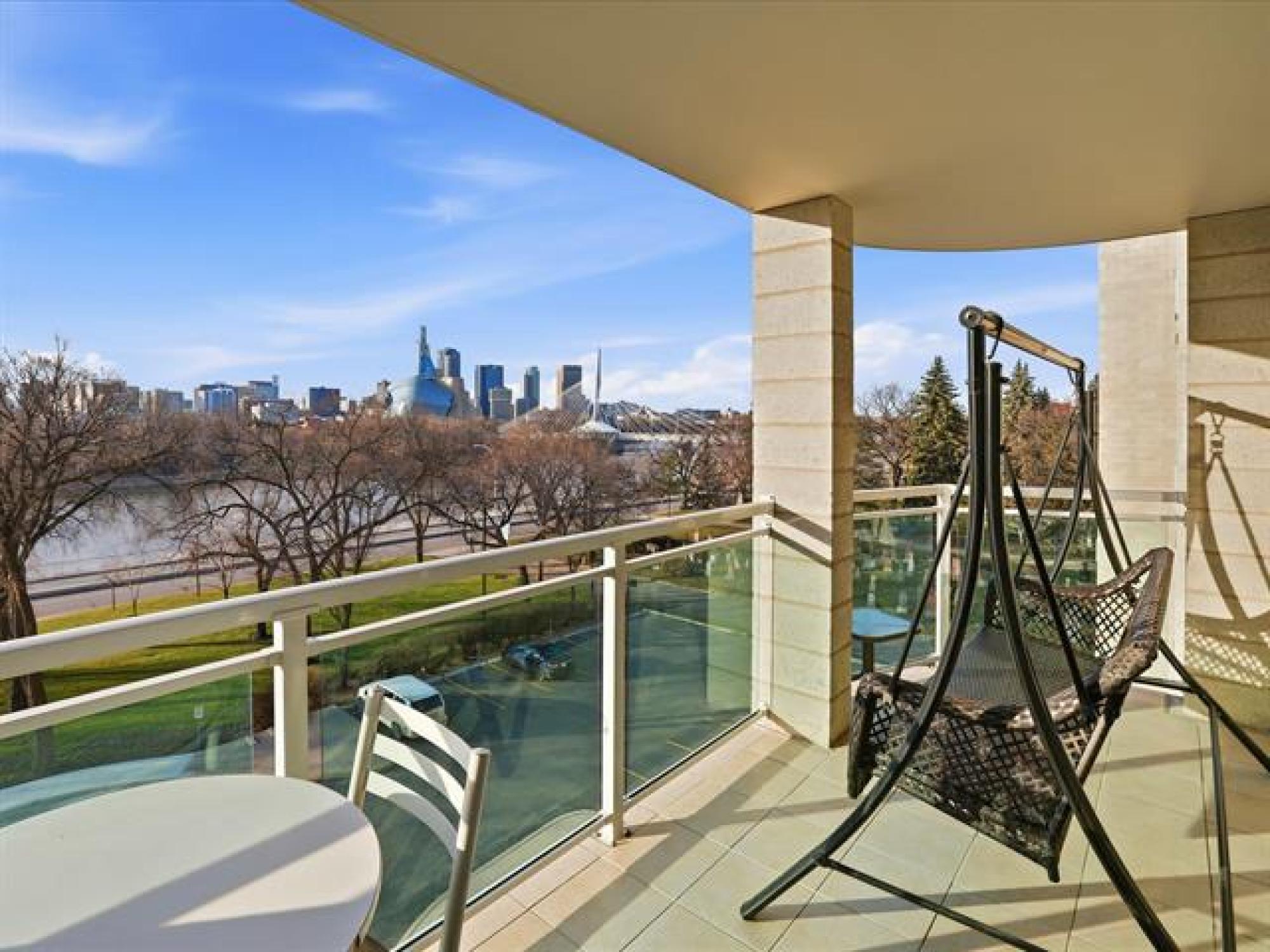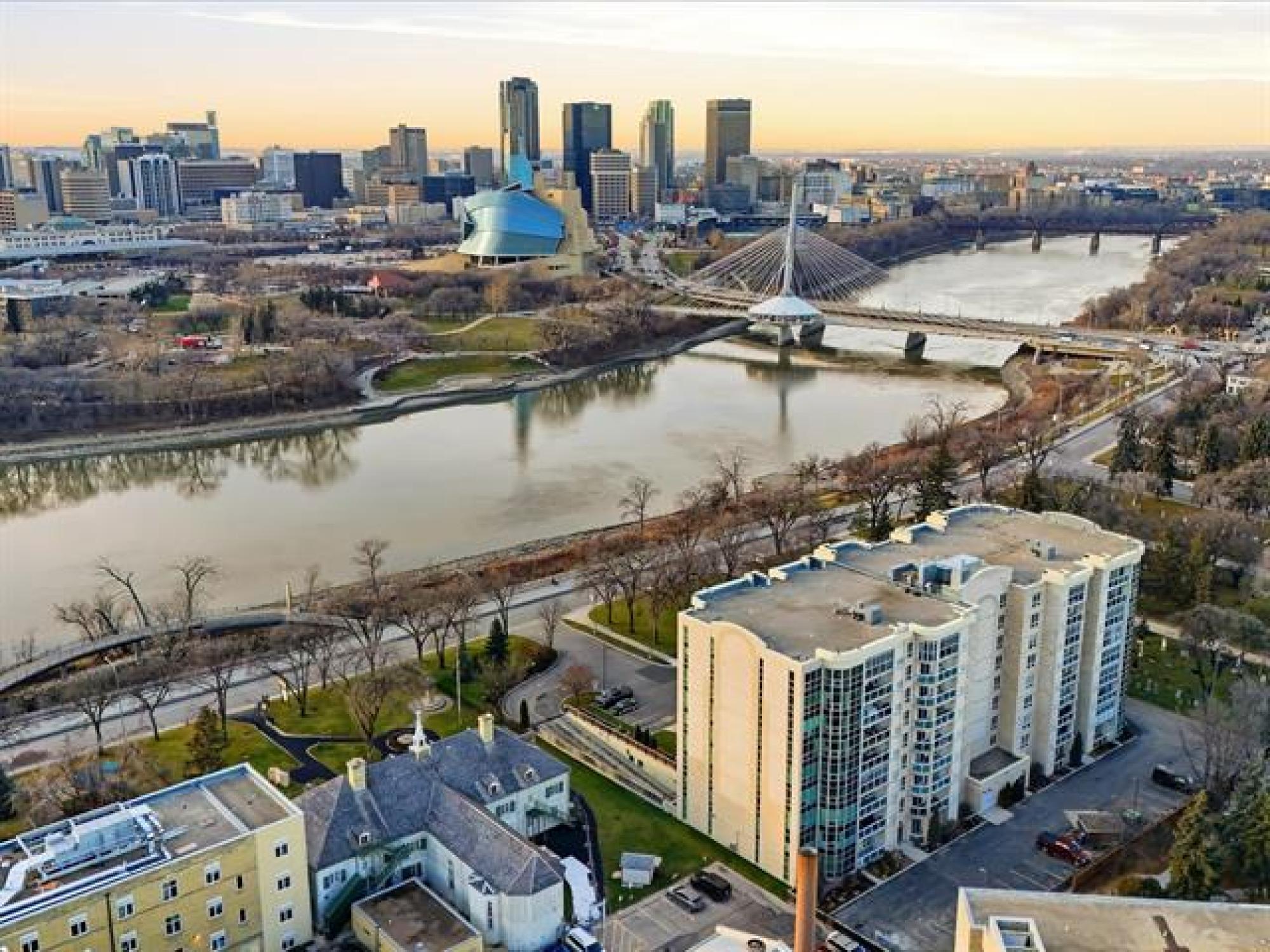 Offers to be reviewed within 24hrs of receipt. Experience refined condo living in the heart of St. Boniface with this truly special 2-bedroom, 1-bathroom home. Perfectly positioned to capture rare, immaculate city and river views, this suite sits within one of Winnipeg’s most prestigious buildings known for its exceptional construction and quiet atmosphere. The thoughtful floor plan features a bright and open living space including a well-appointed kitchen with ample prep space and storage which opens into a dining room, spacious living room, and a designated office space. The condo features two bedrooms designed for comfort and ease of living, in-suite laundry for convenience and a large 4-piece bathroom. Built with concrete and steel, the residence offers outstanding sound insulation, ensuring peace and privacy. Enjoy secure, heated underground parking and the peace of mind that comes with a highly maintained, safe building community. Set in a prime St. Boniface location, you’re just steps from cafés, restaurants, St. Boniface hospital, The Forks, and scenic walking paths. This is a rare opportunity to own a piece of the city skyline where comfort, security, and lifestyle come together seamlessly.