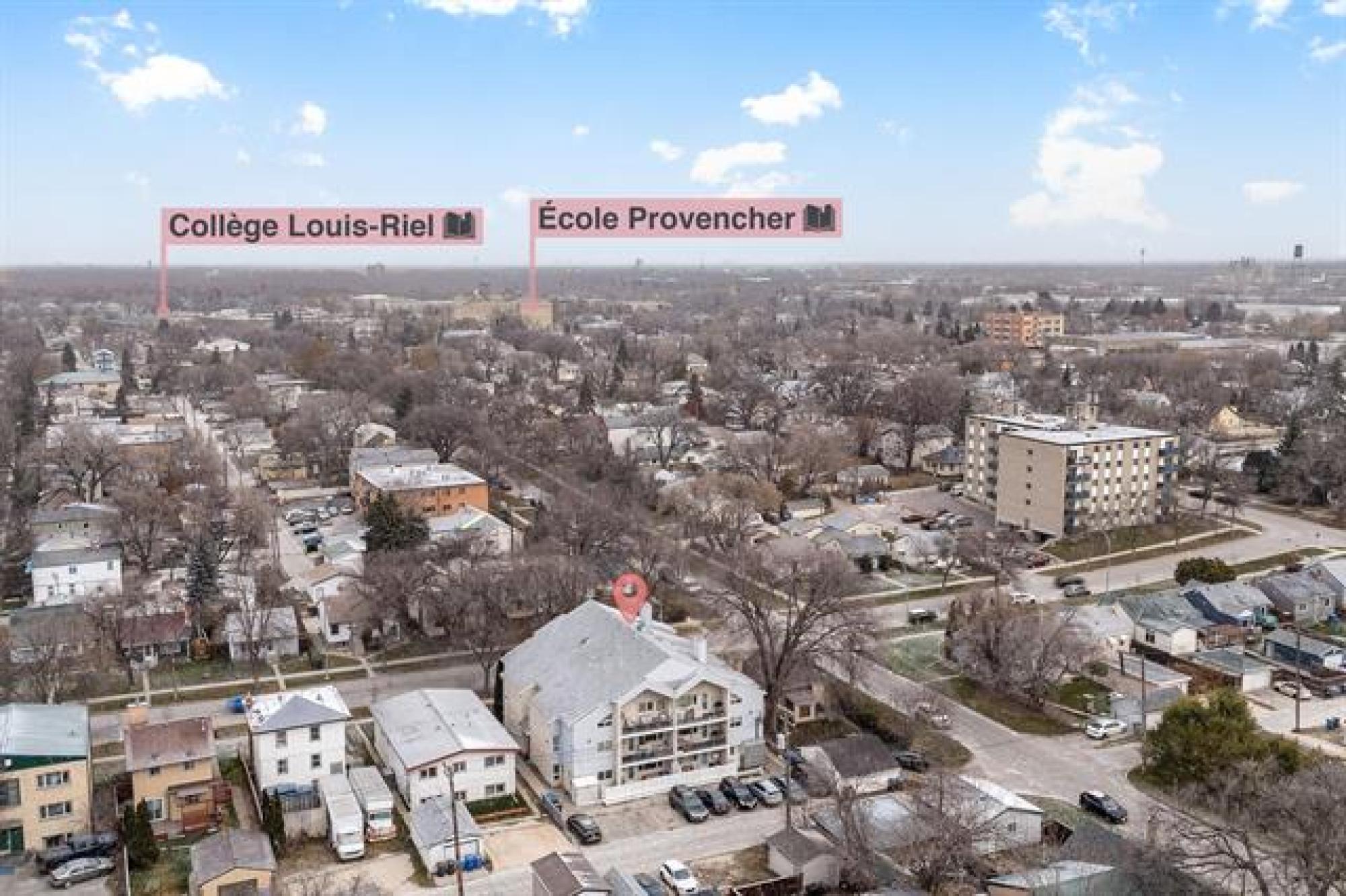 Welcome to this warm and inviting condo in the heart of St. Boniface. The kitchen features classic white cabinets, granite counters, a tiled backsplash, and vinyl tile flooring, and it opens onto a spacious yet cozy living and dining area. You’ll find two comfortable bedrooms, including a large primary with an impressive closet. The suite offers a 4-piece bathroom with convenient in-suite stacking laundry tucked away, plus an additional 2-piece bath and a generous storage closet. Enjoy the large balcony, an ideal spot for morning coffee, quiet moments, or entertaining guests. Just steps from the Université de Saint-Boniface, local schools, St. Boniface Hospital, The Forks, and Downtown.