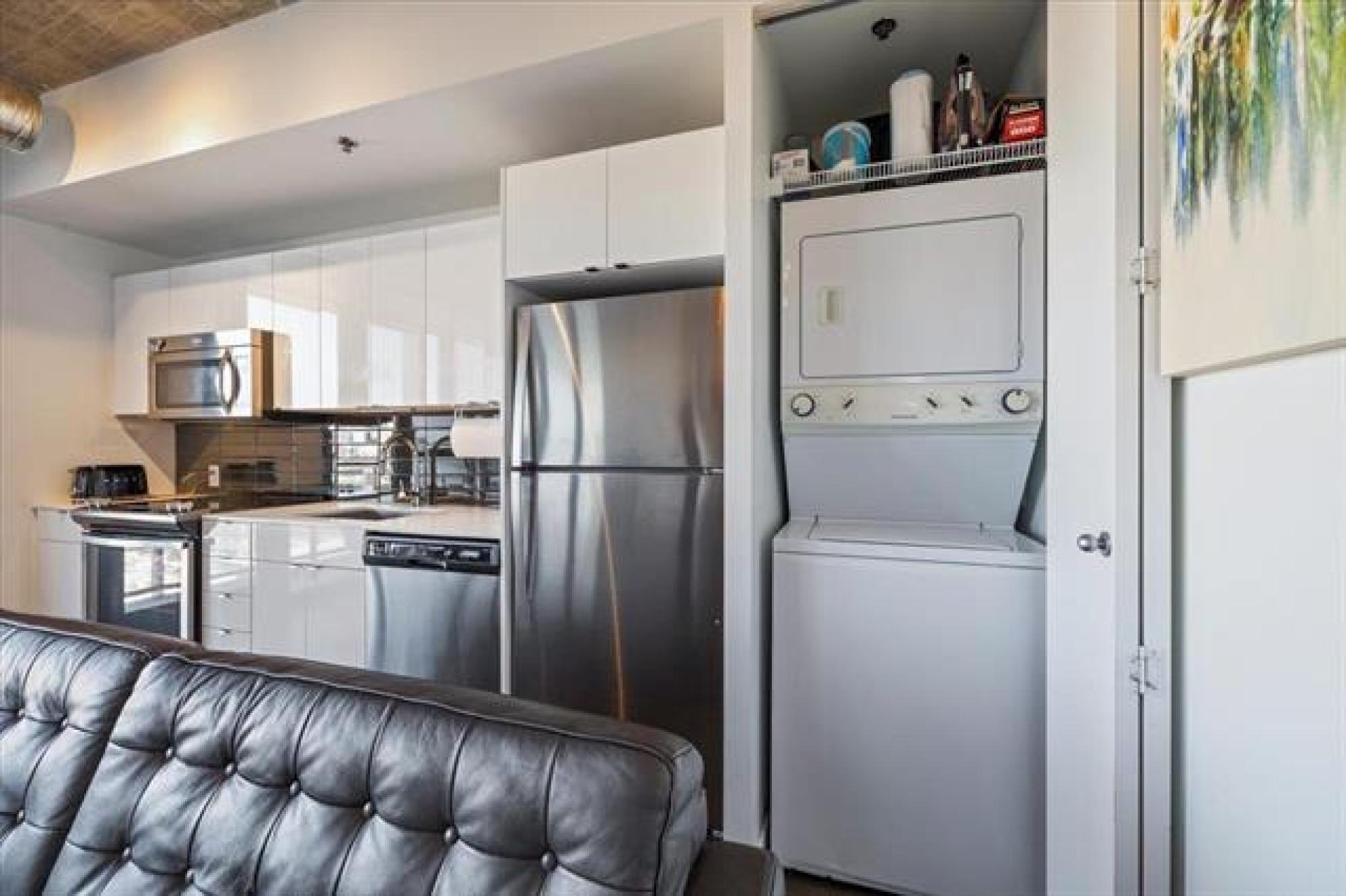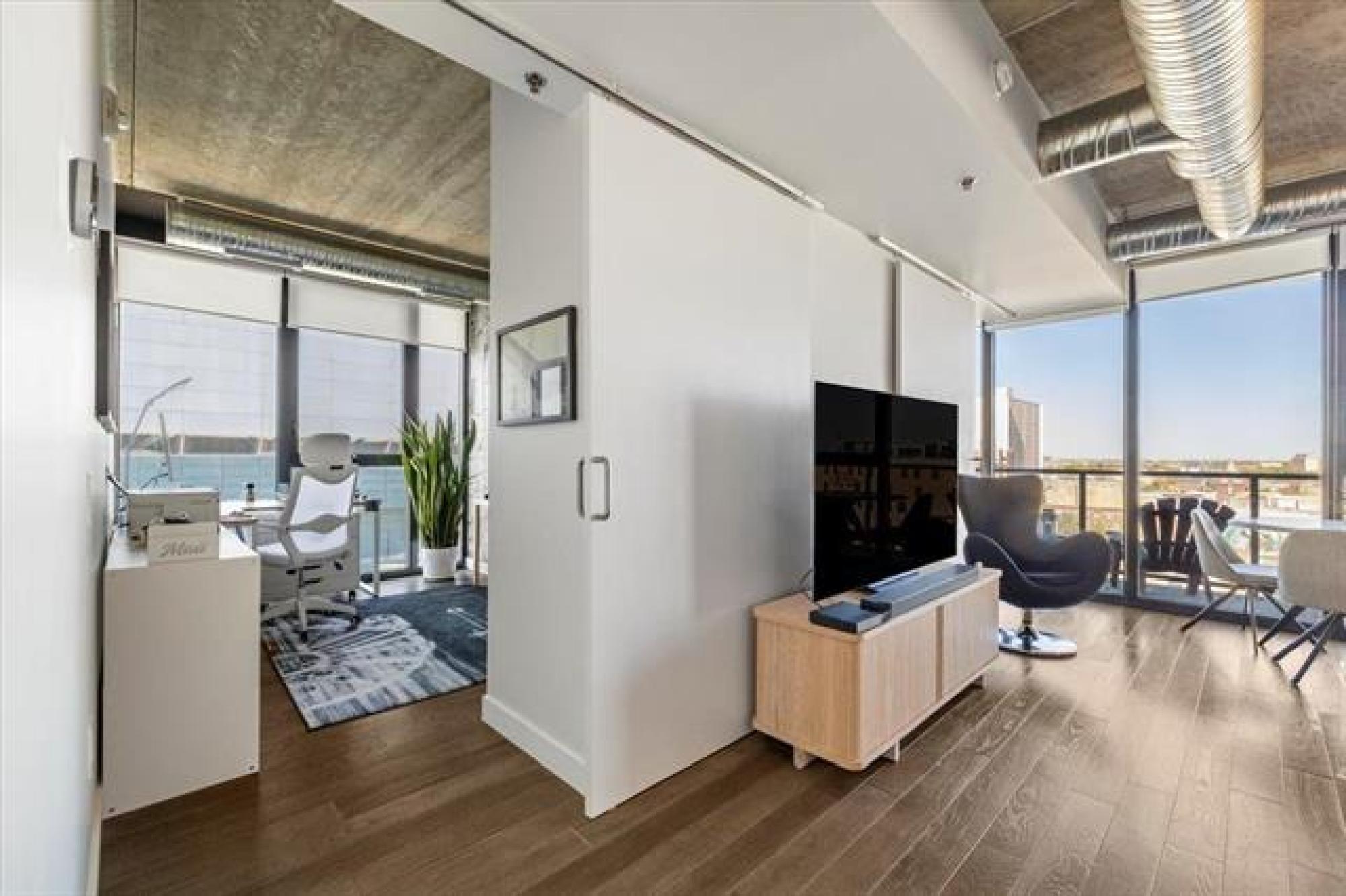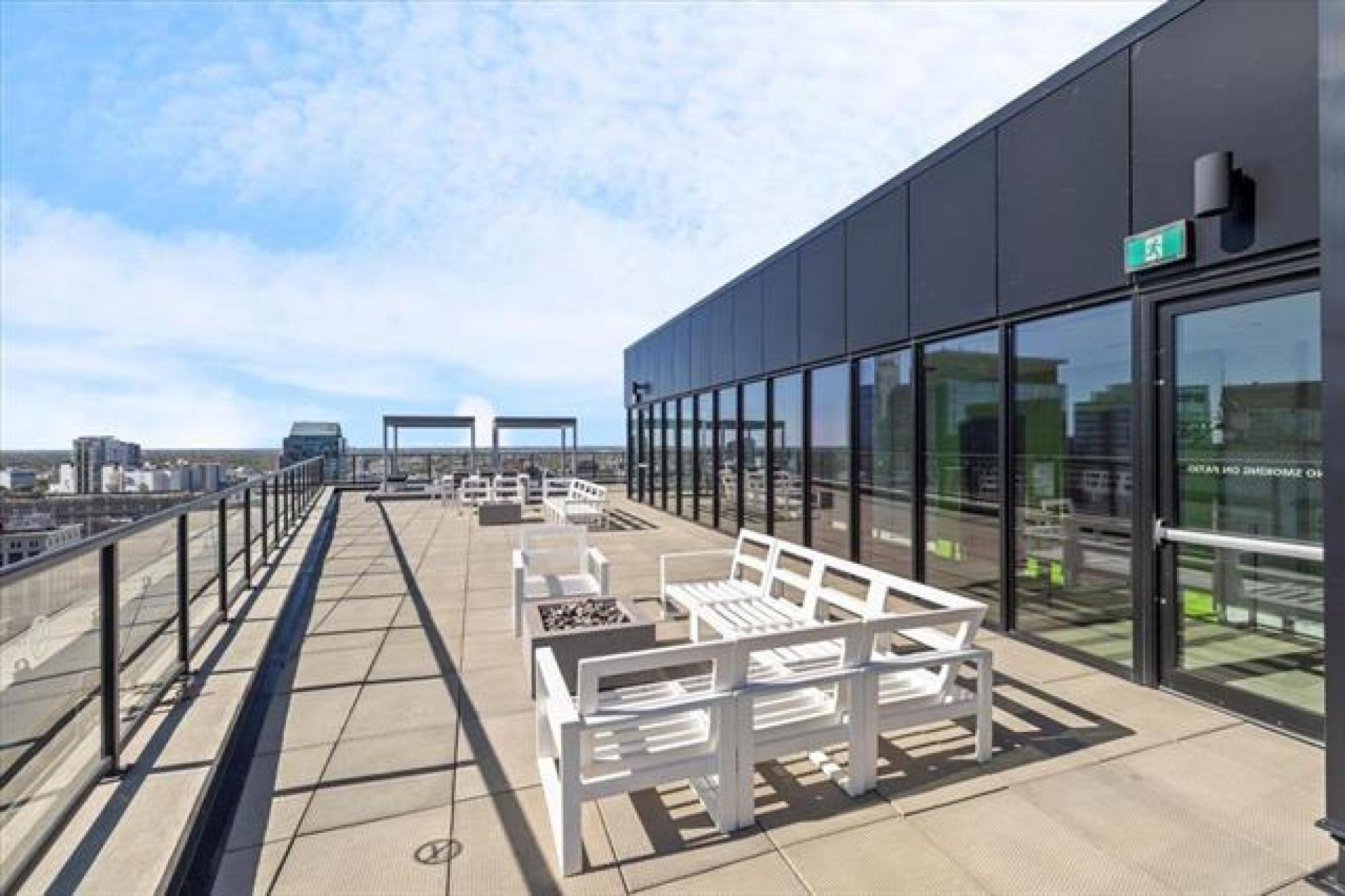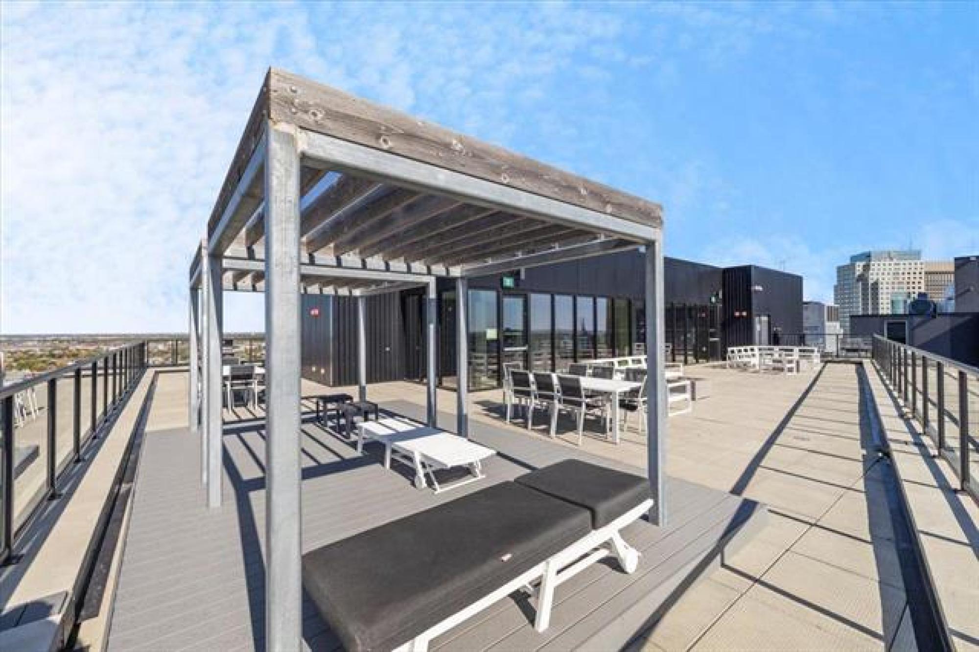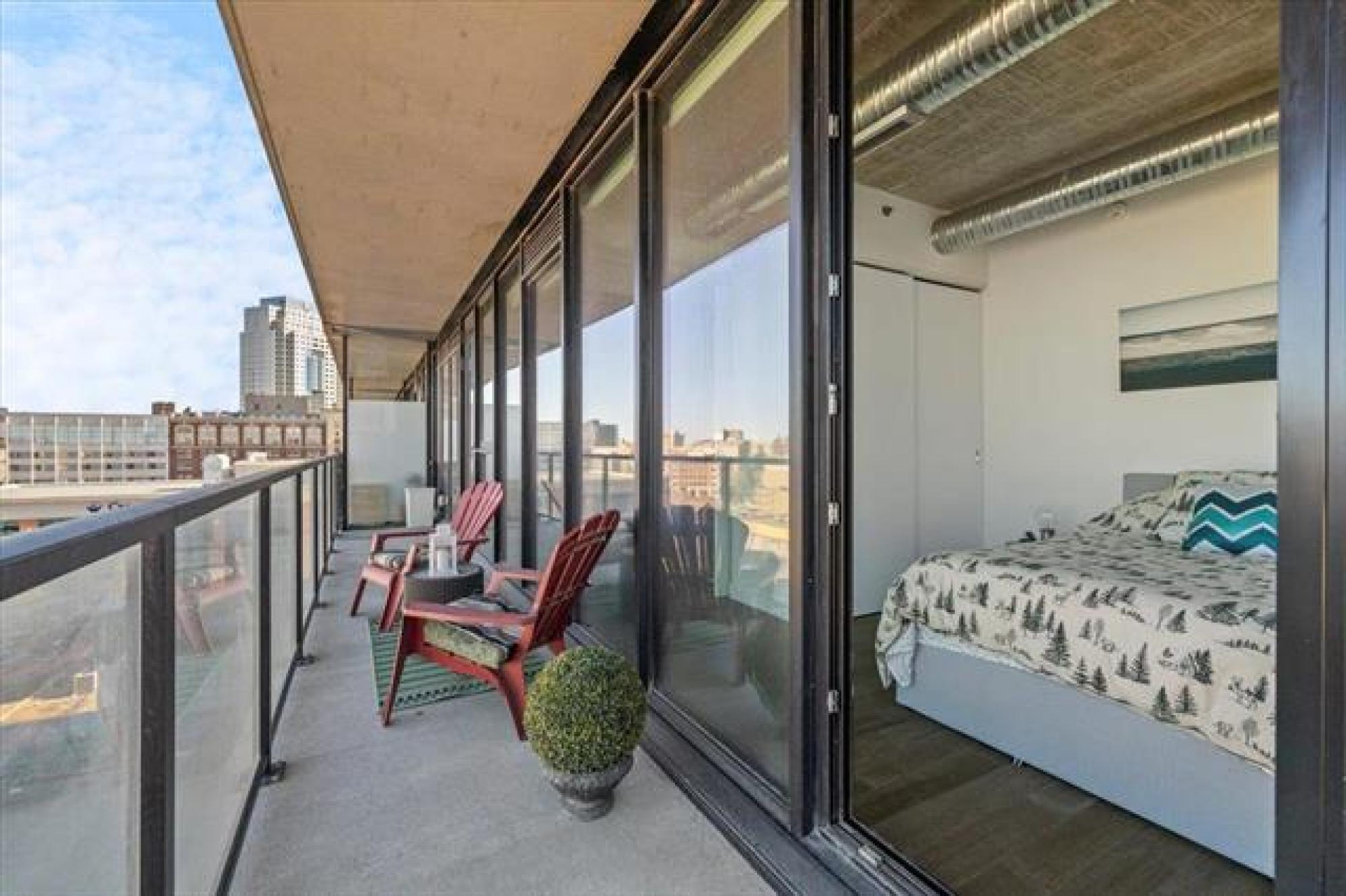 Experience downtown living in the prestigious "Glass House" with gated parking. This stunning 9th-floor corner unit features exposed concrete and steel beams, floor-to-ceiling windows, and custom blinds for privacy. Wake up to panoramic city views that create the perfect backdrop for entertaining. Striking barn doors open to two well-proportioned bedrooms, while the gourmet kitchen impresses with high-gloss cabinets, quartz countertops, stylish backsplash, and full stainless steel appliance package. Your private 144 sq ft covered balcony offers fresh air and city views, or head to the spectacular 21st-floor rooftop terrace with BBQ facilities, fire lounge, and breathtaking wraparound views. The enclosed rooftop lounge provides year-round entertaining space. Premium amenities include a 24-hour fitness center and private theater. Canada Life Centre, True North Square, and Winnipeg's finest dining and nightlife are just steps away. Available furnished or unfurnished—perfect for busy professionals. This is your gateway to Winnipeg's most sophisticated urban lifestyle.