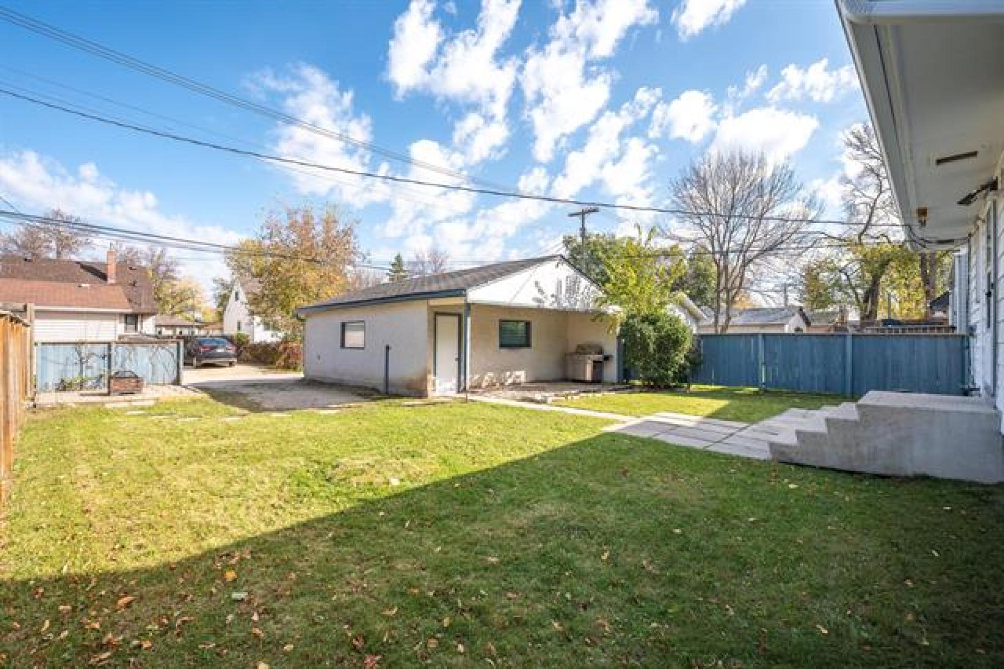 Offers Mon Oct 20. Incredible opportunity in the wonderful safe neighbourhood of Rossmere East Kildonan. This super solid home features 1,016 sqft with 3 bedrooms, 1.5 bathrooms, fully finished basement, massive backyard with double garage + parking pad. The main floor features a large living room with beautiful hardwood floors, a well laid out kitchen with updated appliances & large pantry with tons of space for a dining table. There's one bedroom on the main floor & a large full bathroom with updated tub + shower. Upstairs features two large bedrooms big enough for king sized beds with tons of closet space & hardwood floors. The finished basement provides loads of extra living space with a big rec room, wet bar, updated bathroom, laundry/mechanical room with updated appliances, laundry sink, & H/E furnace. The backyard is massive providing tons of space for activities + fire pit area. The double garage provides loads of extra storage space + an overhang area perfect for covered seating + BBQ. Super energy efficient home with updated insulation. Walking distance to all levels of schools & only 7 minutes to downtown! Updates: Shingles'24, Eaves'24, Garage door'20, H/E furnace + AC'14, PVC windows'08.