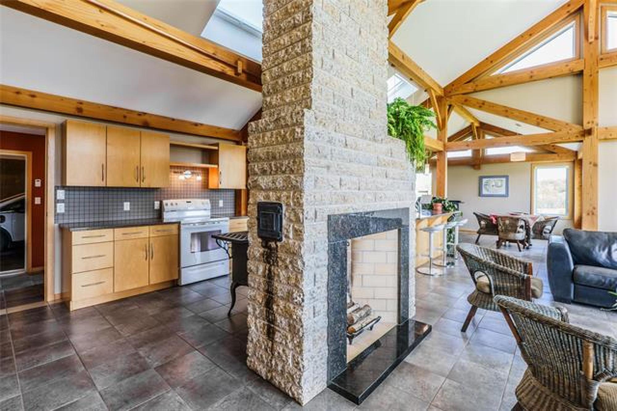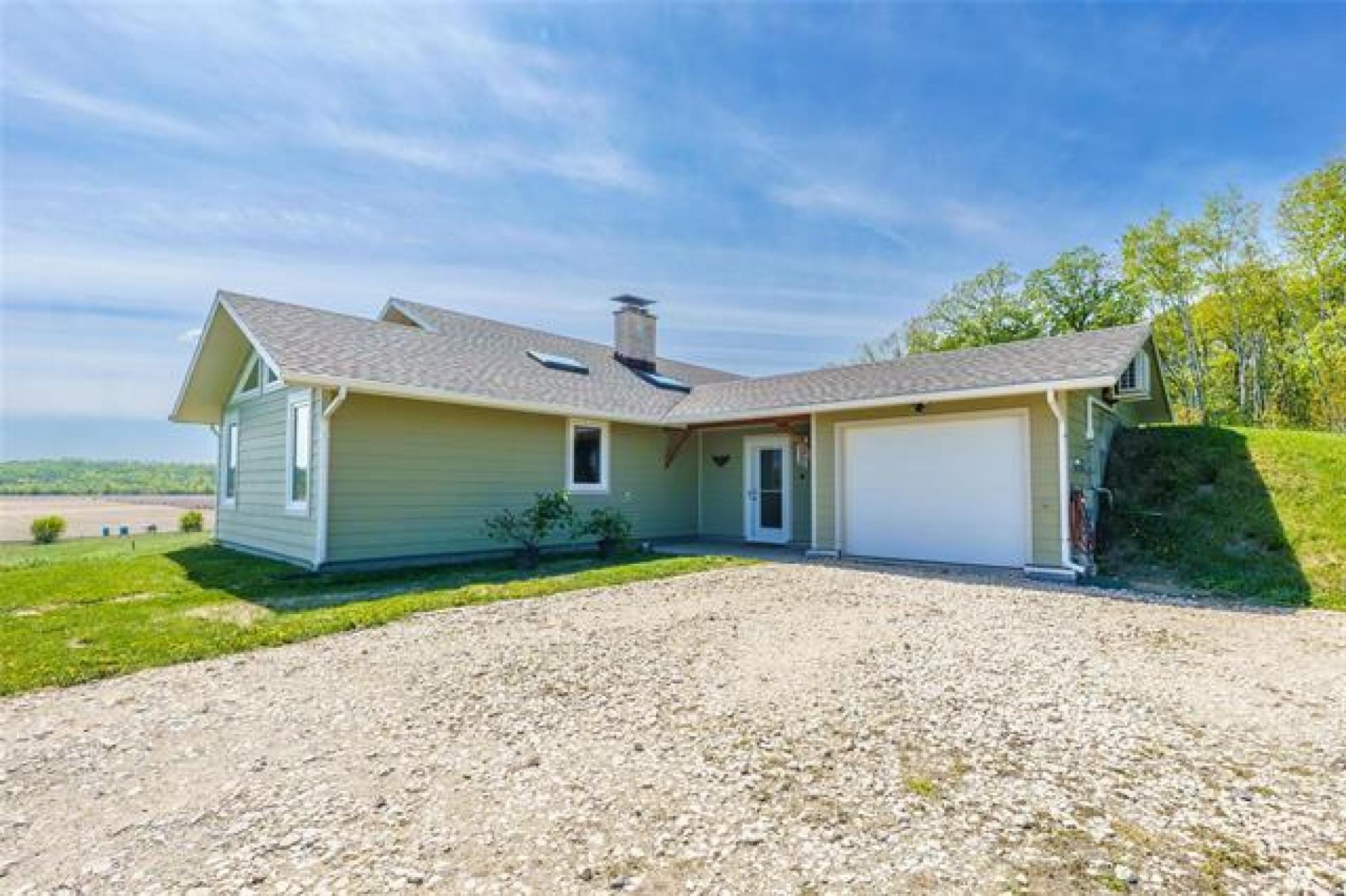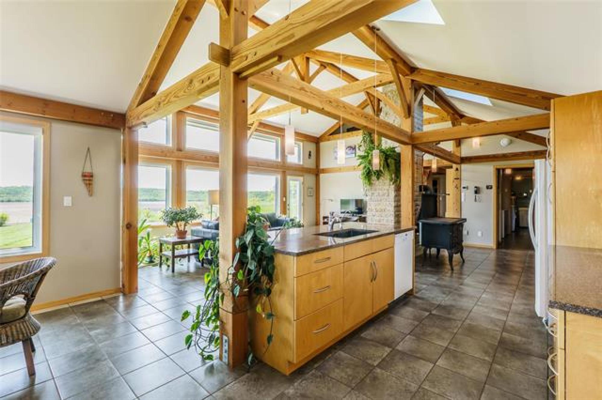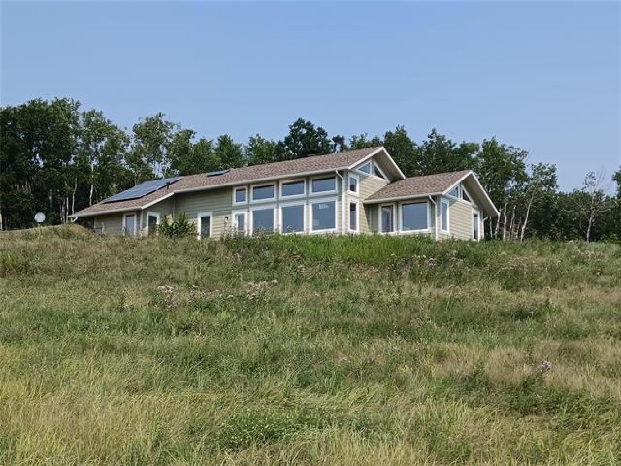 See it today & Offers as Received *** Reduce your carbon footprint with proposed Hydro power as a backup! One-of-a-Kind waterfront Douglas Fir Timber Frame Off-grid home on nearly 96 Scenic Acres of land in the shape of a teardrop and flanked by the Assiniboine River. Perfect for a hobby farm and famous for foraging, berries and cherries, the land offers a piece of heritage - it has a lookout that gazes over the Hogsback which marries a historical significance with Chief Yellowquill. Built into the hillside and constructed with quality craftsmanship, this passive solar-designed home combines elegance and efficiency.. Open-concept layout featuring a Manitoba granite kitchen with a large island, a Rumford fireplace and panoramic valley views. With 1,958 sqft of living space in main home including 2 bedrooms (with potential division for a 3rd), and a 4-piece bath. In-floor radiant heat and A/C included! Outbuildings include a fully insulated workshop/garage/studio with bathroom and kitchenette (extra 1050 sqft of living space), and two utility buildings perfect for storage or expansion. A stone's throw away from Bittersweet Cross Country Ski Trails, this property features fully sustainable living!