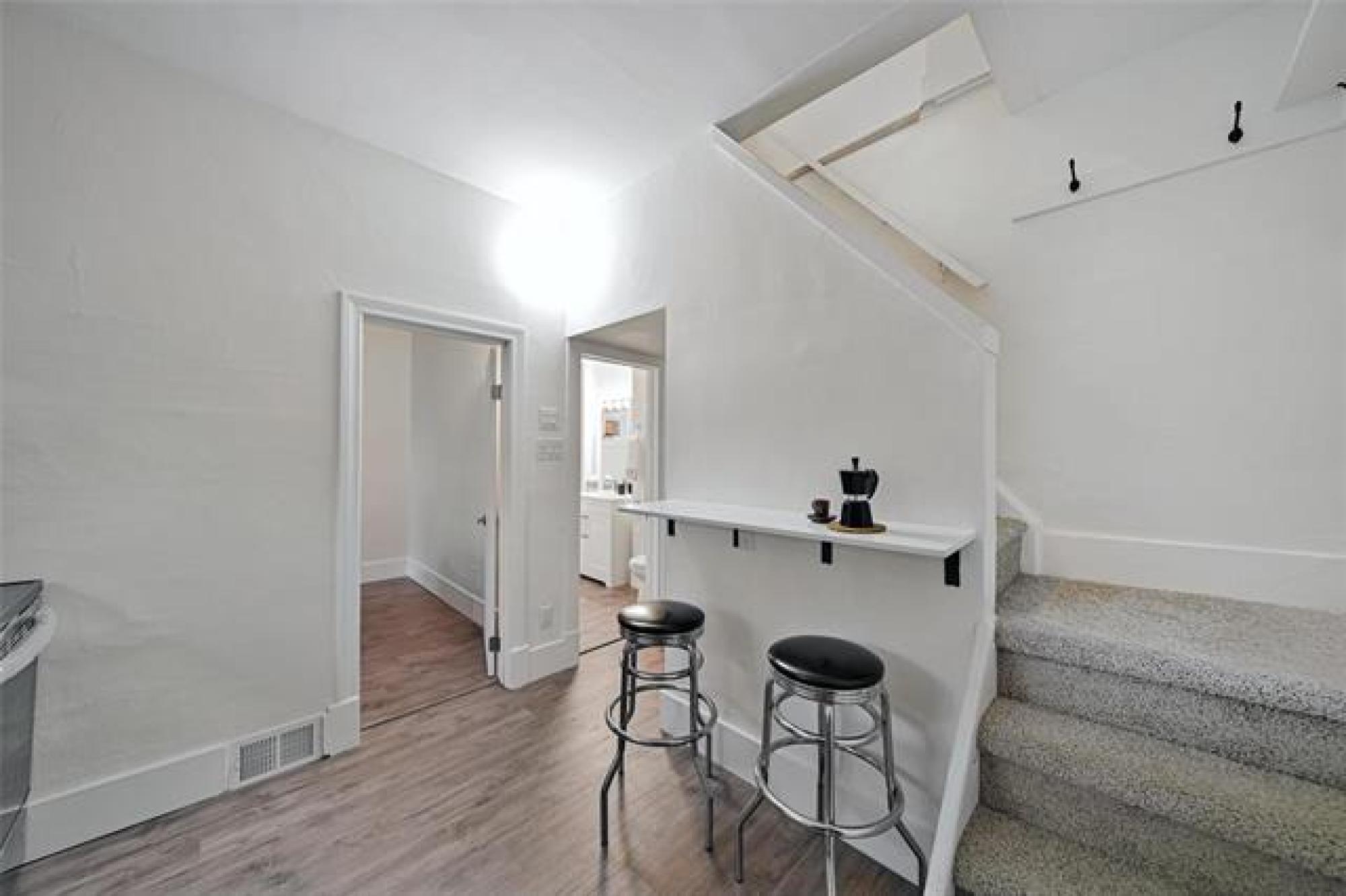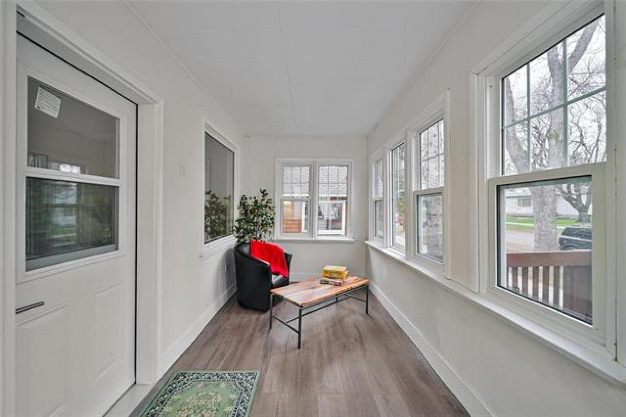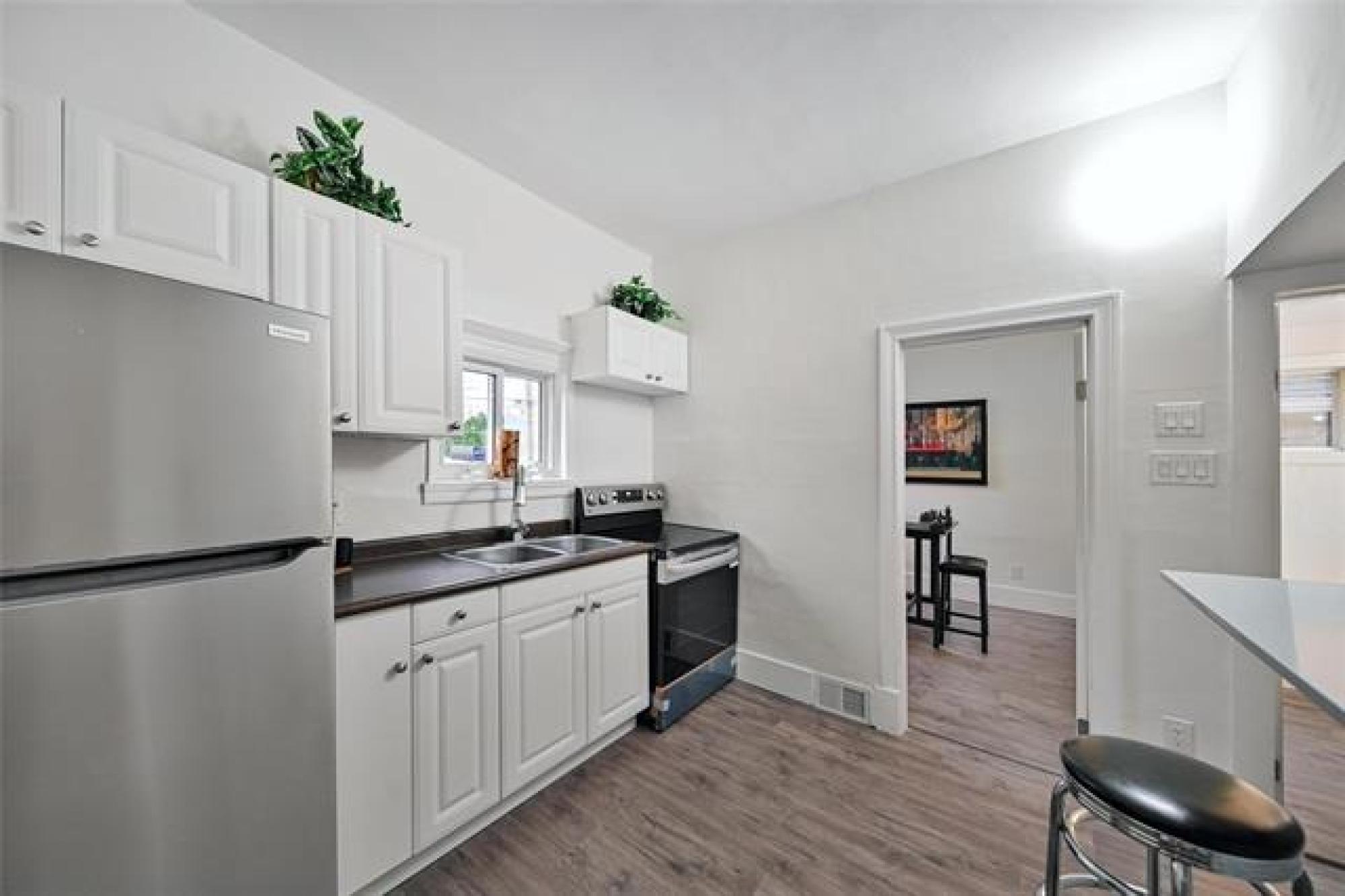 Offers reviewed Tuesday November 25. Cute as a button starter home on a great street! Classic style with modern amenities in this 1.5 storey home. Lovely veranda greets you with new pvc windows, living room/dining room combo and renovated 4 piece bathroom. Functional kitchen with brand new stainless appliances and breakfast bar. Main floor bedroom/office. Upper level features 2 large bedrooms. Newer flooring throughout, new high efficiency furnace, new hot water tank, new doors, new plumbing, new panel and electrical. Full basement , fully fenced yard and ample parking. Great location walking distance to shopping restaurants and transit. Measurements are approximate and +\- jogs. Some photos are virtually staged.