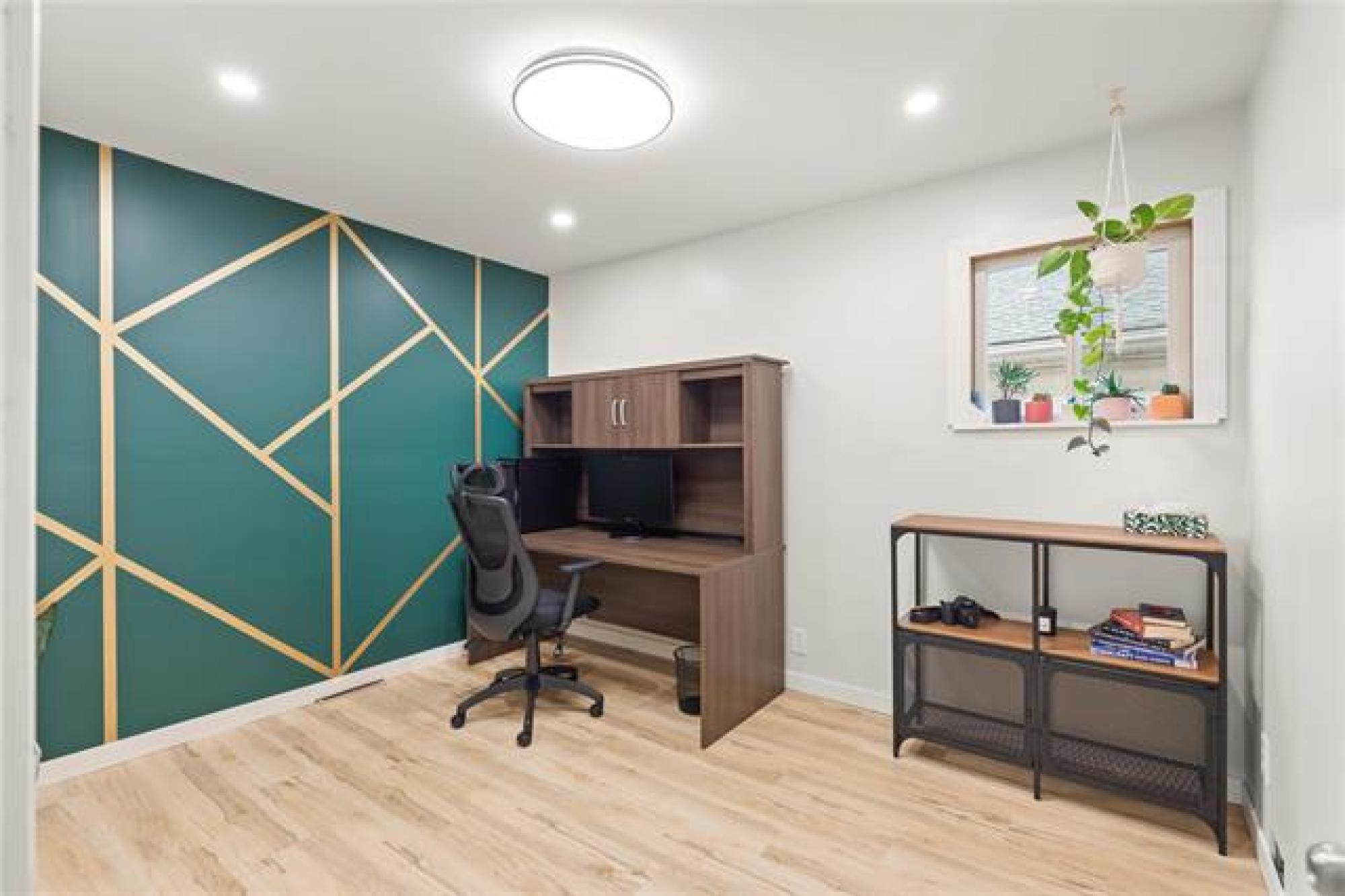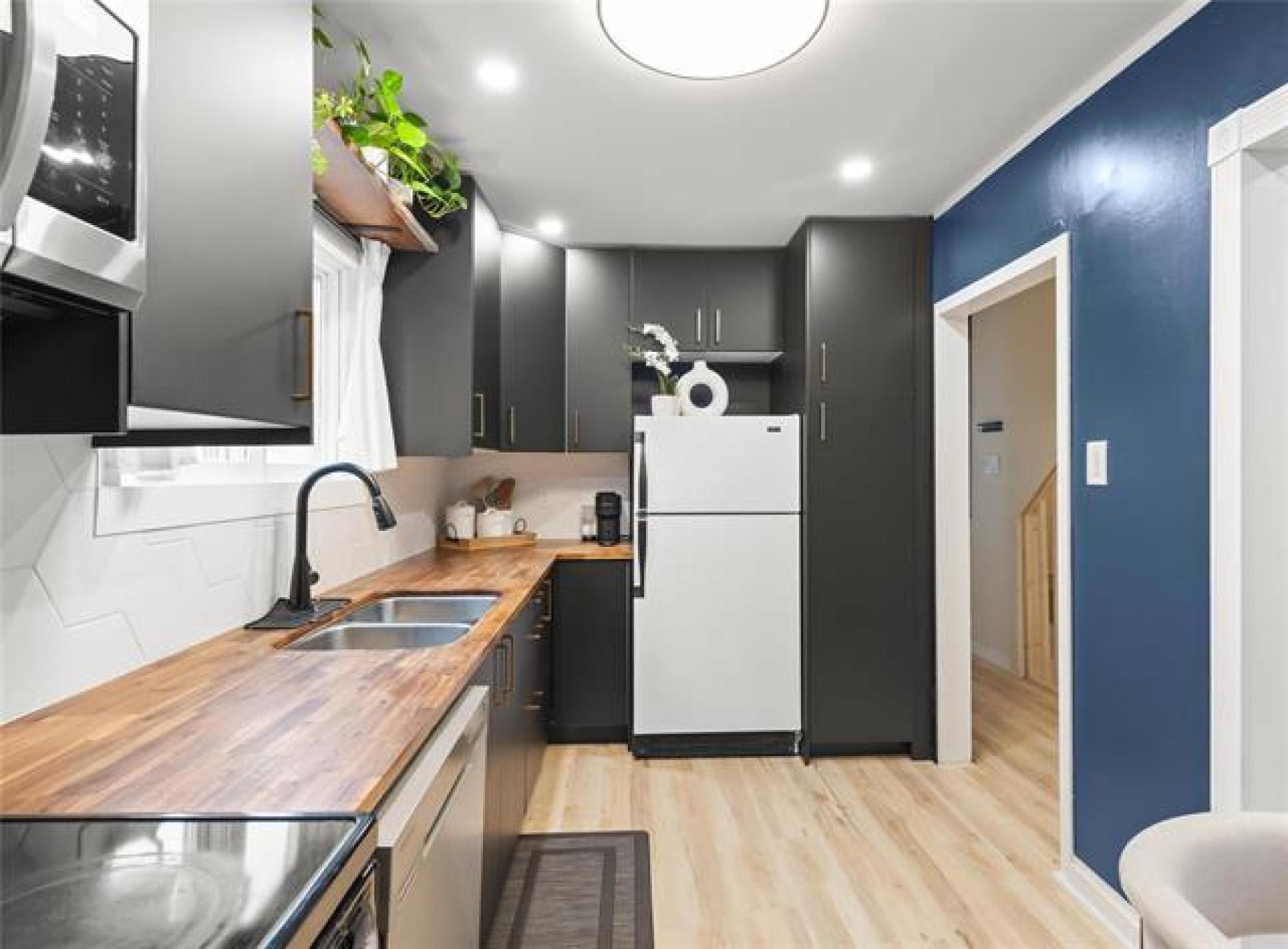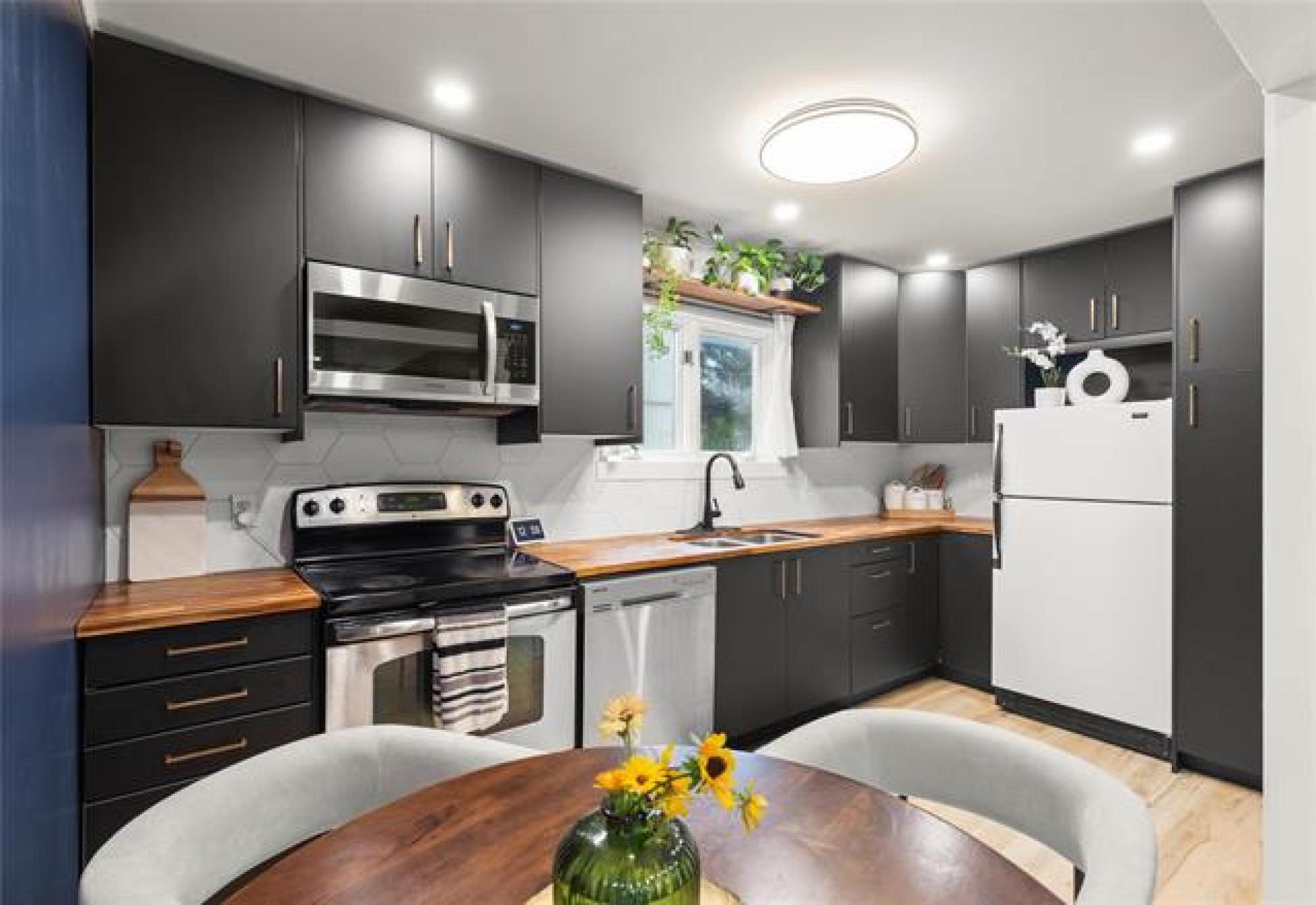 Offers as received. No bidding war. Tastefully remodelled 3 bedroom + den with 22x22 double garage built in 2024. Step inside to luxury vinyl plank('22) seamlessly throughout the main living area w/south facing picture windows letting in an abundance of natural light. Eat in kitchen('22) offers sleek black kitchen cabinets w/gold hardware, butcher block counters, hexagon backsplash, pantry, seating for 3 & all appliances included. Stunning 4 pc bathroom ('22) offers deep soaker tub w/custom tile tub surround, heated tile flooring & large vanity. Main floor bedroom which could be converted to formal dining or office. 3 season sunroom w/access to you 10x10 deck, 14x12 patio & fully fenced backyard. Upstairs features two spacious bedrooms including the primary with his & her closet & laundry shoot. Fully finished basement consists of rec room w/plush carpeting, drop ceiling, den, laundry room a plenty of storage. Additional features & upgrades: Hi eff furnace, updated shingles, HWT ('22), 200 amp panel (2022) with 100 amp panel in the new double garage. Steps from Grant Park Mall, schools, parks, public transportation & all amenities.