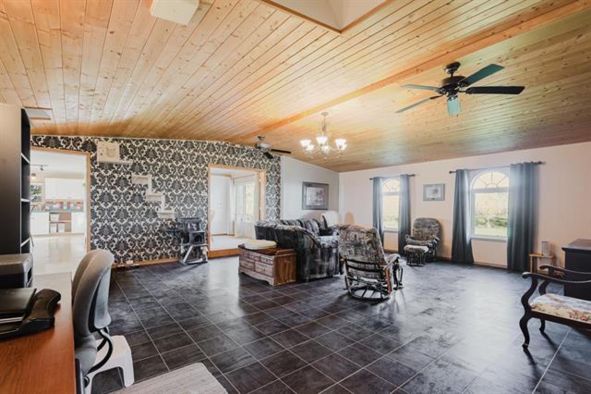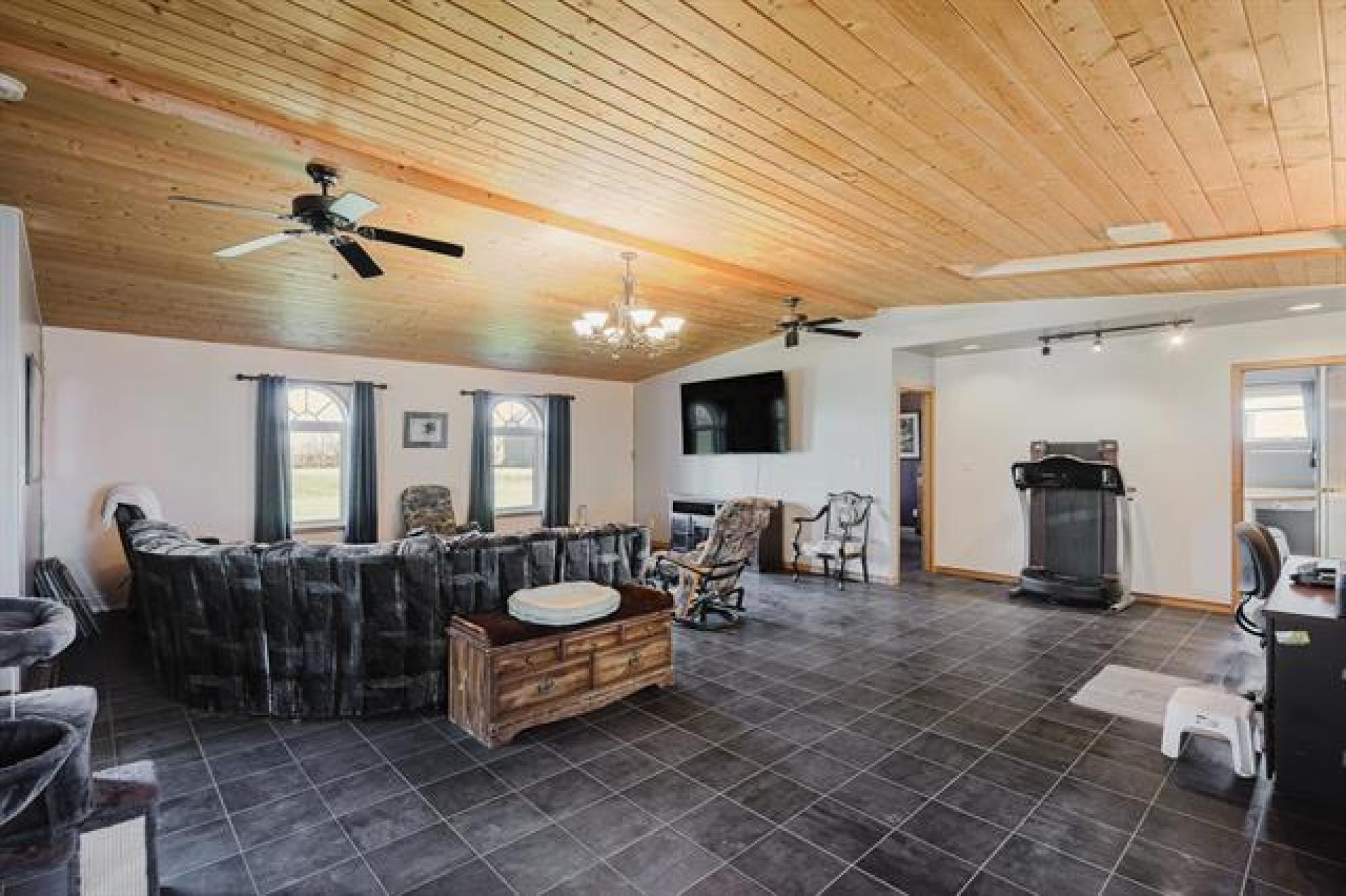 Open House Saturday, Oct 11 from 1130-1pm. Tranquility & Privacy is here! This spacious family home offers over 2000 sq ft of finished living space w/large bright rooms including a country sized eat in kitchen w/patio doors. Massive living area, 3 piece main floor bath w/laundry, formal dining area and a grand primary bedroom suite also on main floor w/ensuite bath updated in 2022 including jacuzzi tub. Upper level features 2 bedrooms each w/a separate sitting area perfect for kids library or gaming space. The oversized insulated attached 28' x 26 double garage w/floor heating ready to be connected, a newer 18' x 20' detached workshop, 2 grain bins, chicken coop, all on a gorgeous 1.69 acres with lots of garden space & fruit trees. Updates include well(2018), shingles (2022), forced air furnace (2022) & more. Flexible possession date w/appliances included just minutes East of the Town of Morris. Bus service for school aged children, septic tank & field. 2 access points can accommodate large vehicles/trailers. A quaint & peaceful retreat minutes from conveniences is sure to impress! Step away from the concrete jungle. These opportunities don't come along too often just 40 minutes south of Winnipeg.