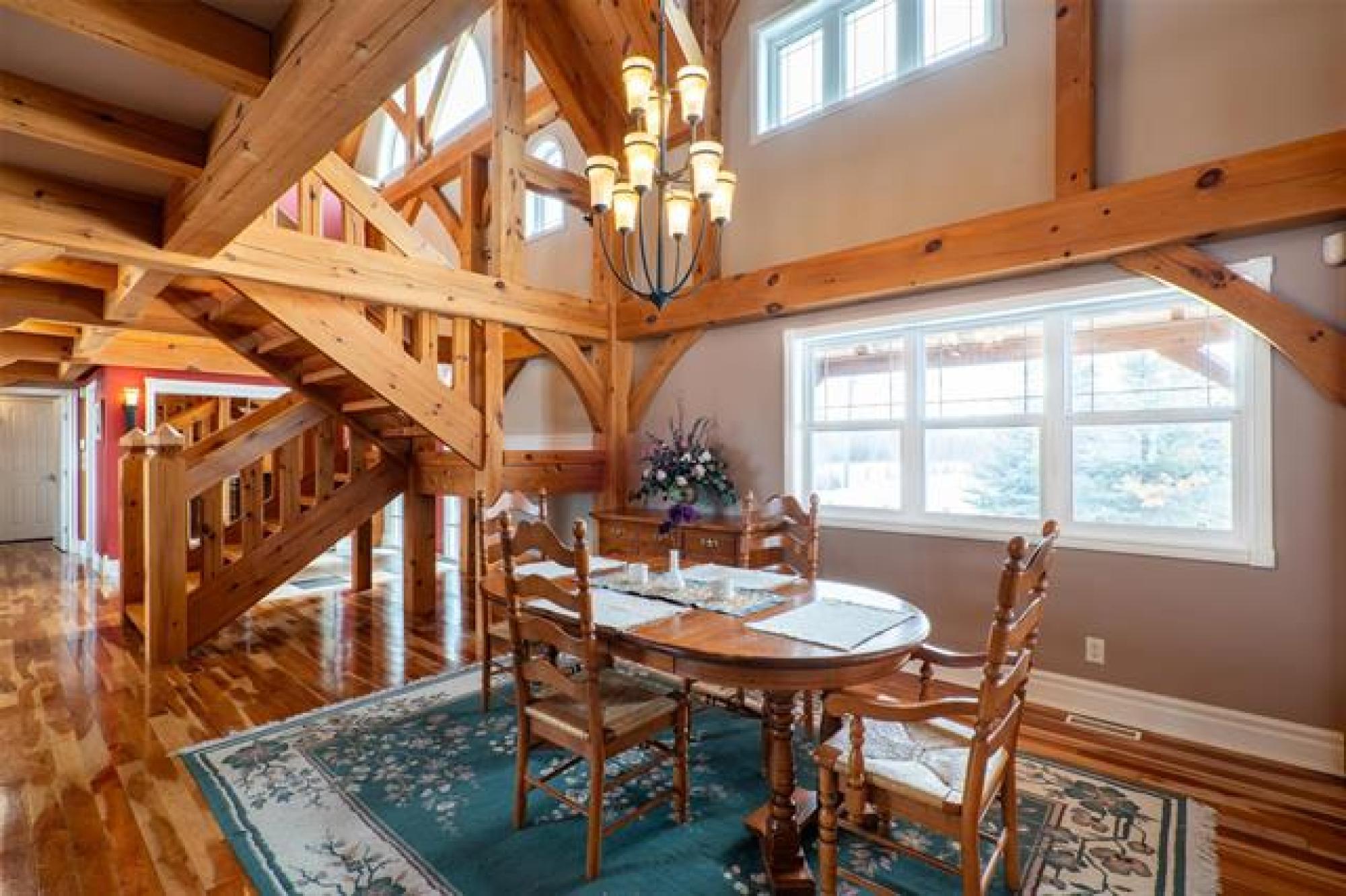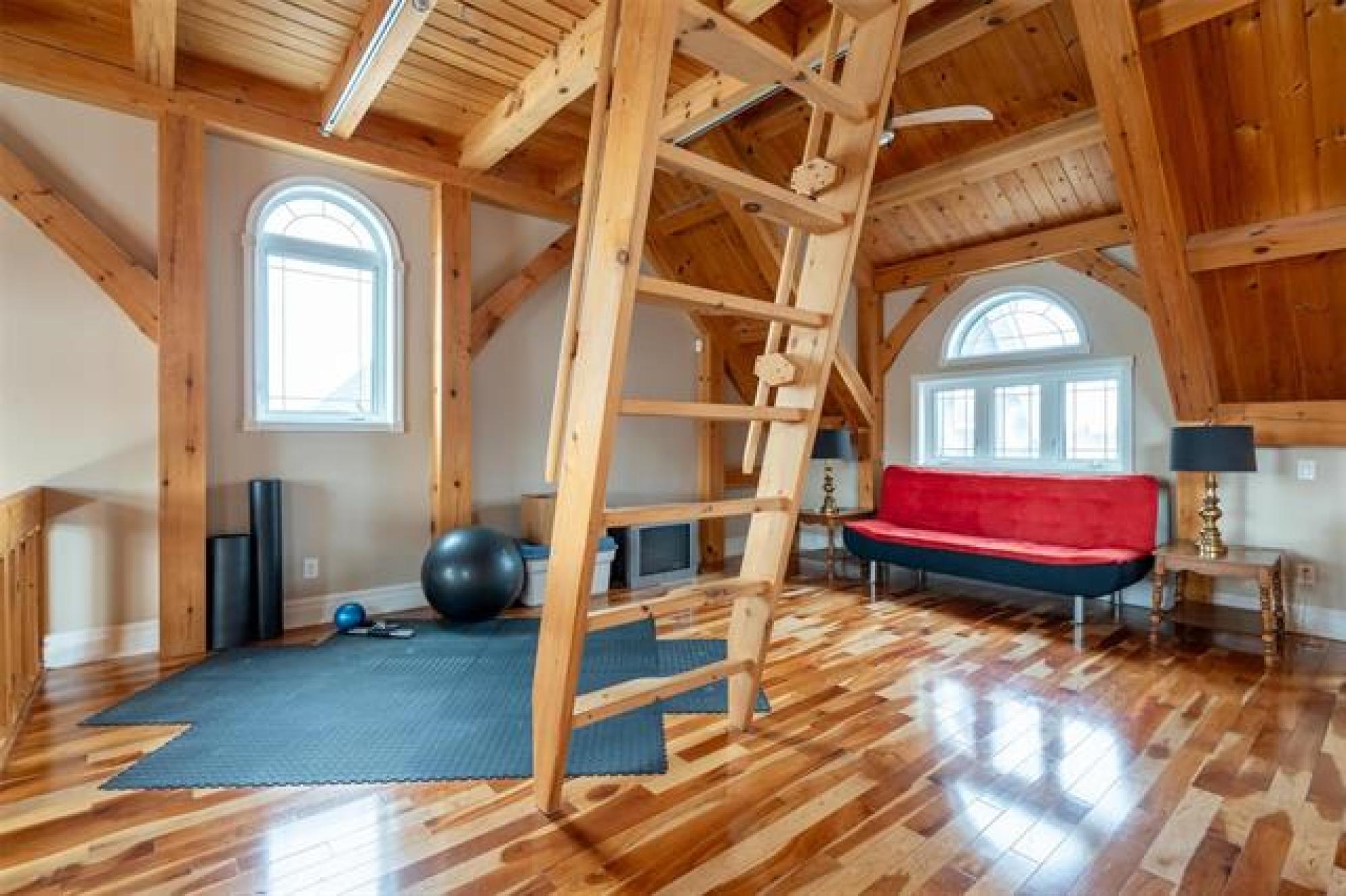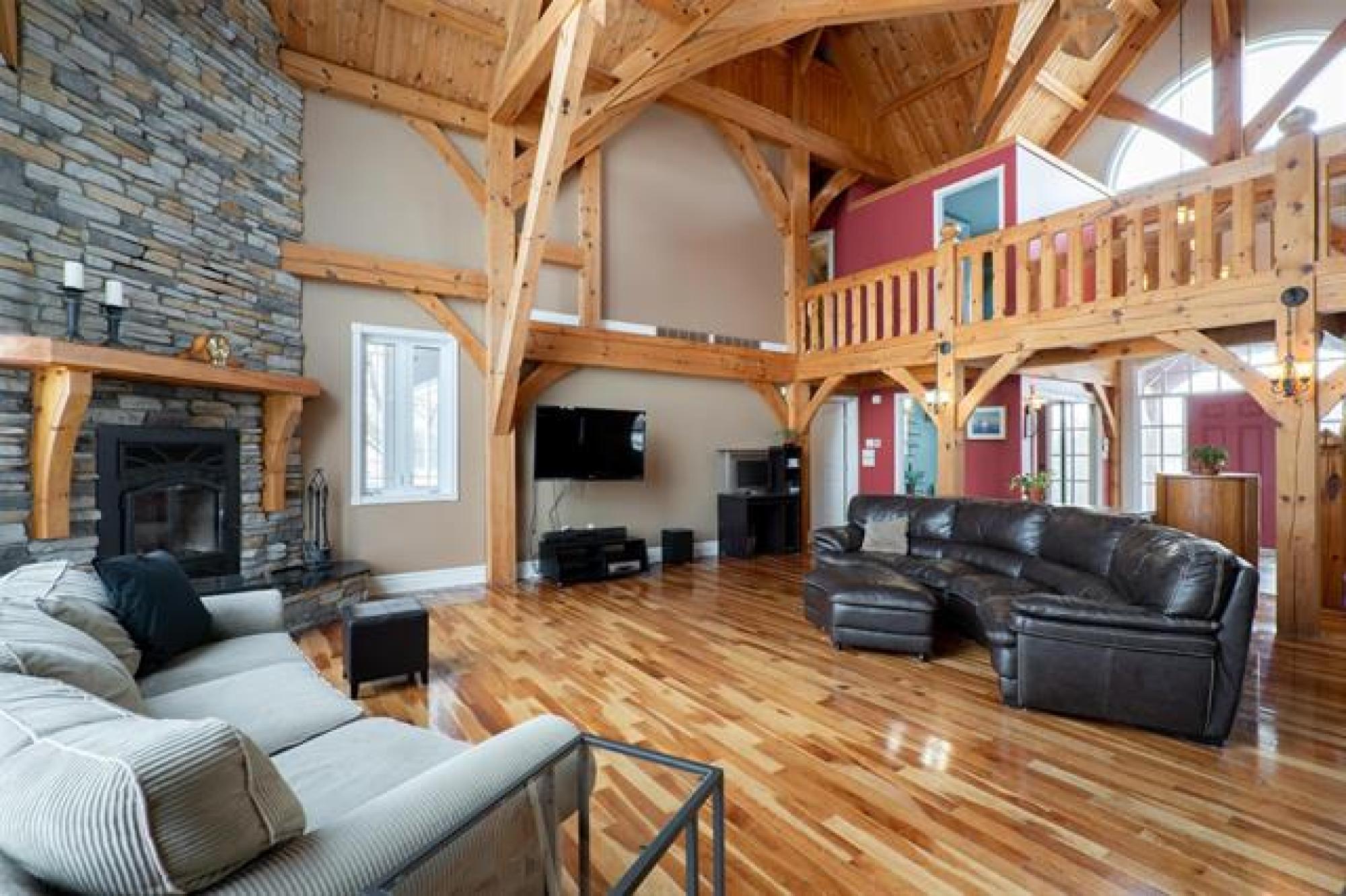 PRICED BELOW REPLACEMENT VALUE!! Here is your chance to be the proud owner of this magnificent home situated in the heart of Lorette Manitoba on RIVER LOT. Welcomed by gorgeous handcrafted timbers with acorn style carvings, making this home unlike any other. From antique cherry hardwood floors to Chef's kitchen featuring granite counters, island with butcher block, built-in wine cabinet, breakfast peninsula and accented stained glass wood cabinets. Great Room features 24ft ceilings and gorgeous stone facing/wood burning fire place. Very private Primary Bedroom is ideally located on main floor featuring walk-in closet and spa-like bathroom with deep soaker tub, tailed rain shower with glass doors. Main floor laundry with farmhouse sink. Screened-in porch adjacent to Great Room. Upper level offers 2 bedrooms, 5pc bath, Loft area and additional 2 upper lofts. Geothermal heating and cooling. OV garage with future bonus room. The versatility in space, craftsmanship, location cannot be beat!