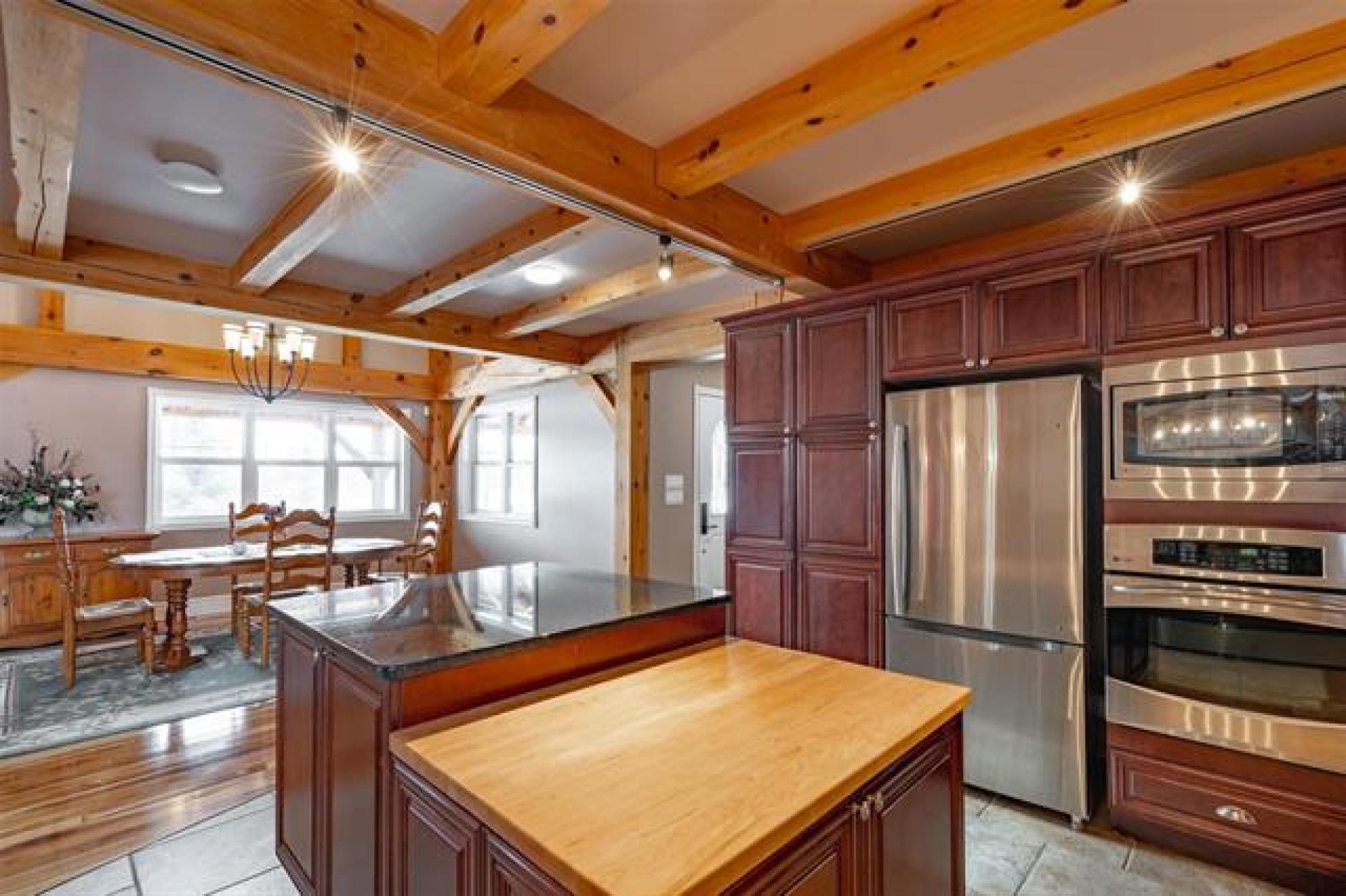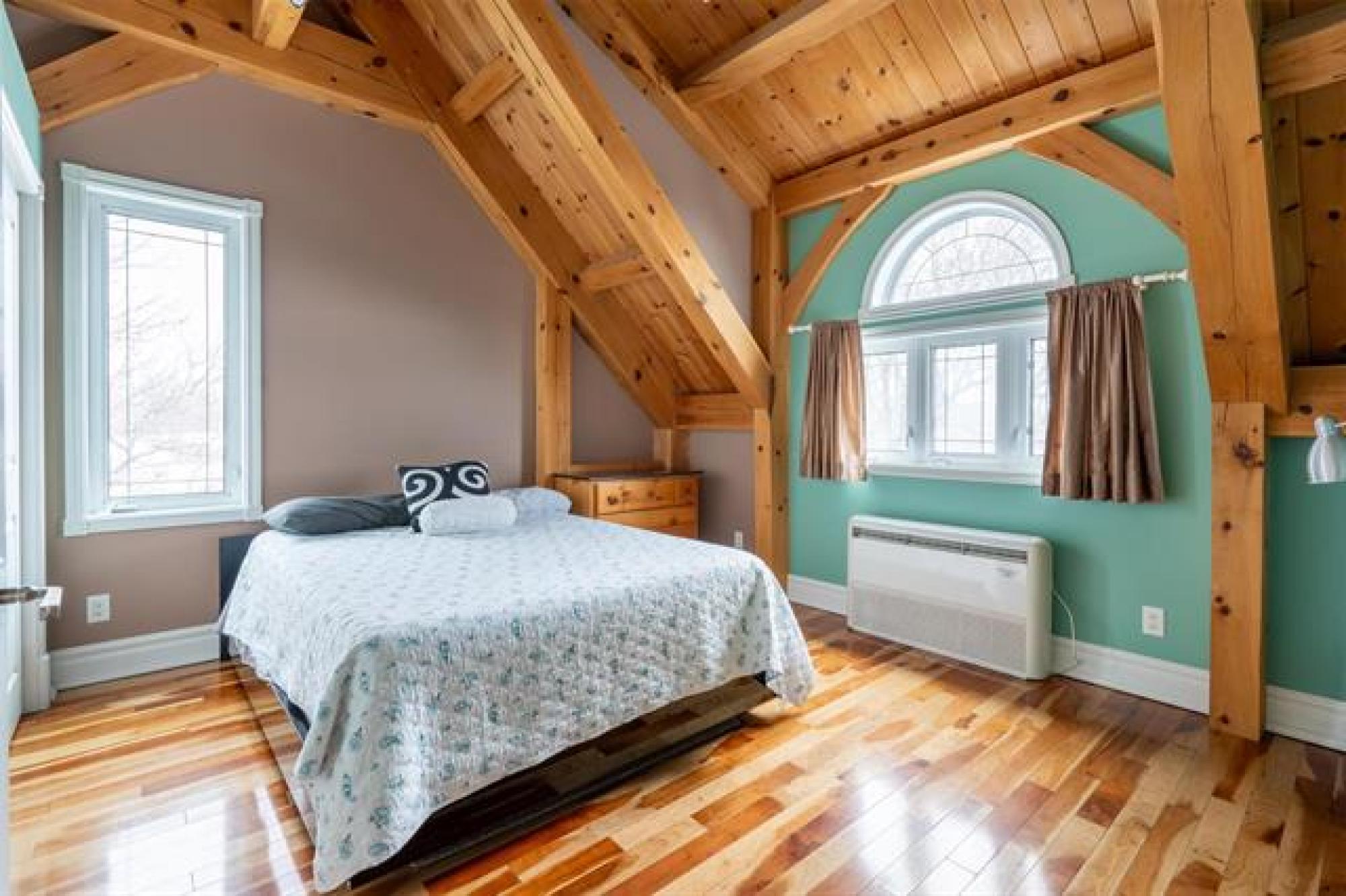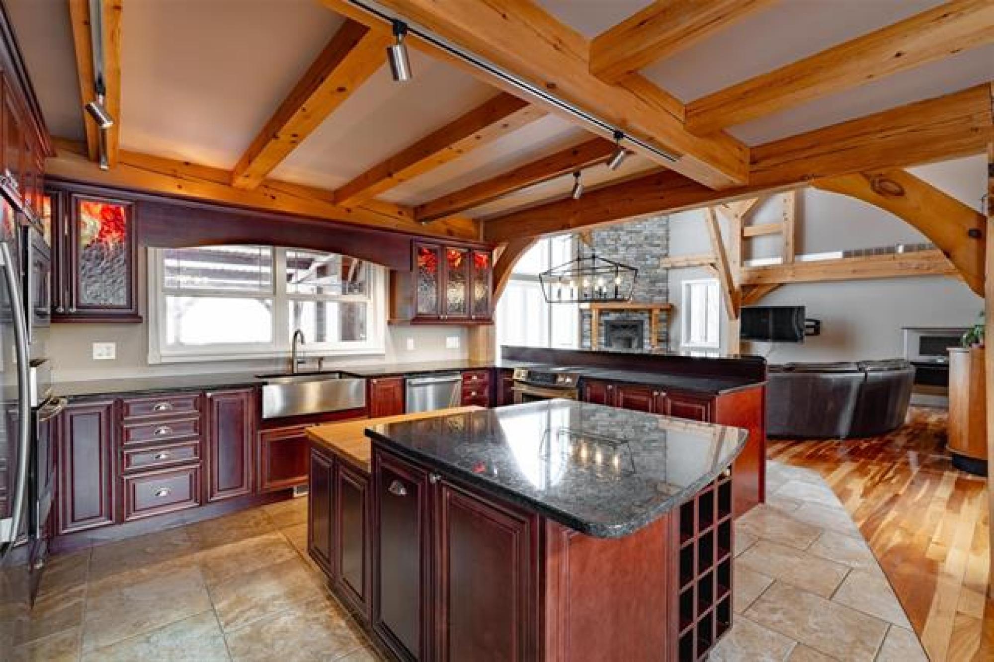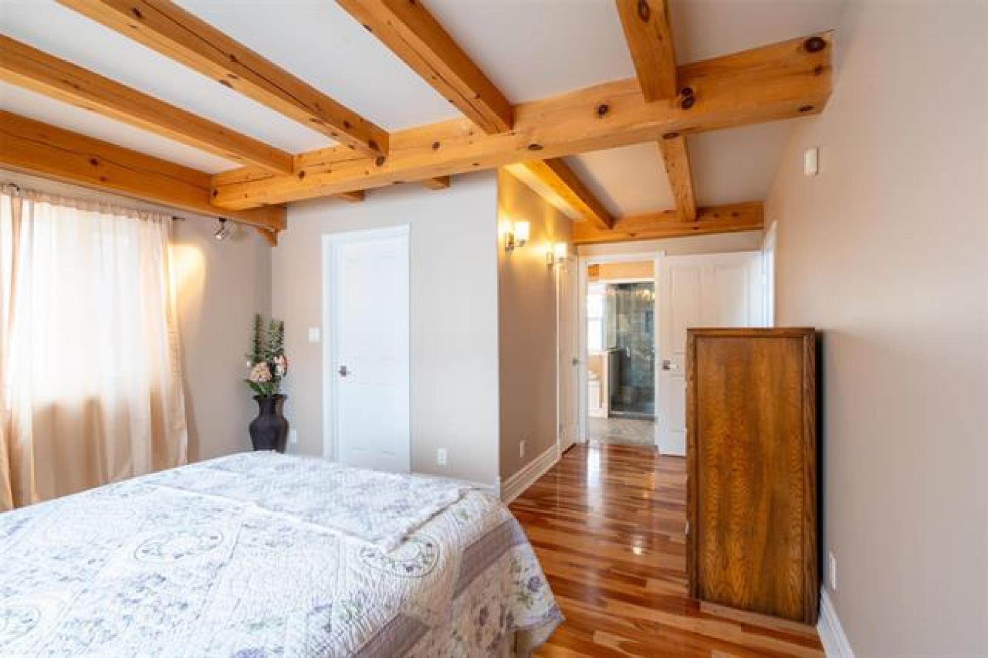 PRICED BELOW REPLACEMENT VALUE!! Here is your chance to be the proud owner of this magnificent home situated in the heart of Lorette Manitoba on RIVER LOT. Welcomed by gorgeous handcrafted timbers with acorn style carvings, making this home unlike any other. From antique cherry hardwood floors to Chef's kitchen featuring granite counters, island with butcher block, built-in wine cabinet, breakfast peninsula and accented stained glass wood cabinets. Great Room features 24ft ceilings and gorgeous stone facing/wood burning fire place. Very private Primary Bedroom is ideally located on main floor featuring walk-in closet and spa-like bathroom with deep soaker tub, tailed rain shower with glass doors. Main floor laundry with farmhouse sink. Screened-in porch adjacent to Great Room. Upper level offers 2 bedrooms, 5pc bath, Loft area and additional 2 upper lofts. Geothermal heating and cooling. OV garage with future bonus room. The versatility in space, craftsmanship, location cannot be beat!