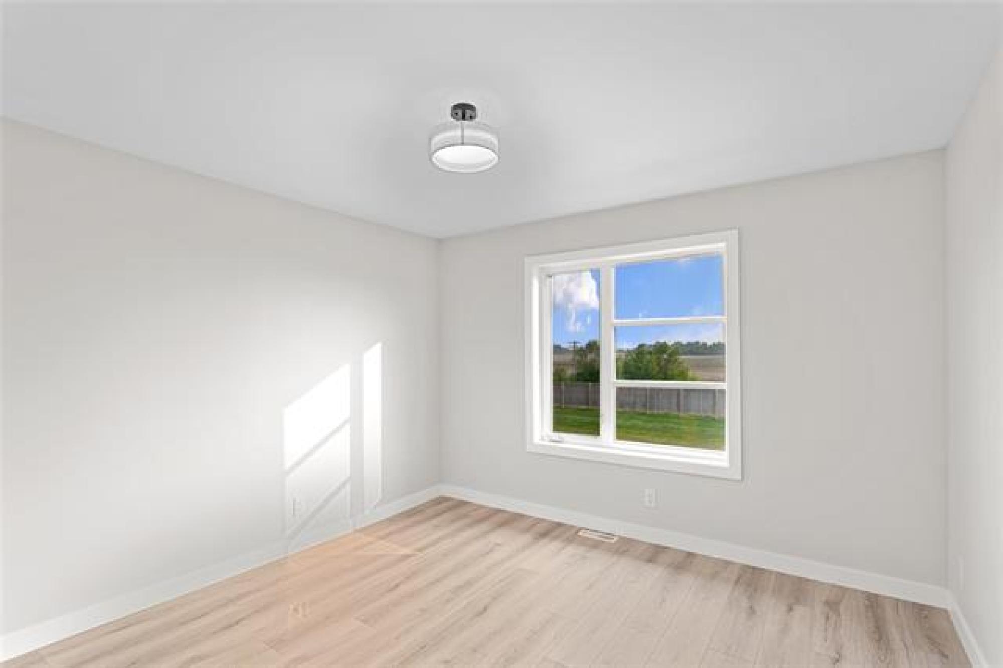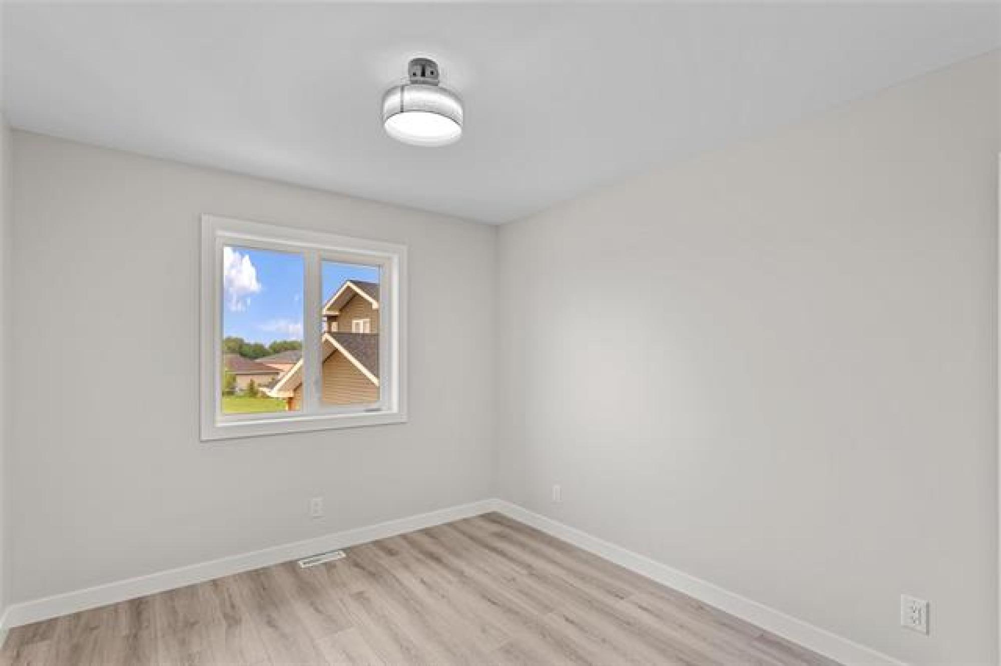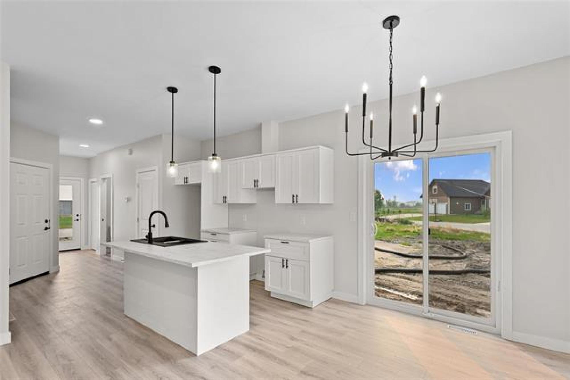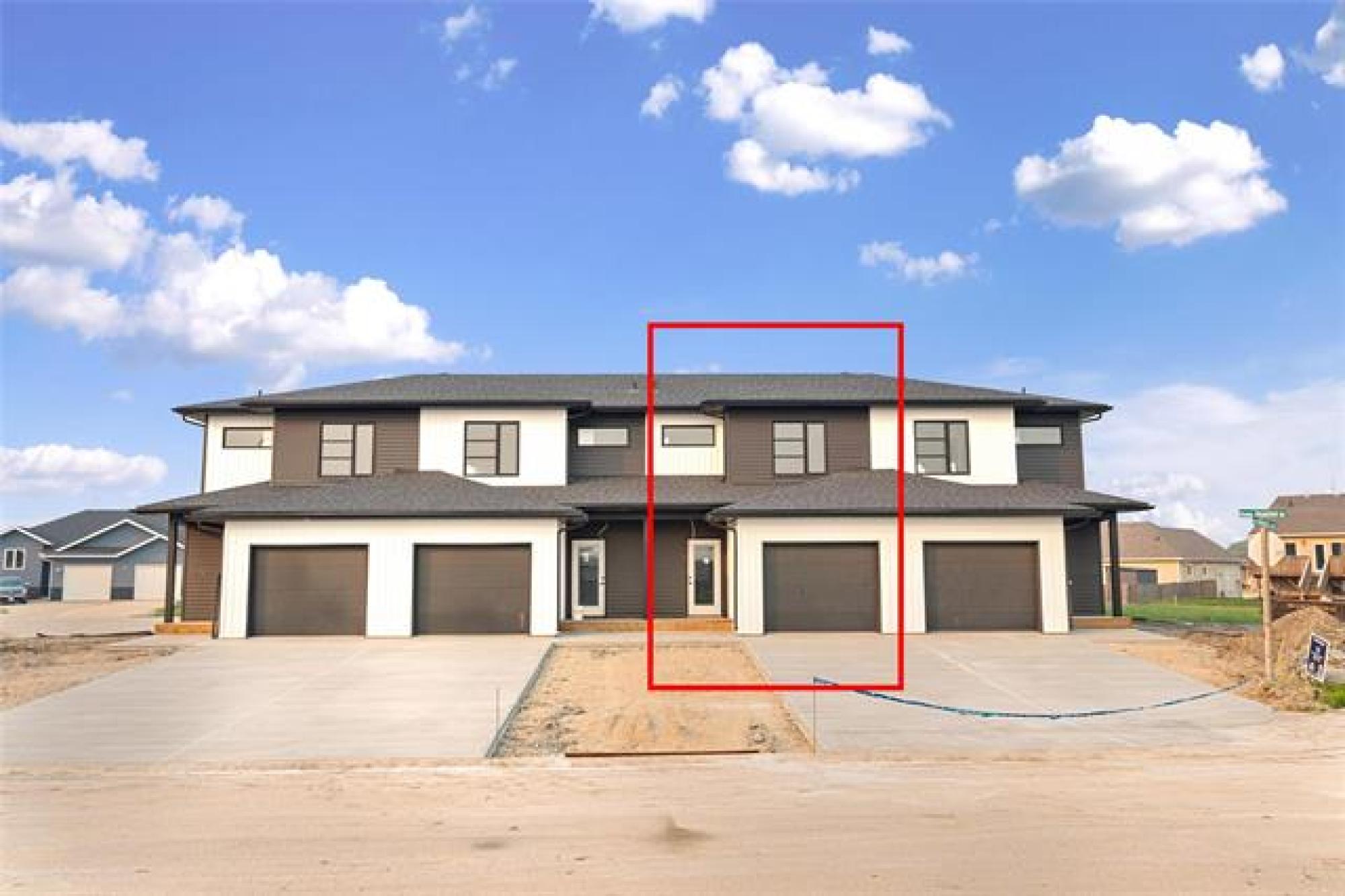 Welcome to your brand new home! This beautiful and budget-friendly 3 BR, 1.5-bath residence offers 1,116 SF of thoughtfully designed living space. Eye-catching curb appeal awaits with a bold mix of white & Arctic Grey siding & a sleek dark garage door, complemented by a poured concrete driveway & sidewalk—no muddy mess on rainy days! Step inside to a welcoming foyer with ample closet space & convenient guest bath. The open-concept main floor is perfect for entertaining, featuring luxury vinyl plank flooring, designer light fixtures & high-end finishes throughout. The modern kitchen is both stylish and functional, with white shaker-style cabinetry, large island w/seating & a designated space for a dishwasher. A garden door off the dining area leads to a future deck—ideal for summer BBQs & outdoor relaxation. Upstairs, enjoy 3 spacious BRs, a 4pc bath & laundry. The full, insulated basement offers future development potential with room for a 4th BR & large family room. Situated across from a park and complete with central air & 5-Year New Home Warranty—this home checks all the boxes! Note: Photos are from one of the other units & may be exact.