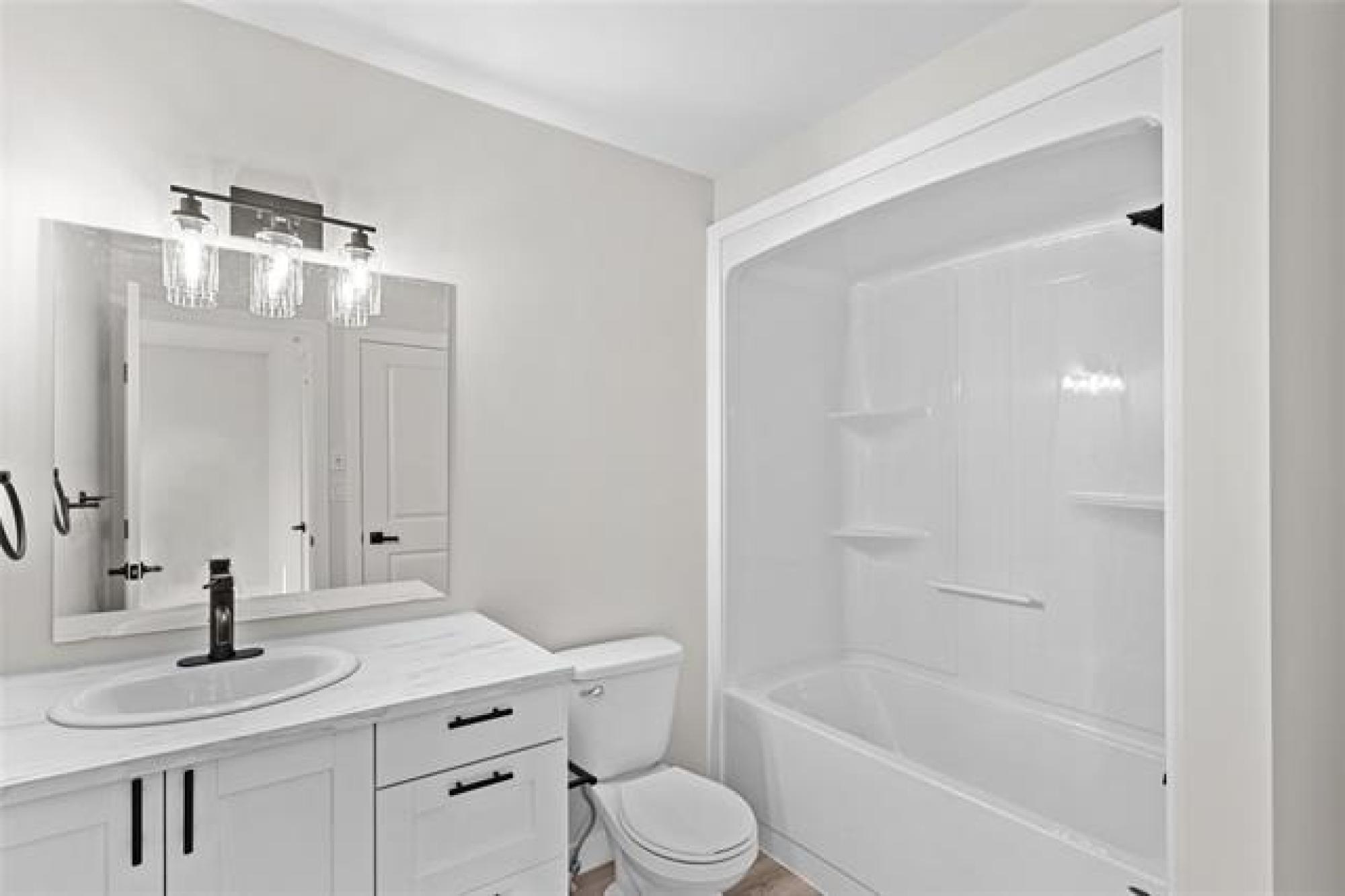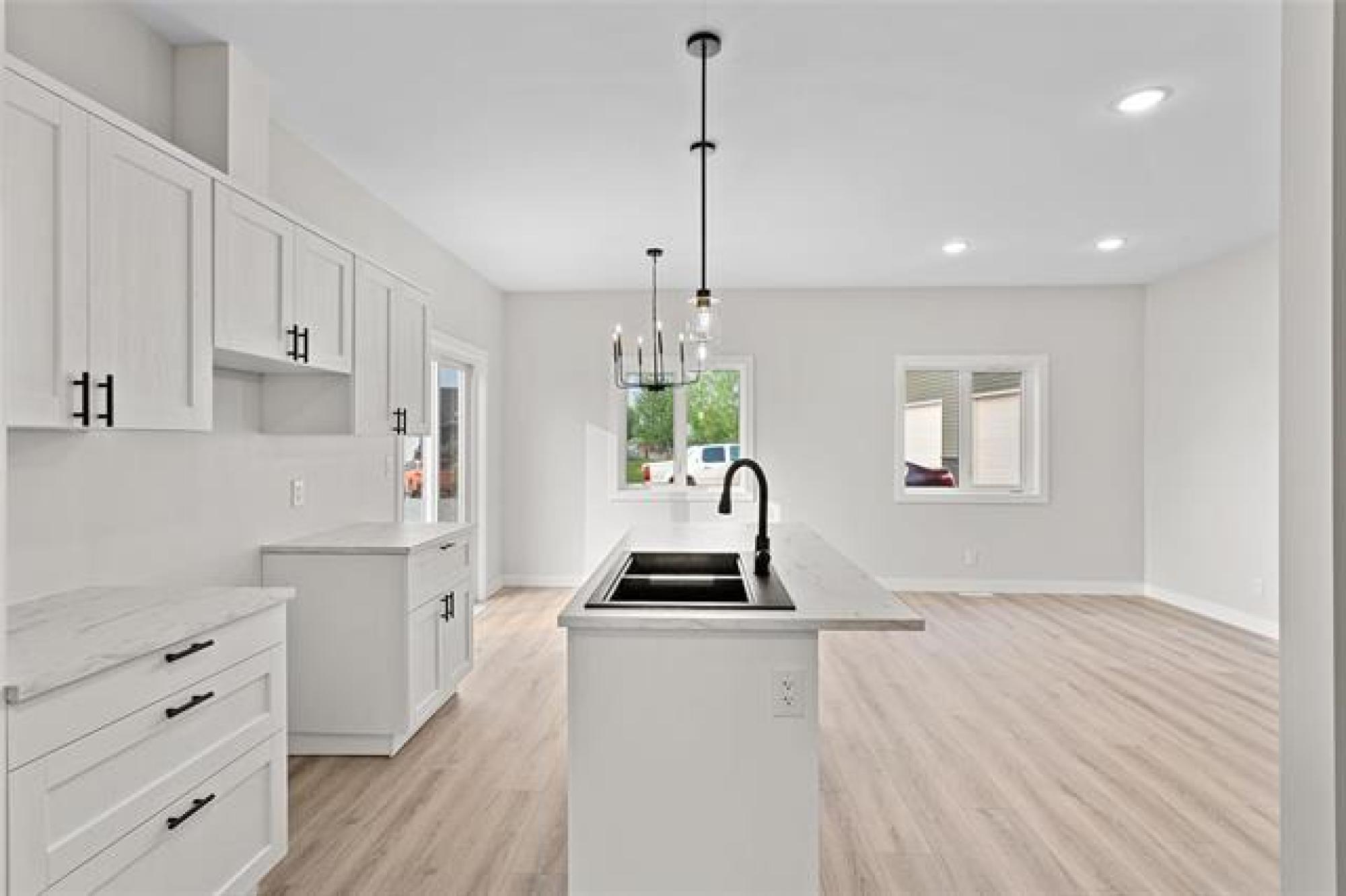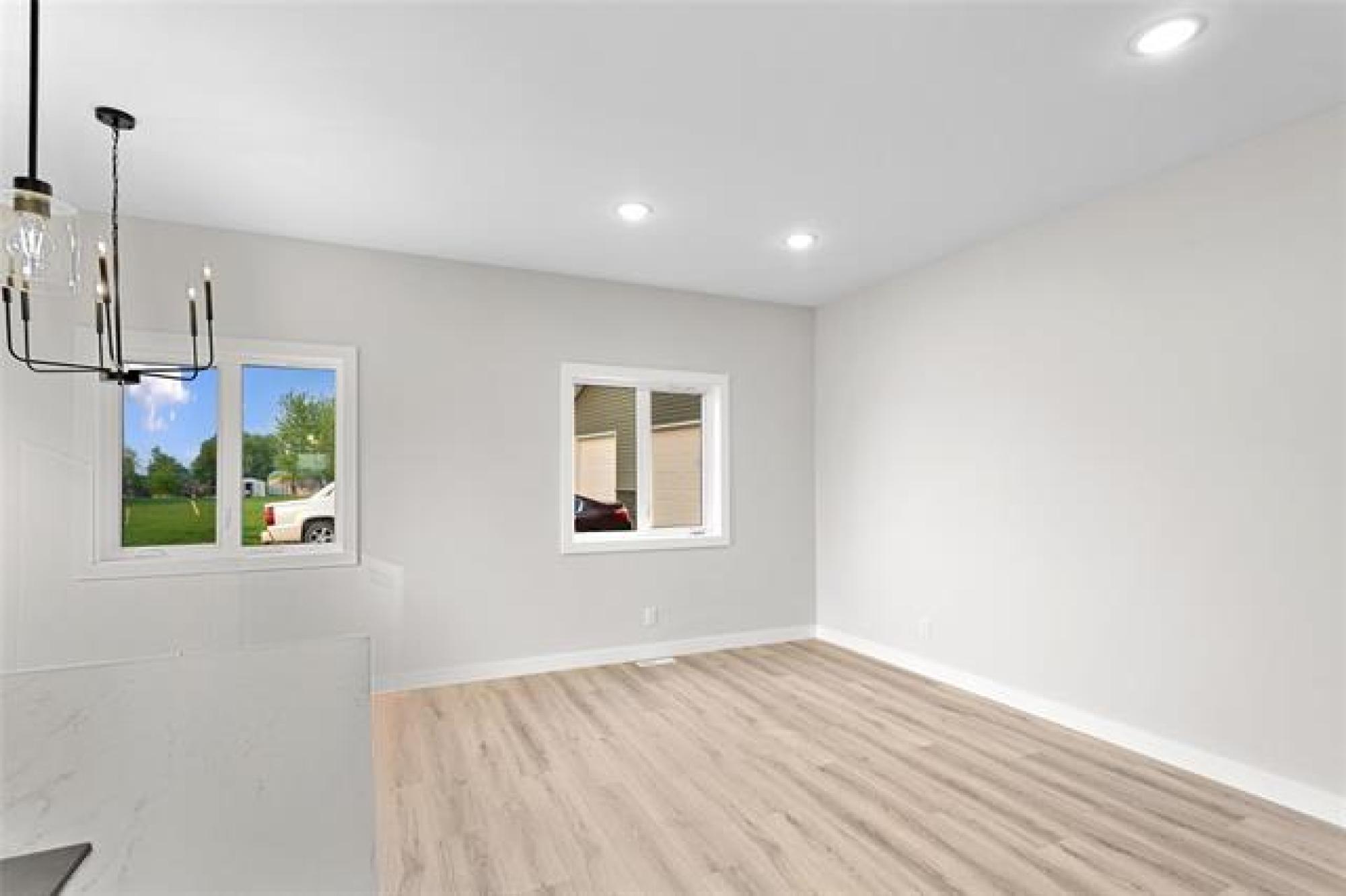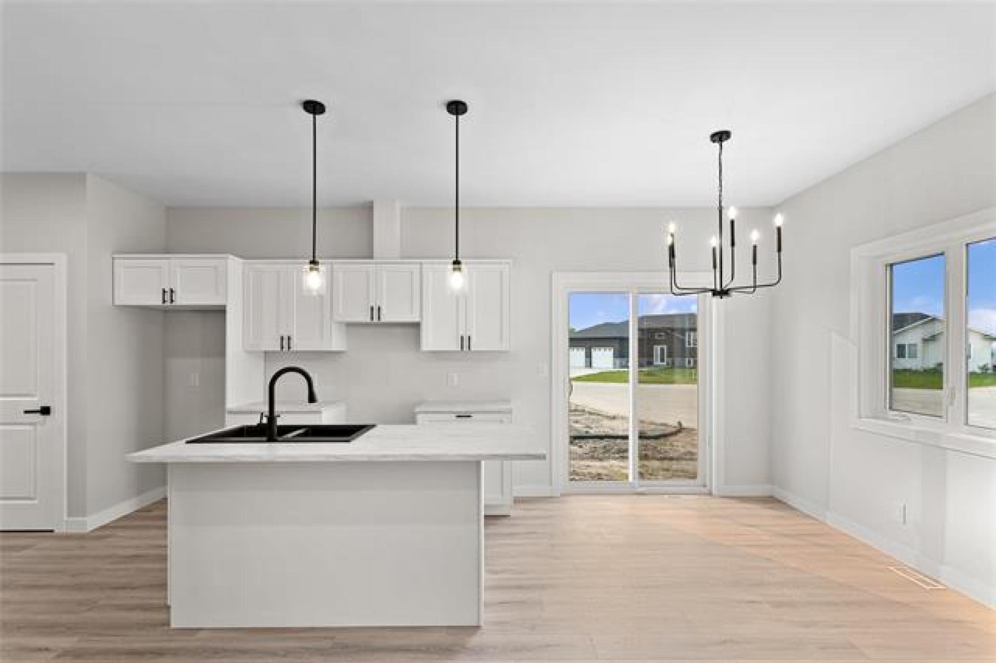 Welcome to your brand new home! This beautiful and budget-friendly 3 BR, 1.5-bath residence offers 1,116 SF of thoughtfully designed living space. Eye-catching curb appeal awaits with a bold mix of white & Arctic Grey siding & a sleek dark garage door, complemented by a poured concrete driveway & sidewalk—no muddy mess on rainy days! Step inside to a welcoming foyer with ample closet space & convenient guest bath. The open-concept main floor is perfect for entertaining, featuring luxury vinyl plank flooring, designer light fixtures & high-end finishes throughout. The modern kitchen is both stylish and functional, with white shaker-style cabinetry, large island w/seating & a designated space for a dishwasher. A garden door off the dining area leads to a future deck—ideal for summer BBQs & outdoor relaxation. Upstairs, enjoy 3 spacious BRs, a 4pc bath & laundry. The full, insulated basement offers future development potential with room for a 4th BR & large family room. Situated across from a park and complete with central air & 5-Year New Home Warranty—this home checks all the boxes! Note: Photos are from one of the other units & may be exact.