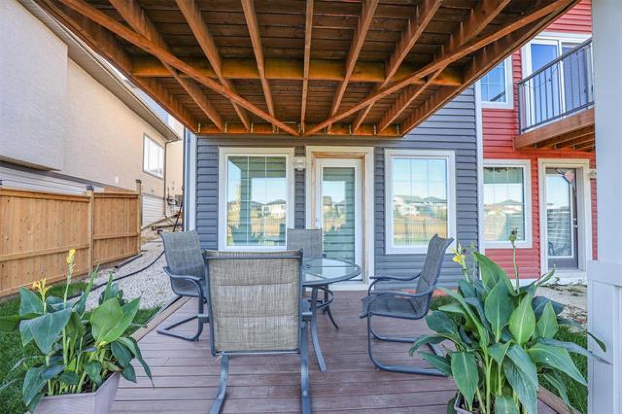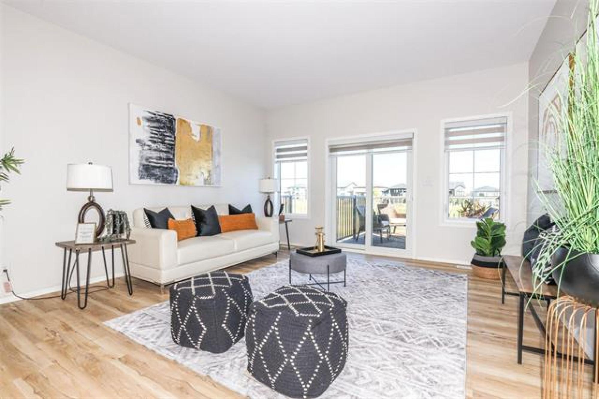 **Offers presented October 8th at 6PM **- Bridgwater Trails with Lake Views!! This BEAUTIFULLY designed 1,621 sq. ft. semi-attached home offers a walkout basement and a desirable location backing onto the lake with a 11’ x 12’ deck overlooking the water. The main floor features a bright, open-concept layout with 9’ ceilings, and a well-designed kitchen complete with a walk-in pantry, oversized island, pot drawers, pendant lighting, and recessed pot lights. The dining area accommodates a full-sized table and includes a large window with lake views. Additional main floor features include two coat closets and a spacious 2-piece bath that is wheelchair accessible. Upstairs, the primary bedroom offers an 8’ x 5’ walk-in closet, while the conveniently located laundry room provides ample space for folding and ironing. Built on a piled foundation, the home also includes tri-pane windows and a full unspoiled walkout basement with direct access to the beautifully landscaped backyard and lake. Prime Location jsut steps to Bridgwater Centre, shopping,transit,walking trails and the new Altea Active Winnipeg Book your showing TODAY!!