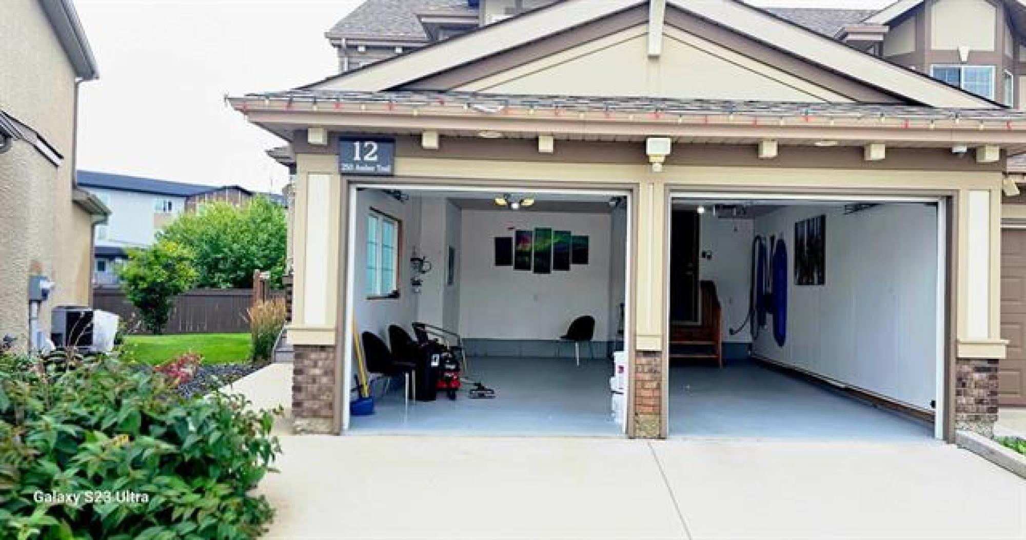 S/S NOW OPEN HOUSE SUNDAY FROM 3:00PM-5:00PM OFFER AS RECEIVED Welcome to 12-250 Amber Trail, located in a quiet cut-de-sac a beautiful two-storey semi-attached condo. Featuring 3 upstairs bedrooms, 2.5 bathrooms, double attached garage, 1,766 square feet of living space plus a finished basement , this home has truly everything you need for your large or growing family. Inside the main floor you have a modern bright open concept living space with kitchen island perfect for hosting dinners and a half bathroom. there is also a stone front gas fire place . Upstairs you have THREE bedrooms including a beautiful extra-large primary with walk-in closet and ensuite. Finally, the finished basement features a large rec room space, multiple storage spots